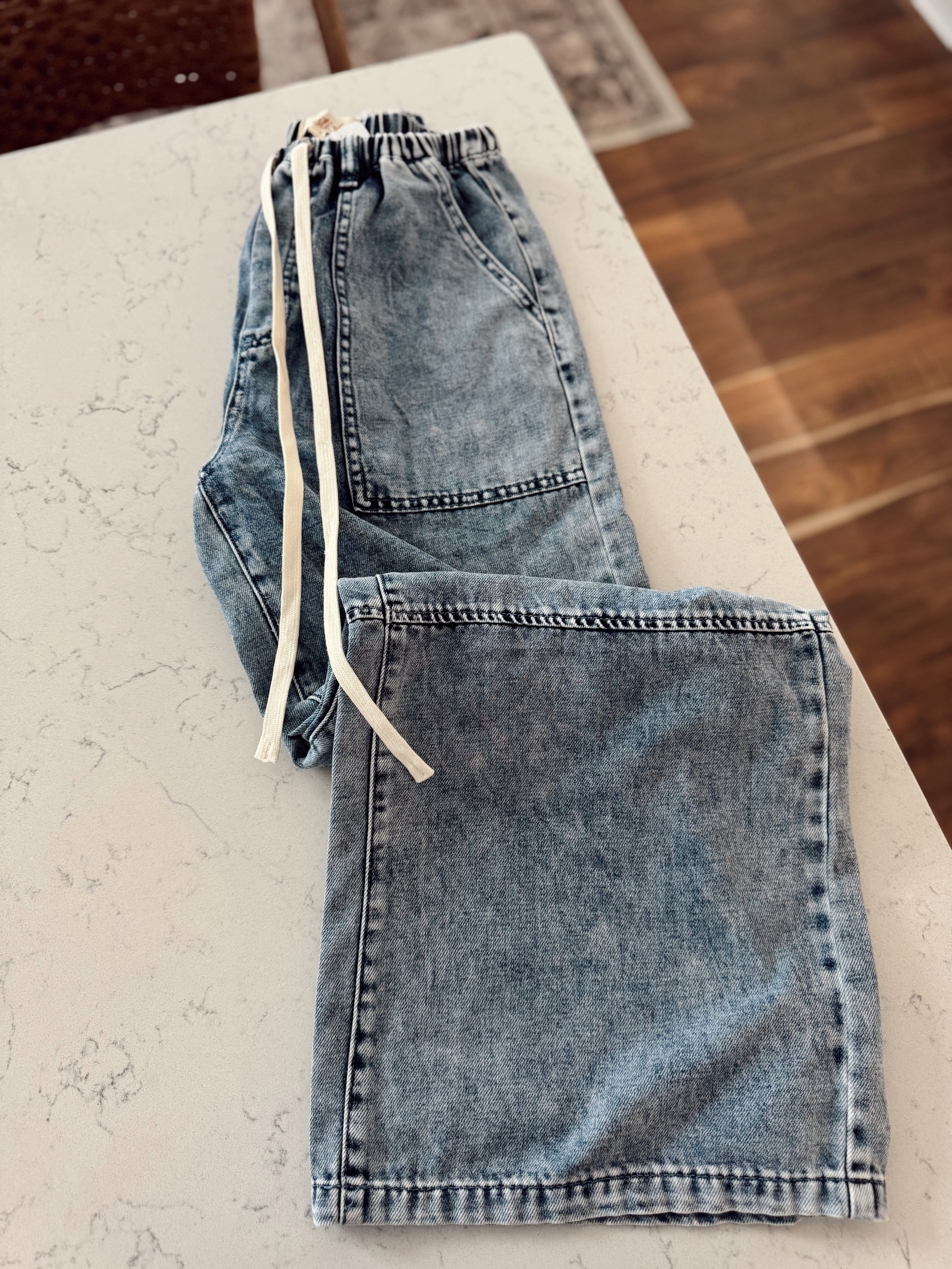 Chillax Contrast Drawstring Wide Leg Denim Pants
