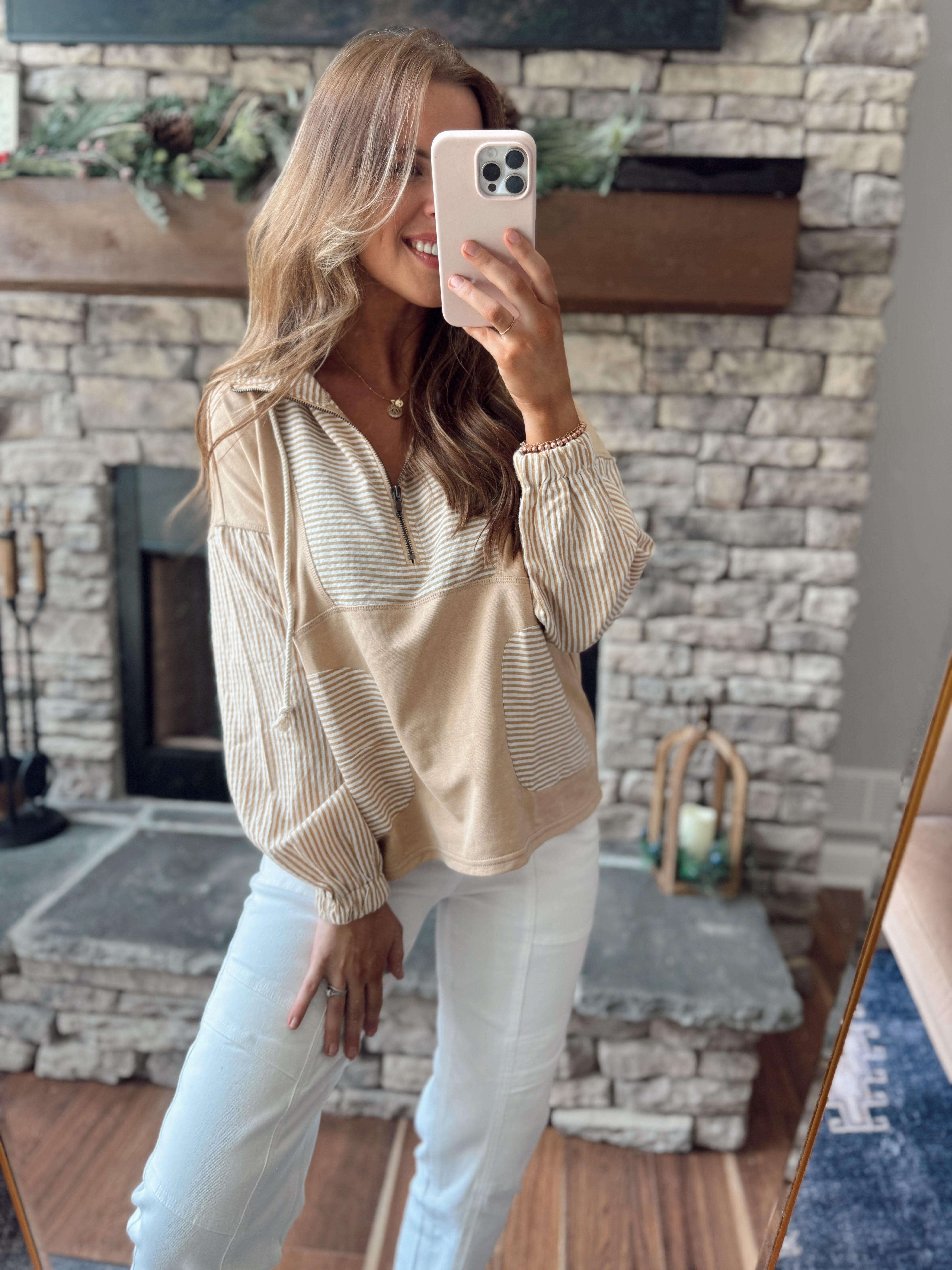 Coast Line Camel Stripe Mix French Terry Half Zip