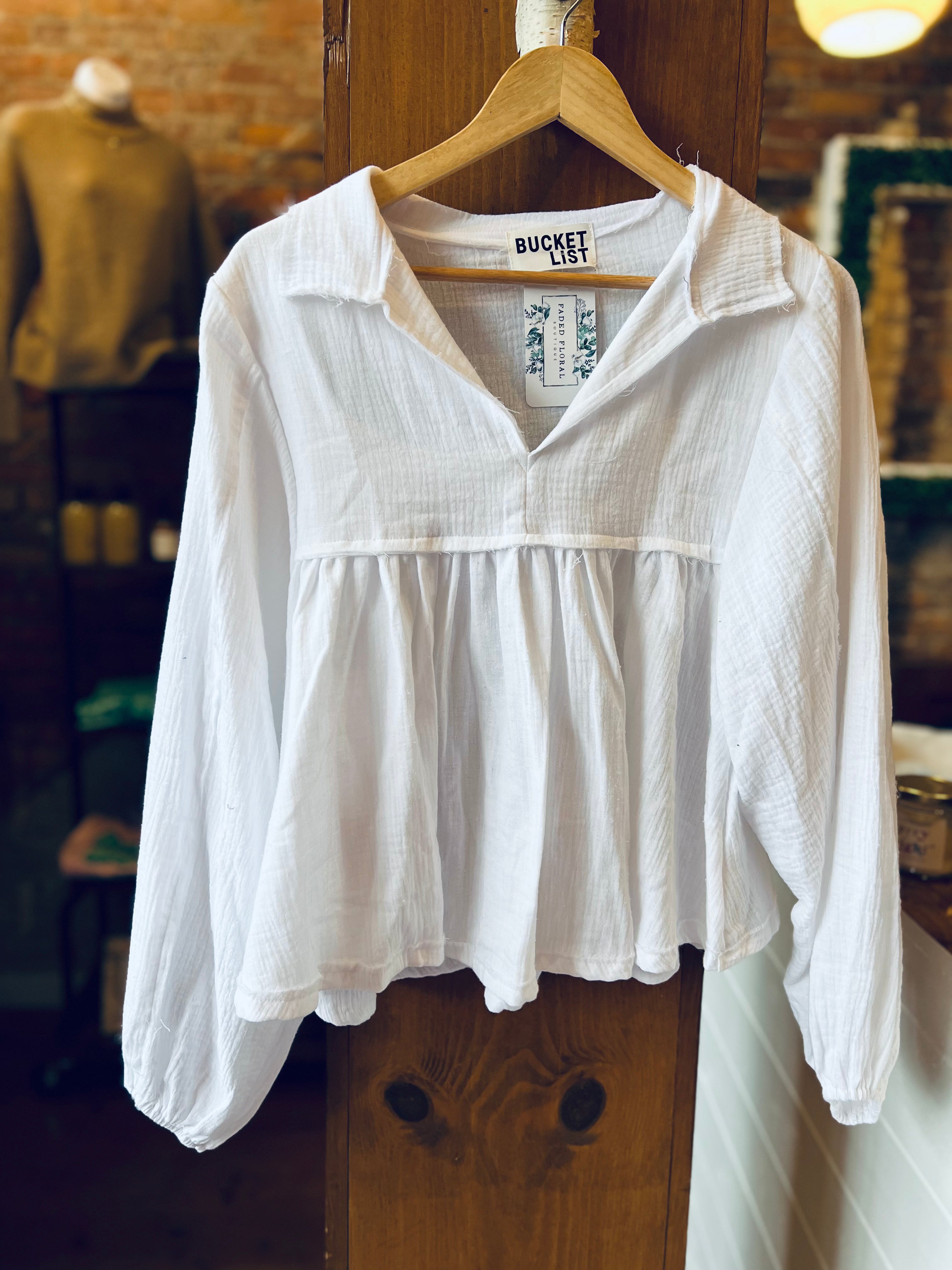 Cloud Wash Embroidered Collar Button Down Short Sleeve