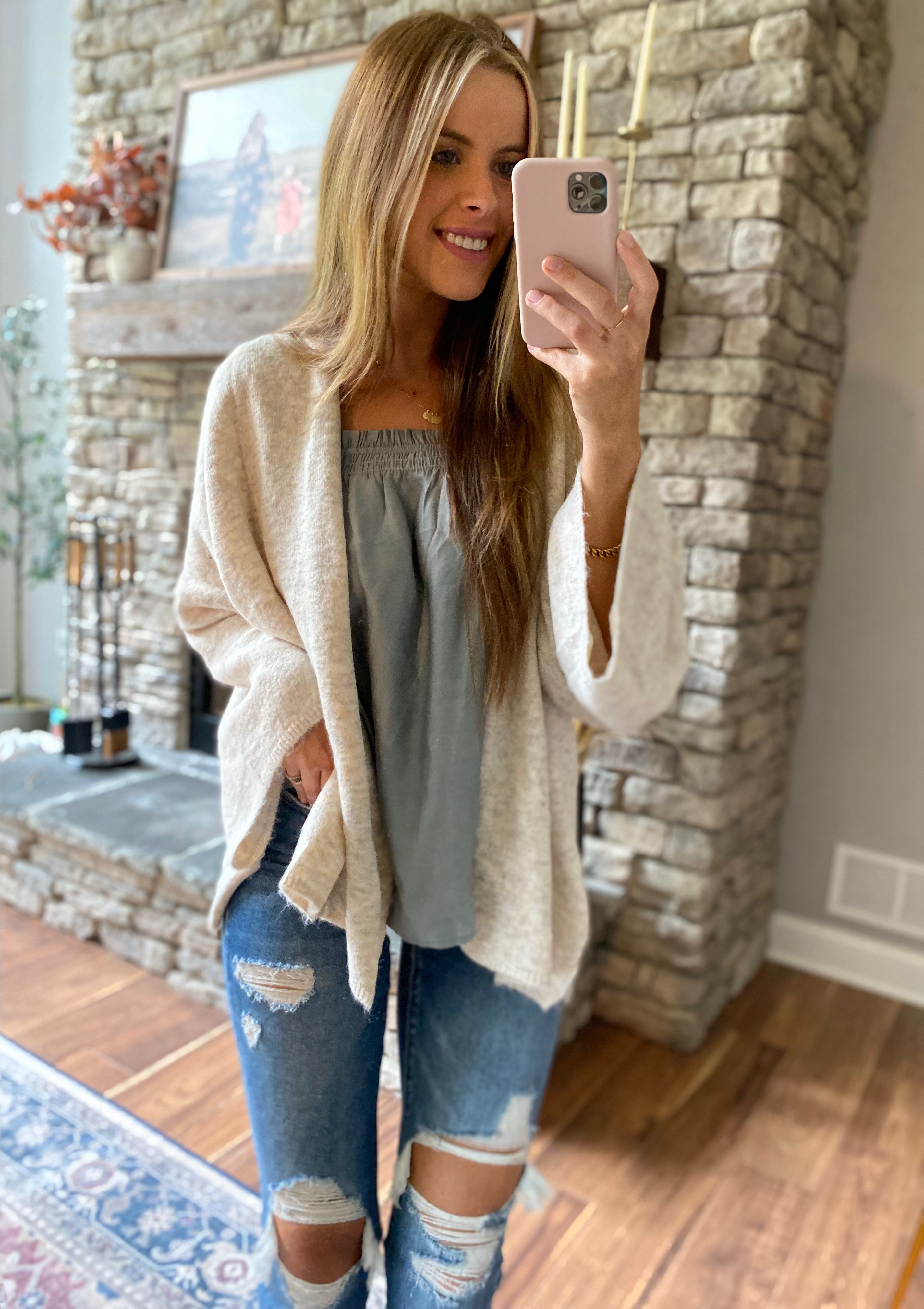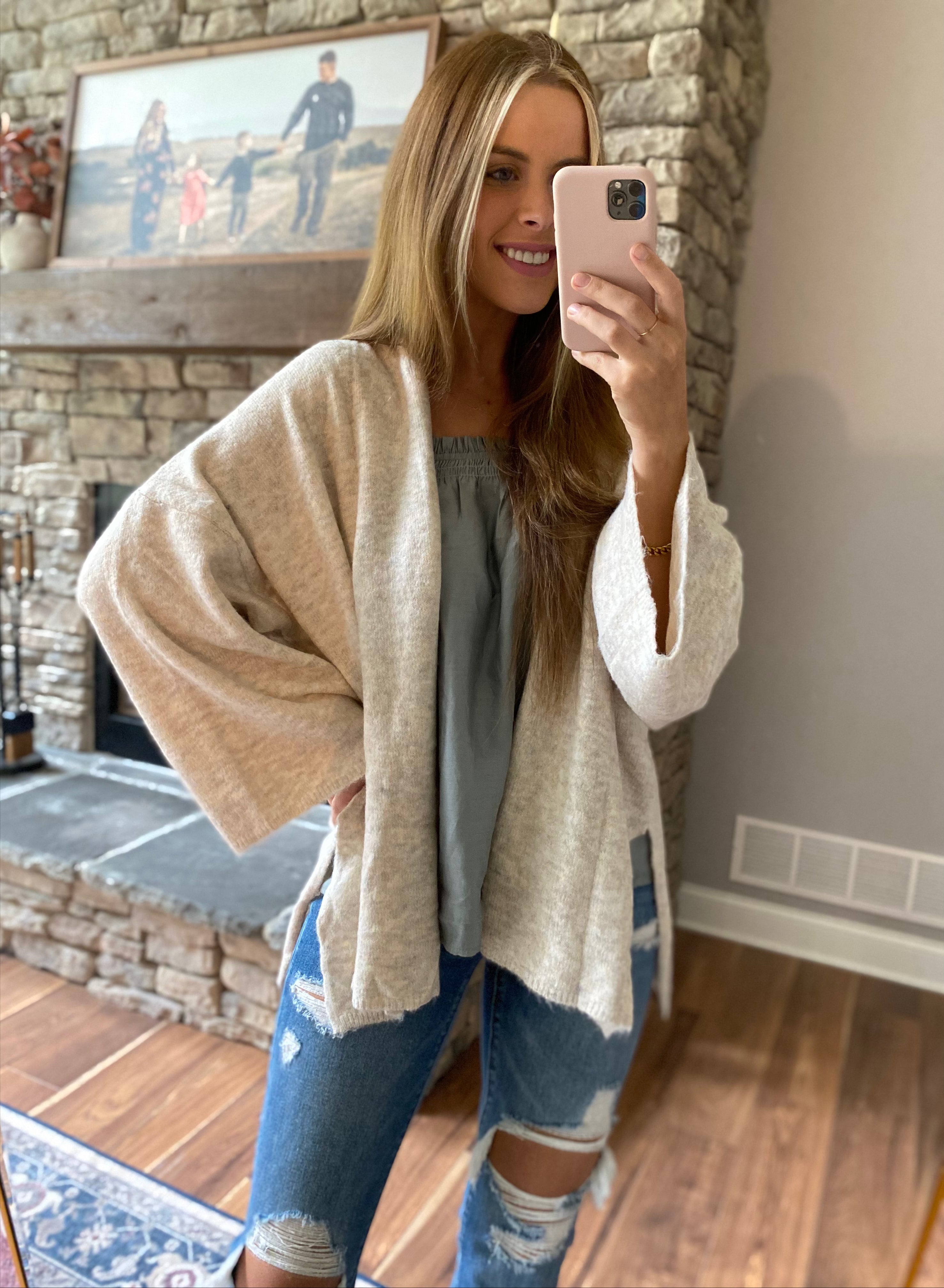 Amelia Tan/White Knit Tank and Cardi Set with Stitch Detailing