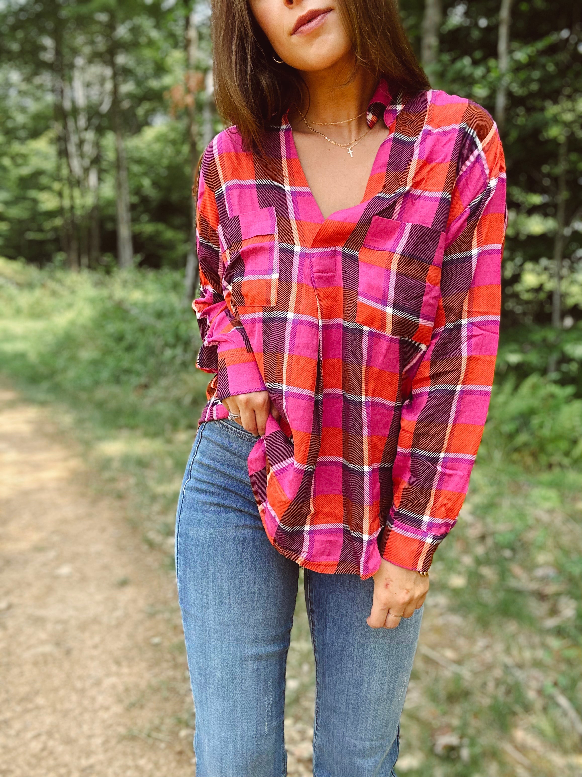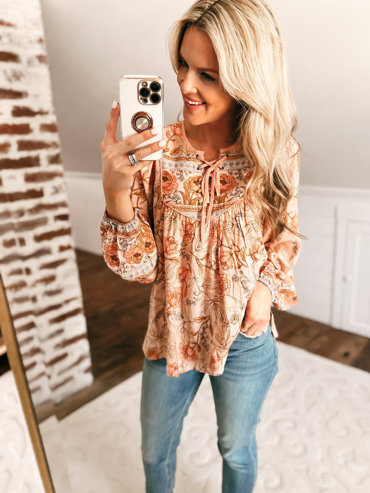 Enough Said Pink Floral Mix Laced Up Peasant Top