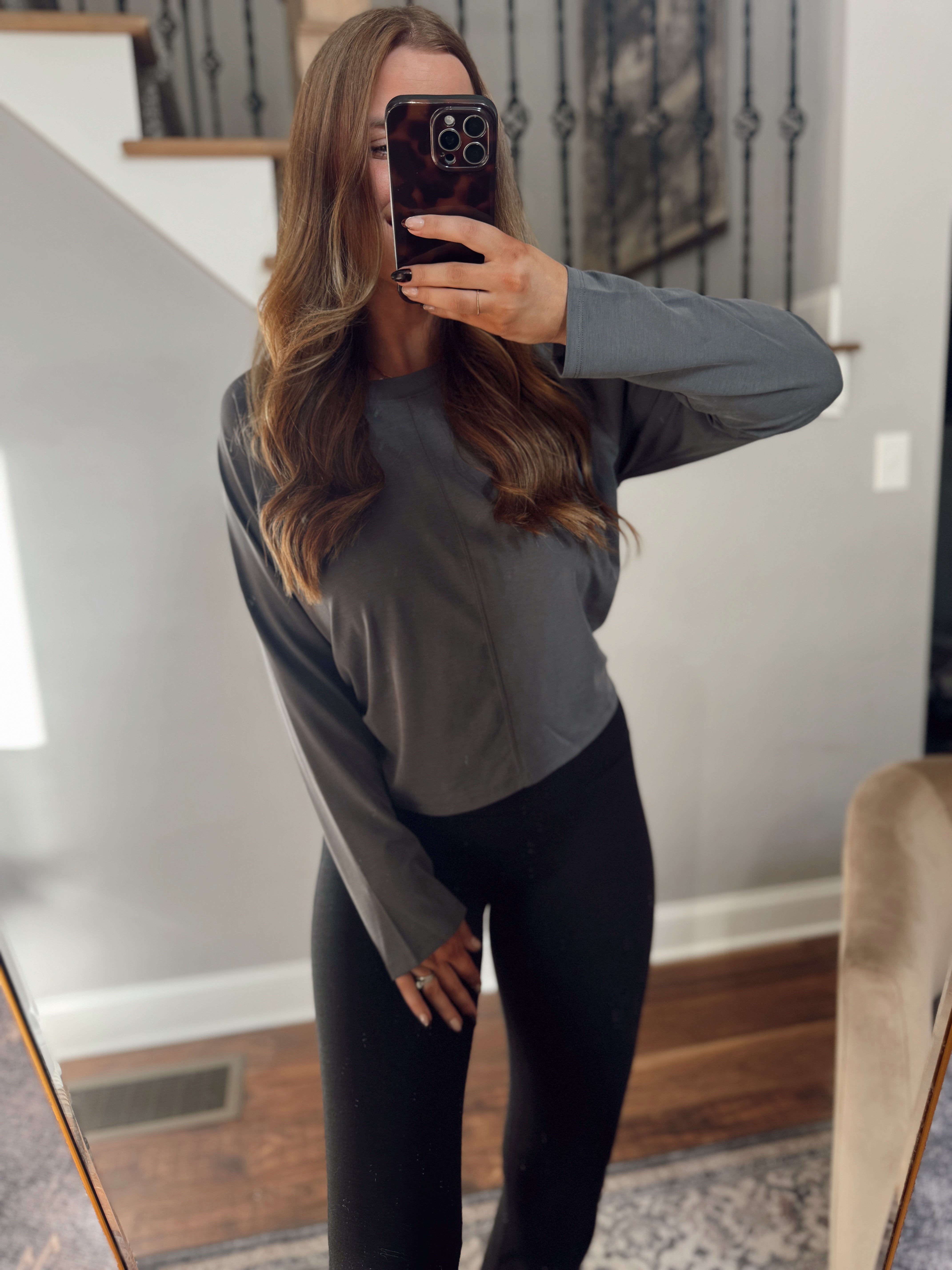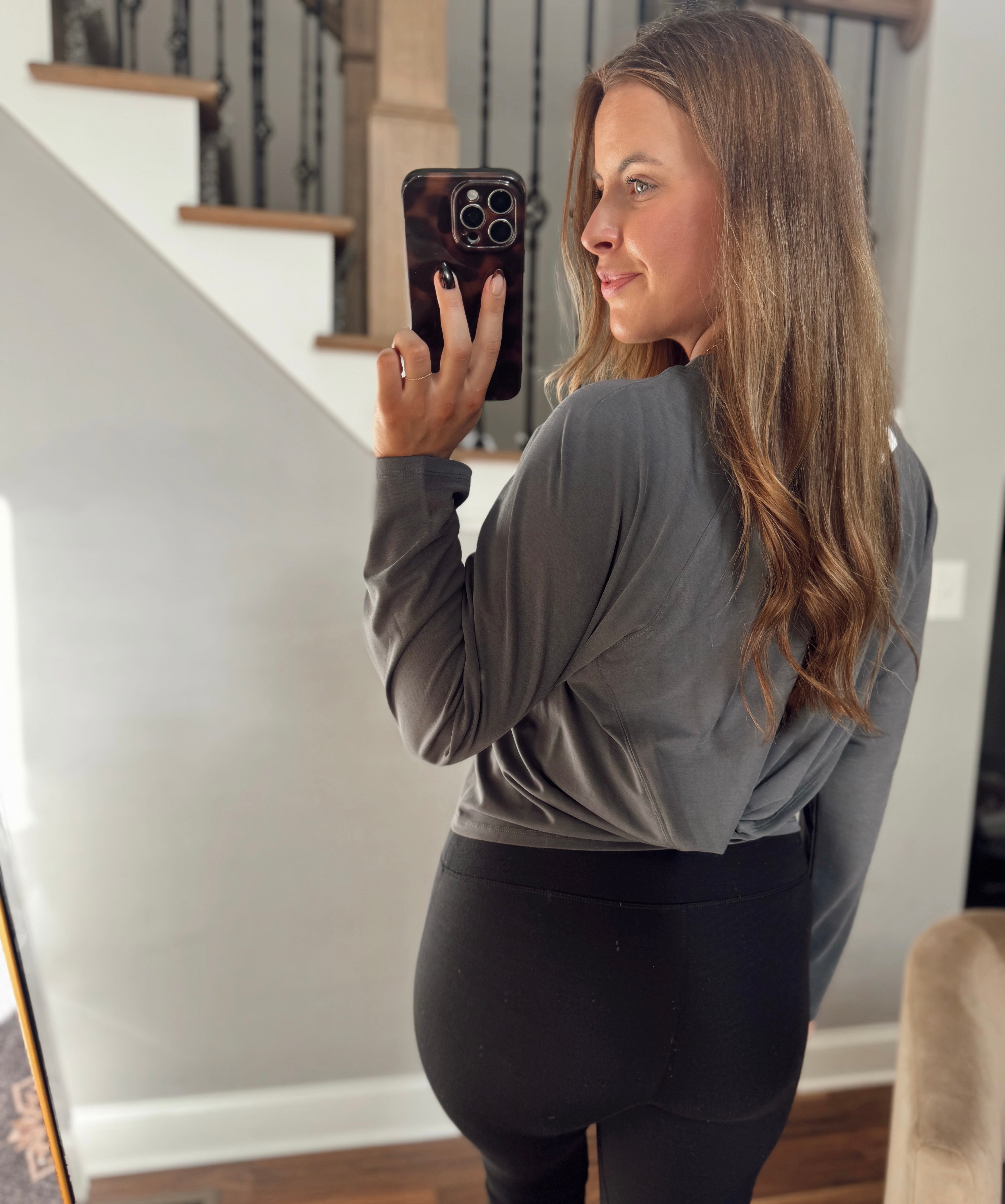 Flowy Movement Dark Grey Scuba Twist Back Long Sleeve