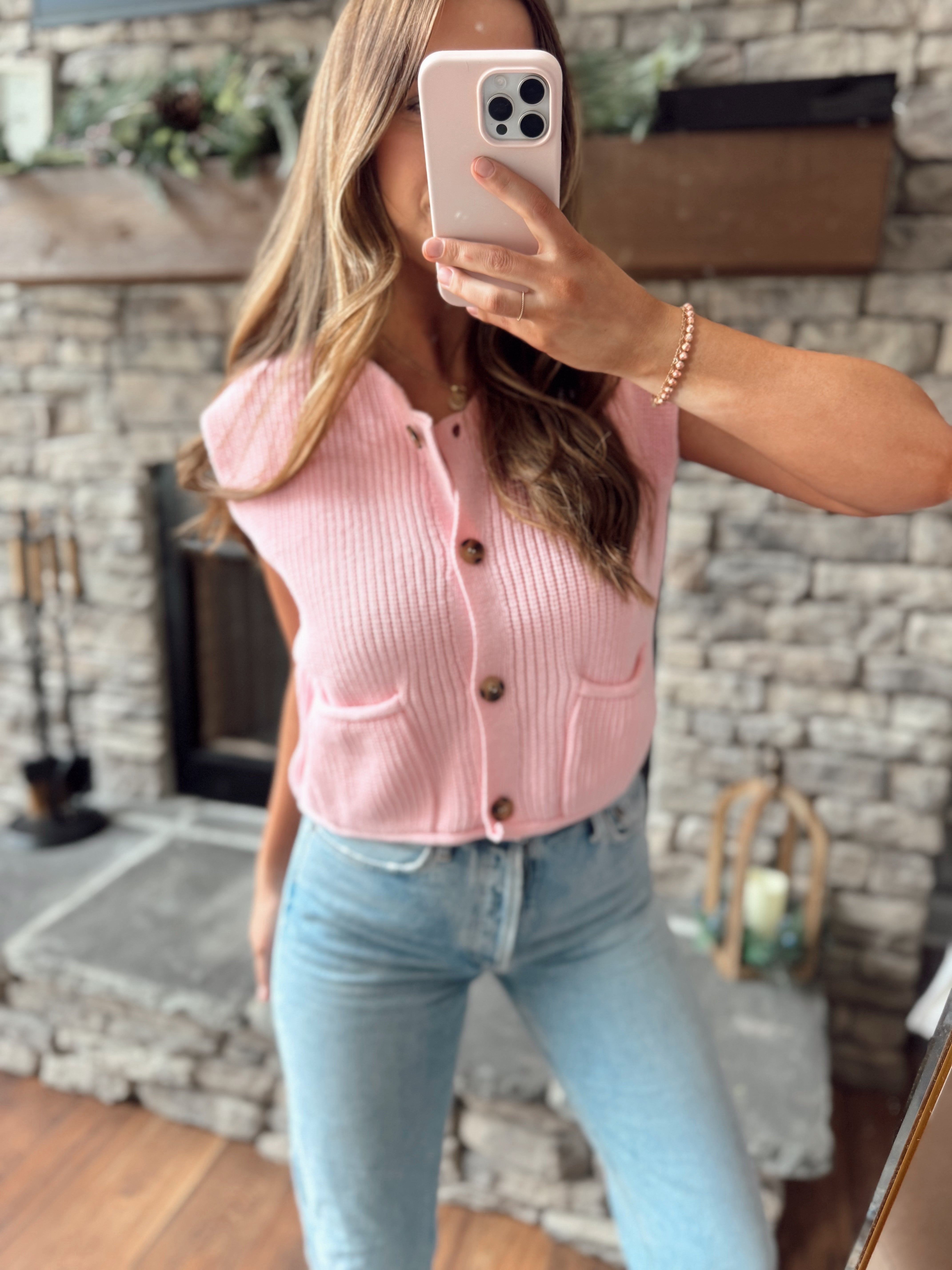 Baby Pink Pocket Pal Button Down Sweater Vest
