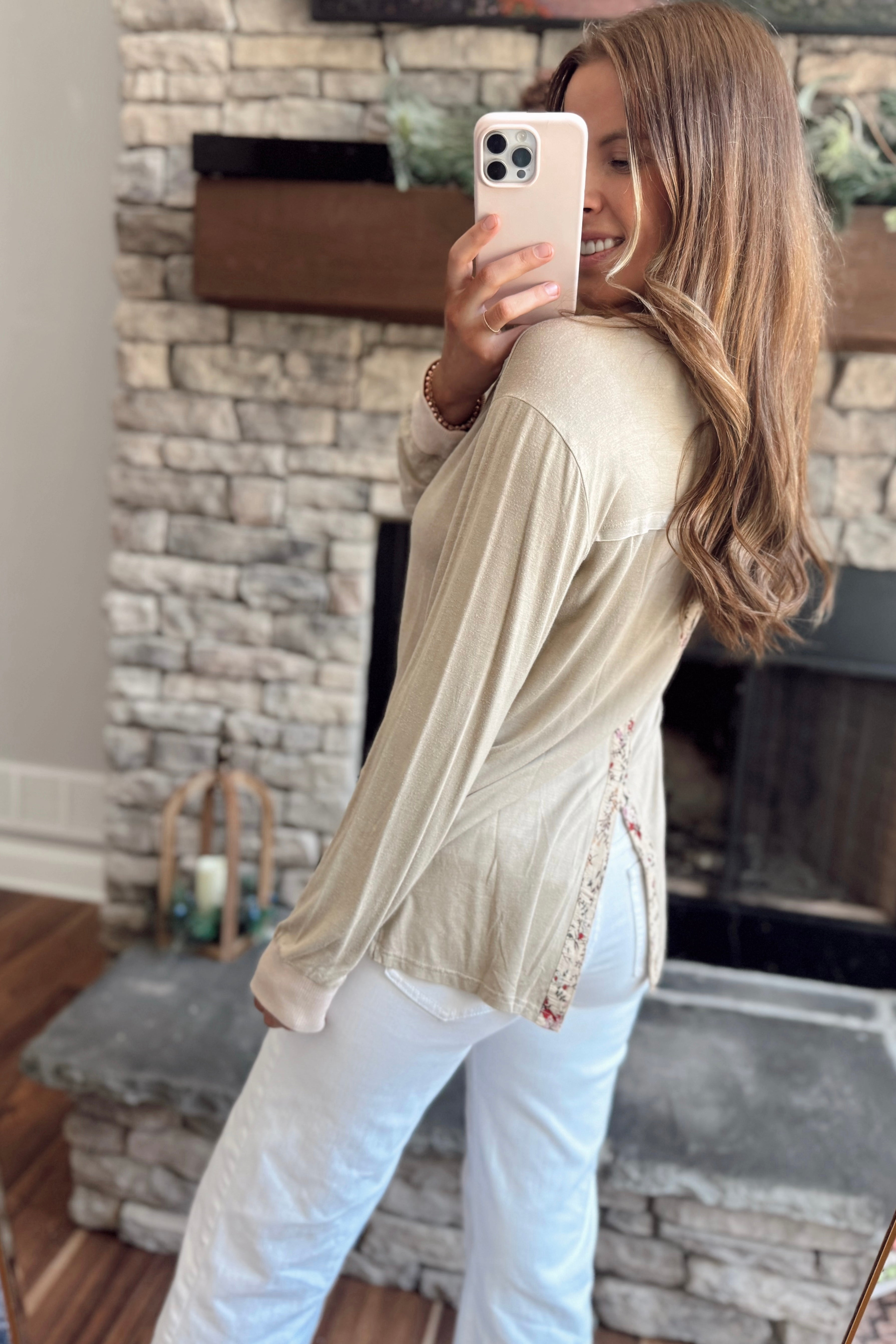 Averie Camel Mineral Washed Oversized Polo Pullover