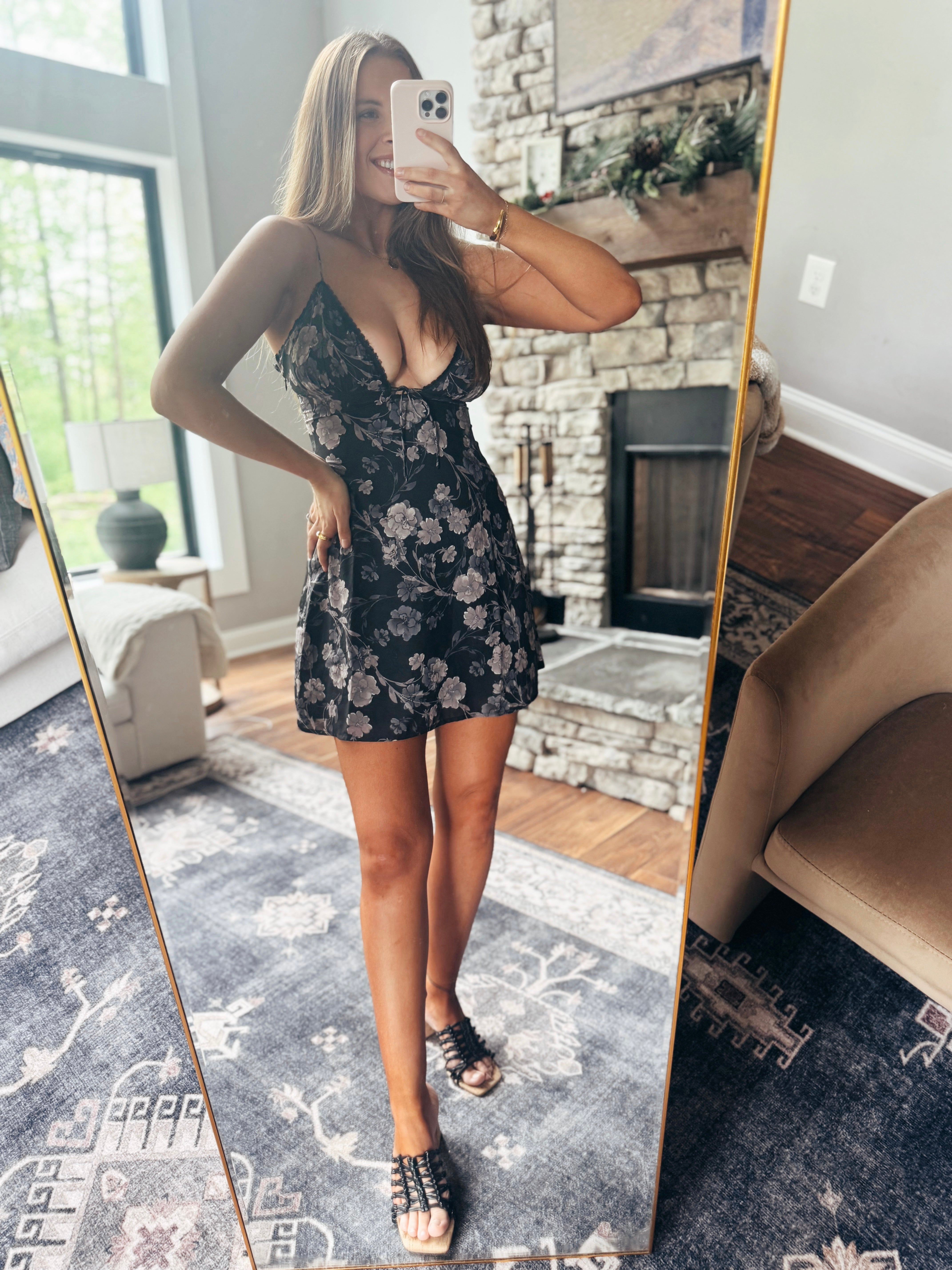 Going Out Tonight Black Multi Floral Front Tie Slipon Mini