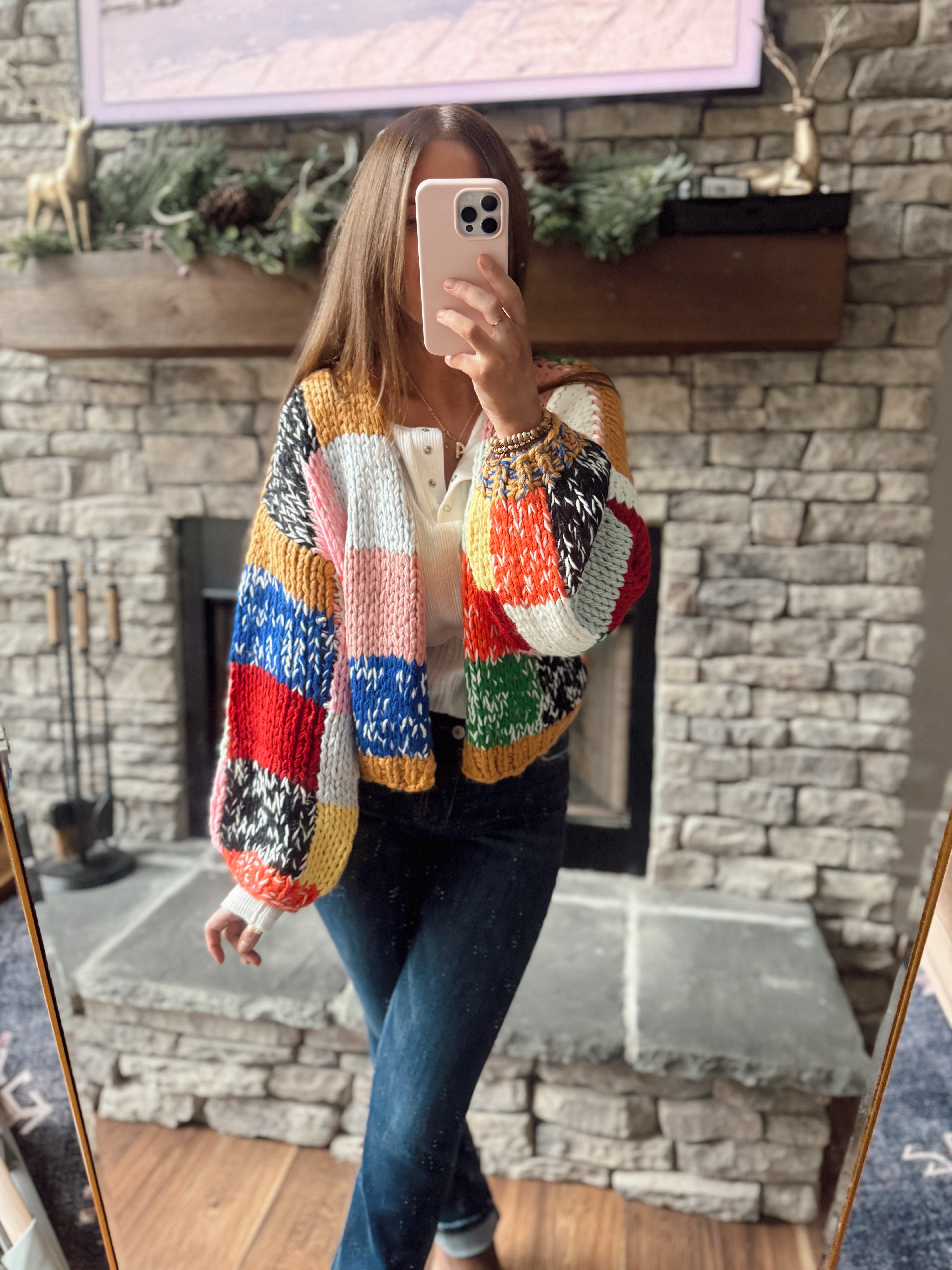 Grannys Favorite Rainbow Colorblock Knit Cardi