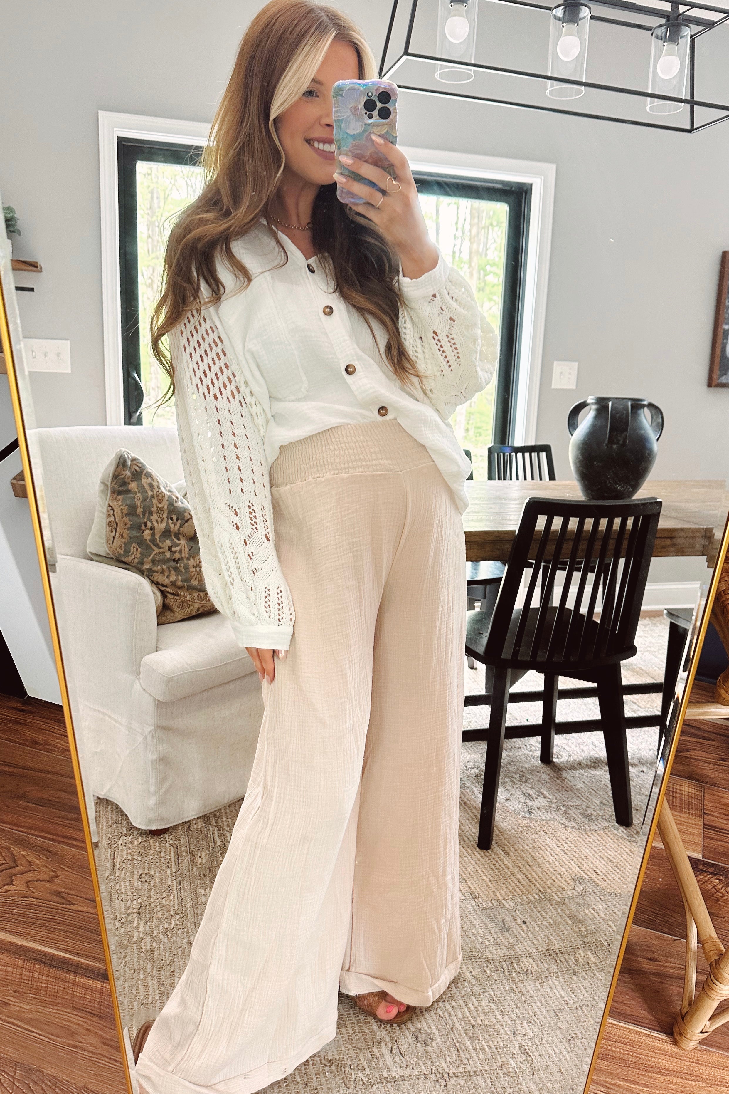 Happy Feeling Natural Gauze Wide-Leg Pants