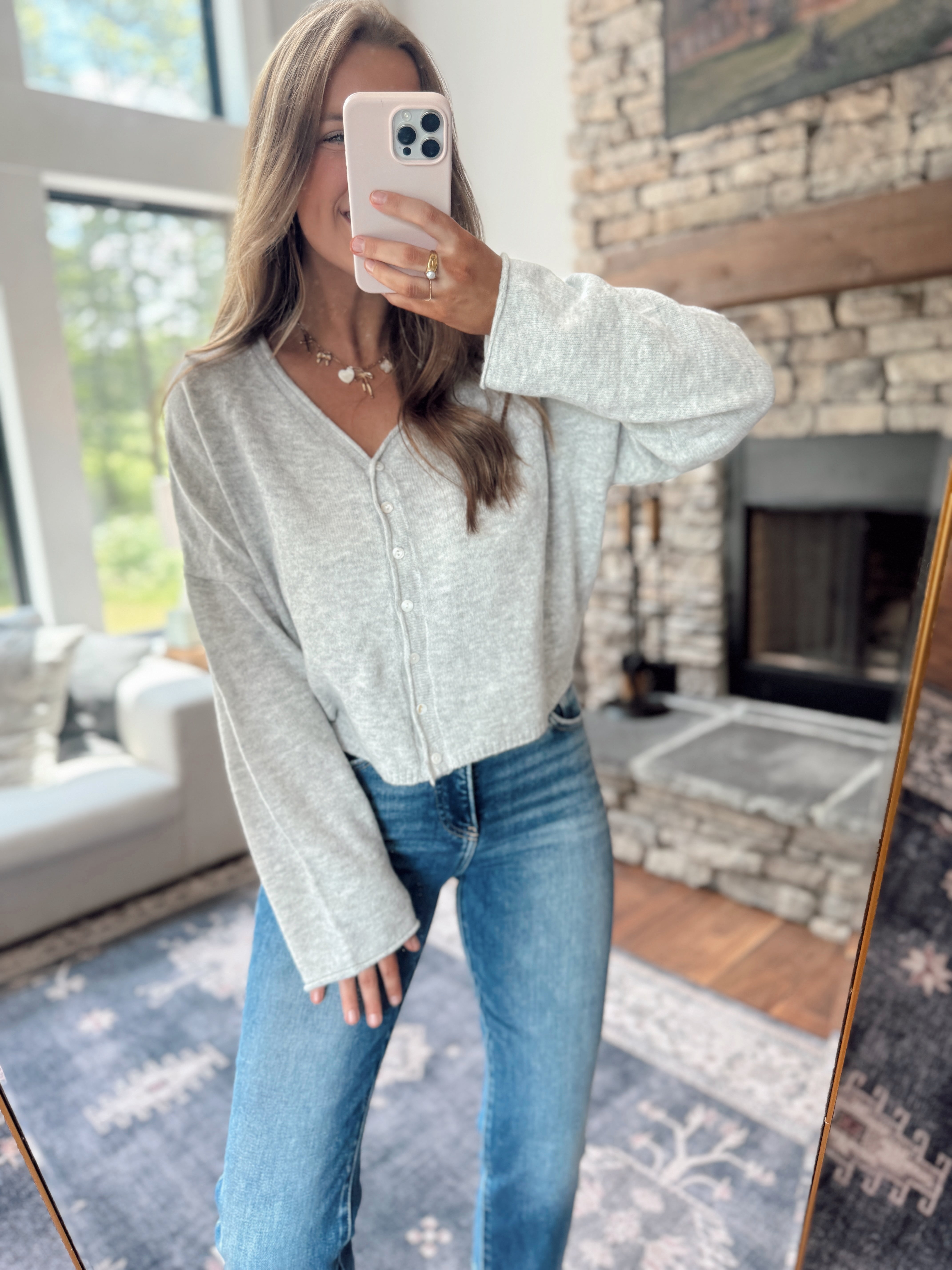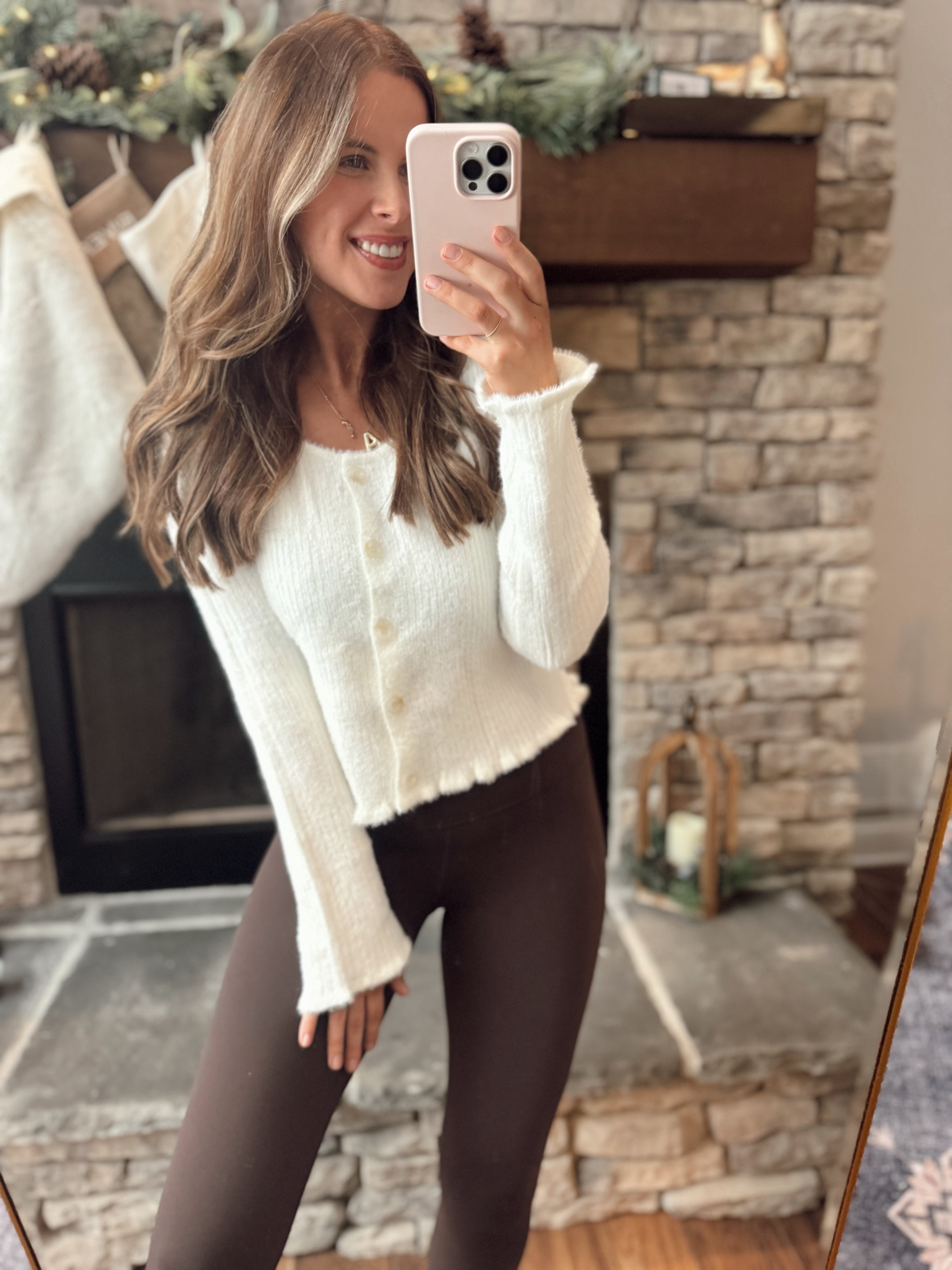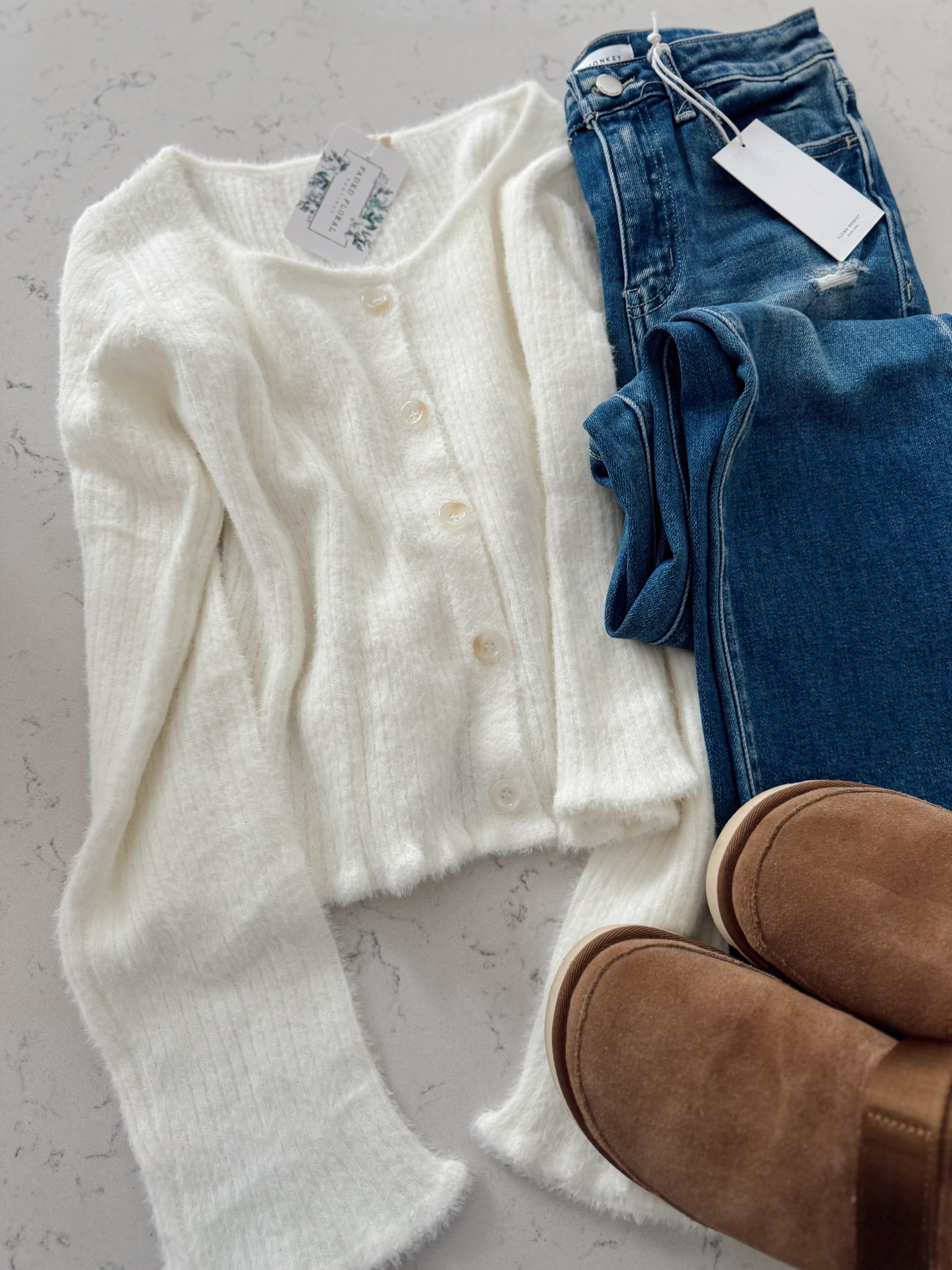 Harlow Ivory Eyelash Knit Button Down Cardi