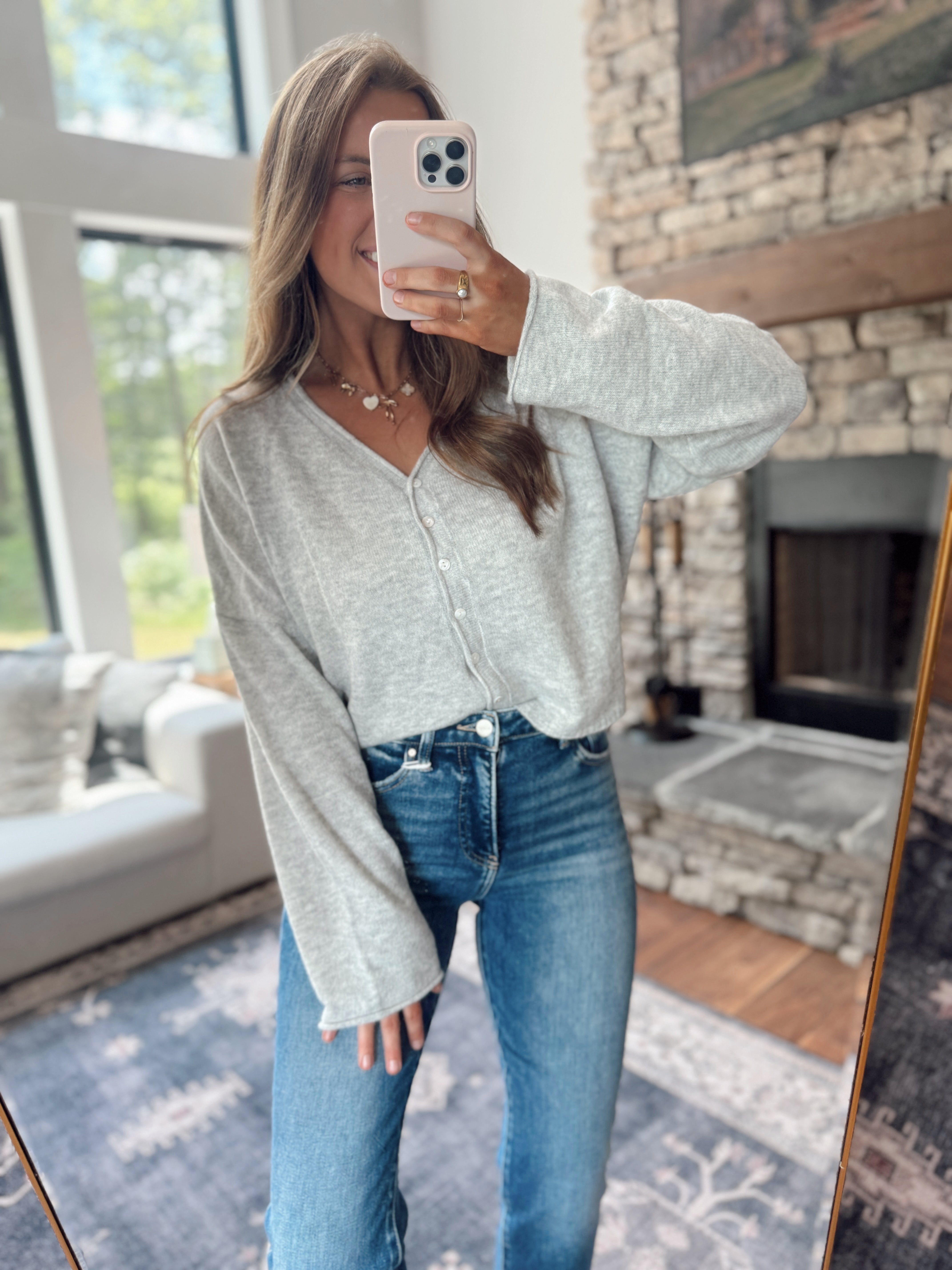 Heather Gray Anslie Waffle Knit Half Button Pullover