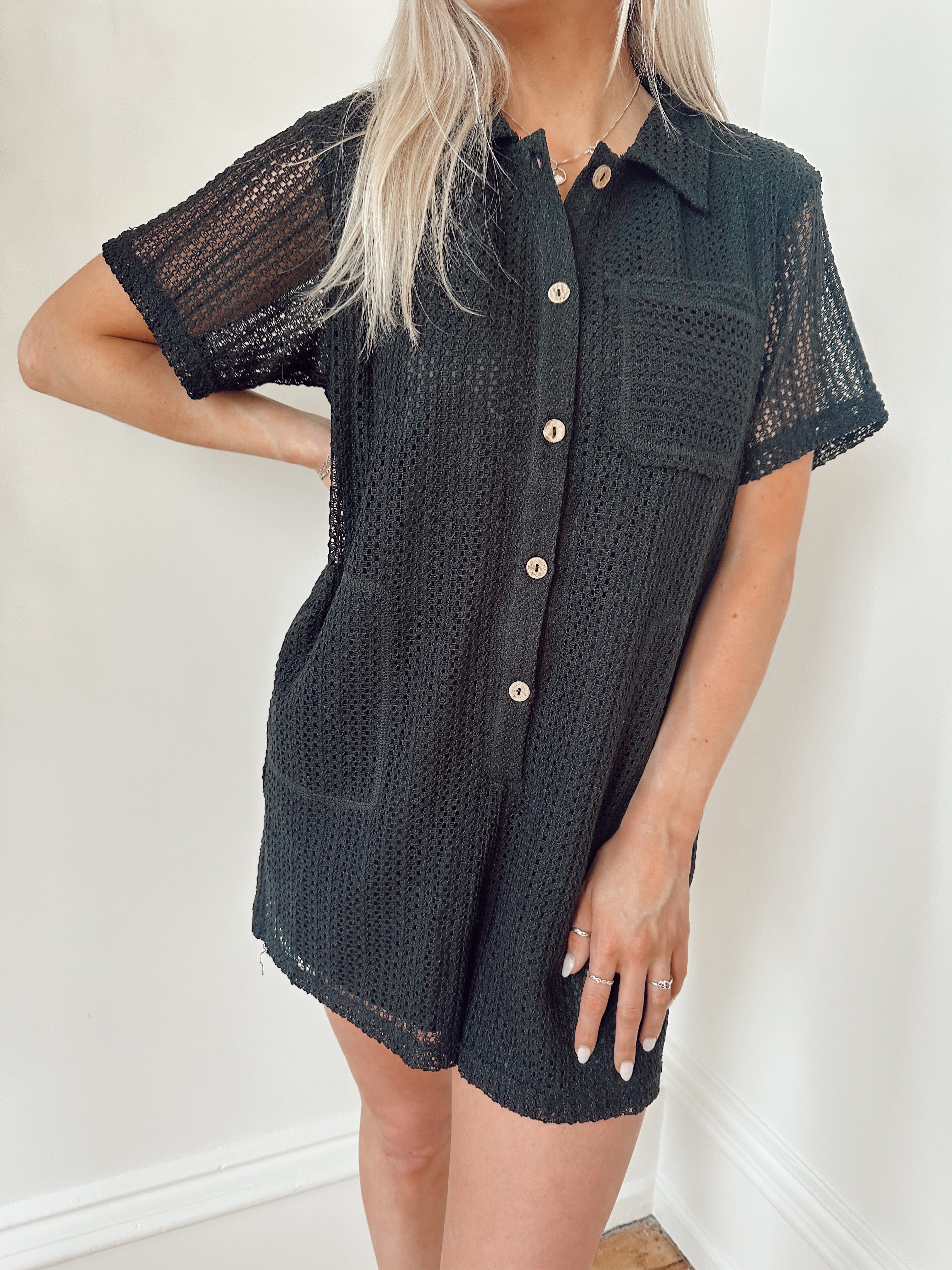 Bali Black Crochet Button Down Romper