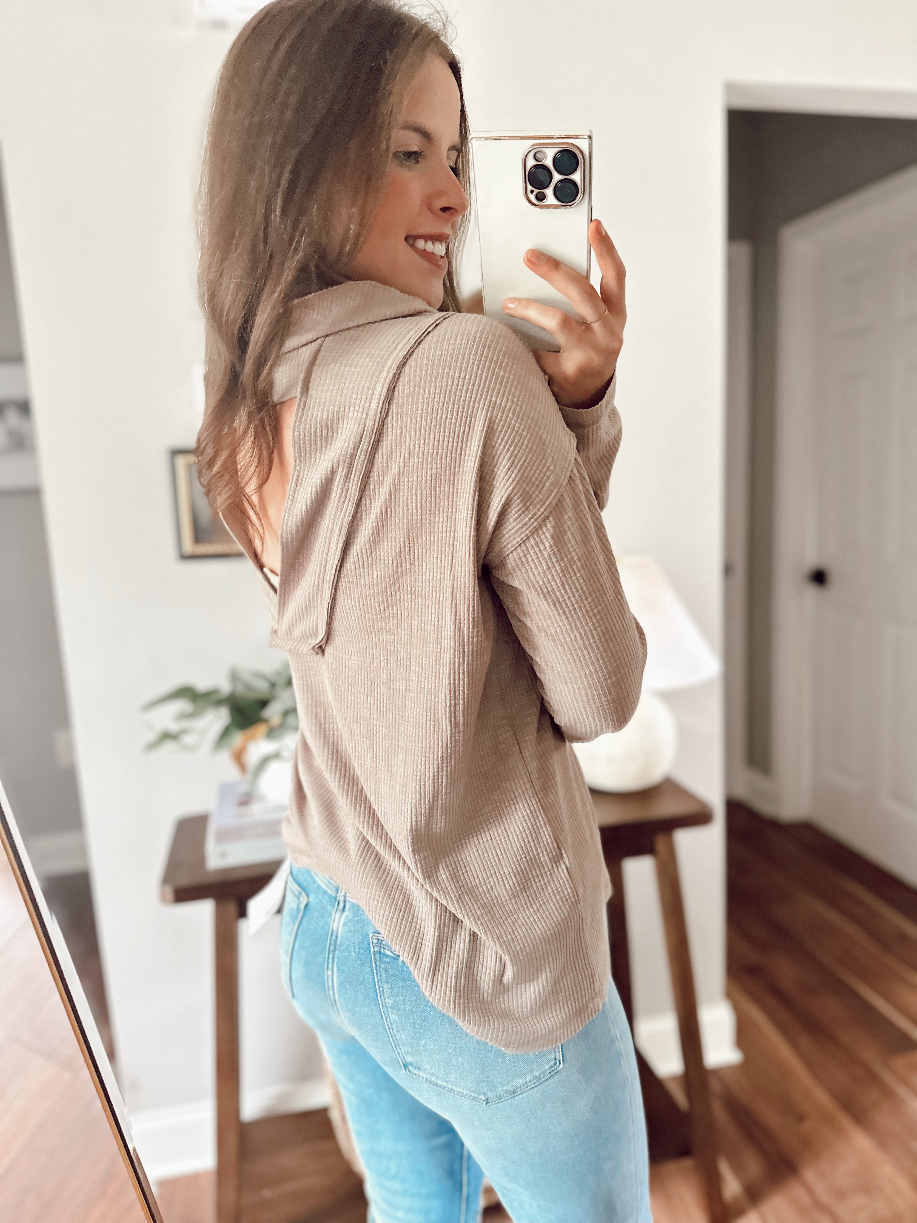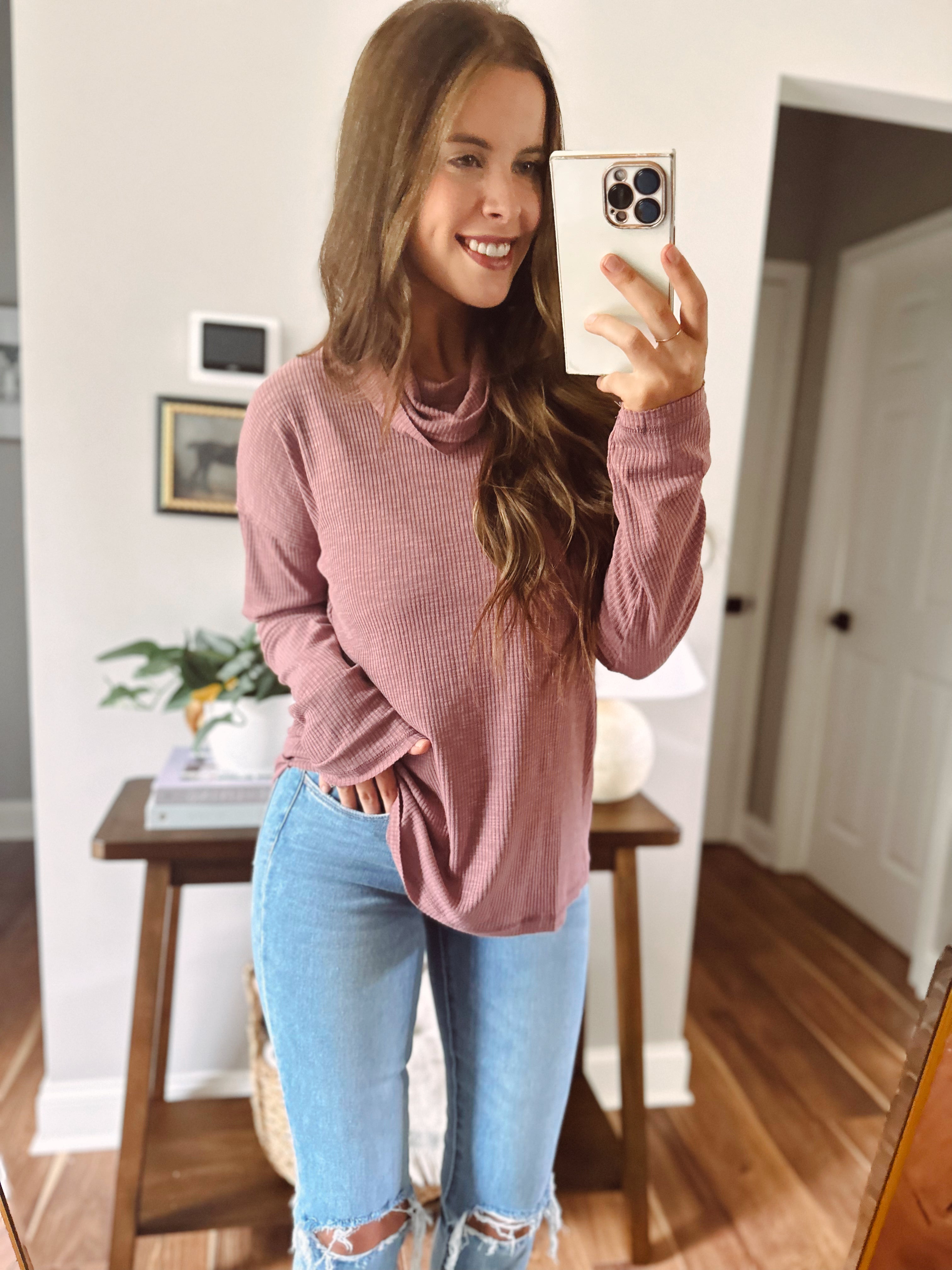 Backin It Up Grape Cutout Cowl Neck Pullover