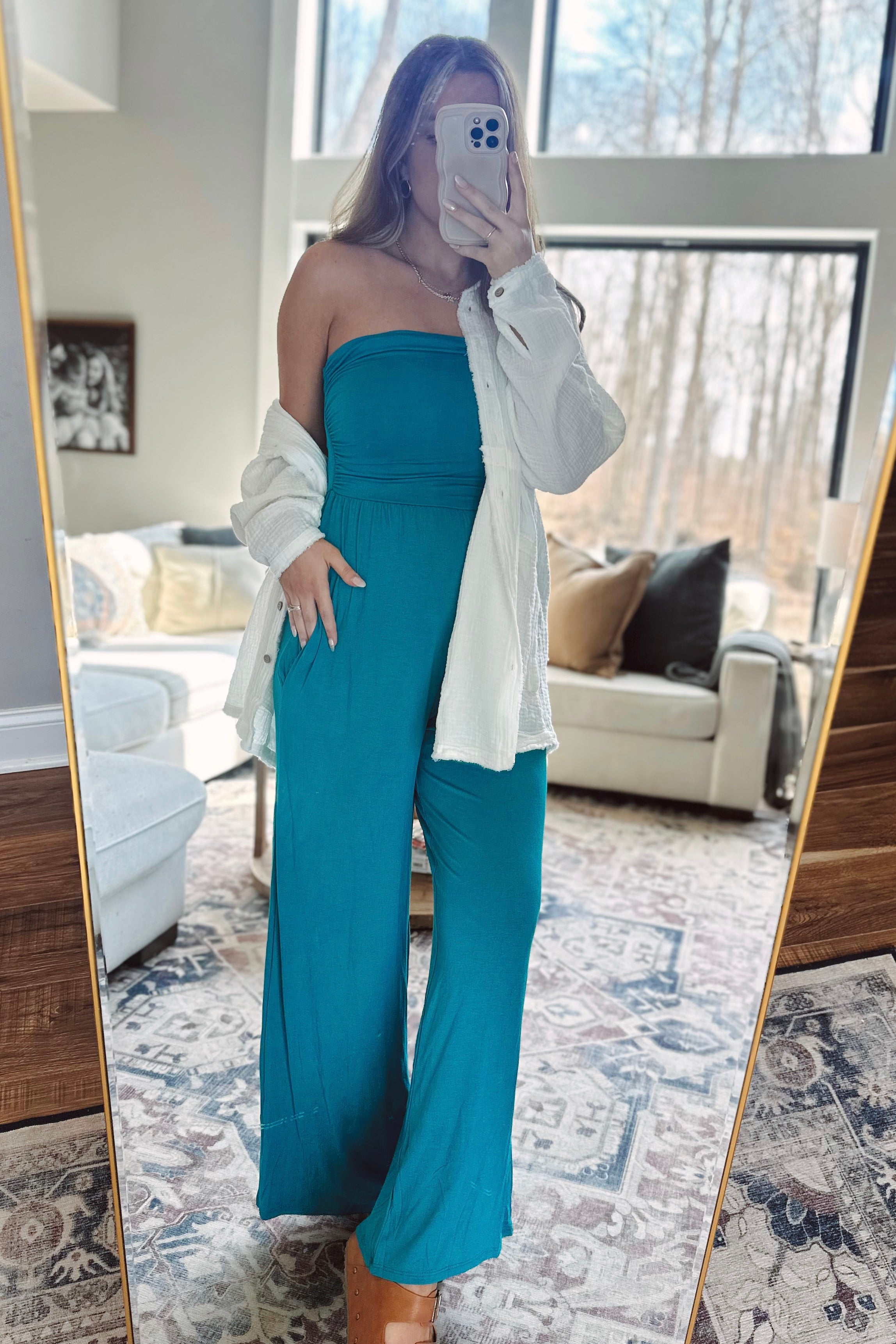 Hot Shot Jade Strapless Jumpsuit