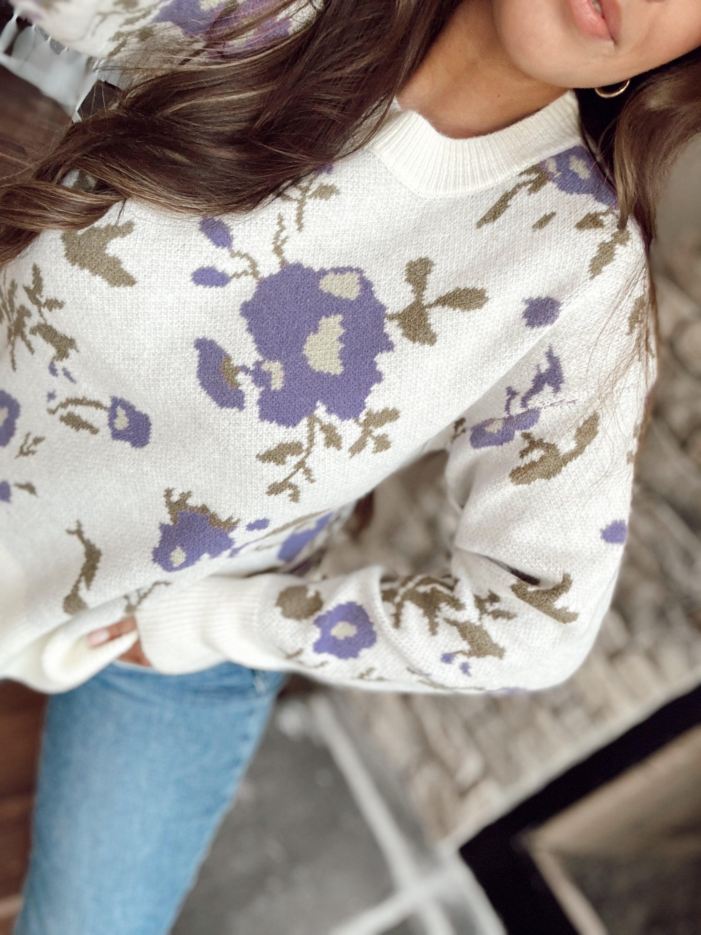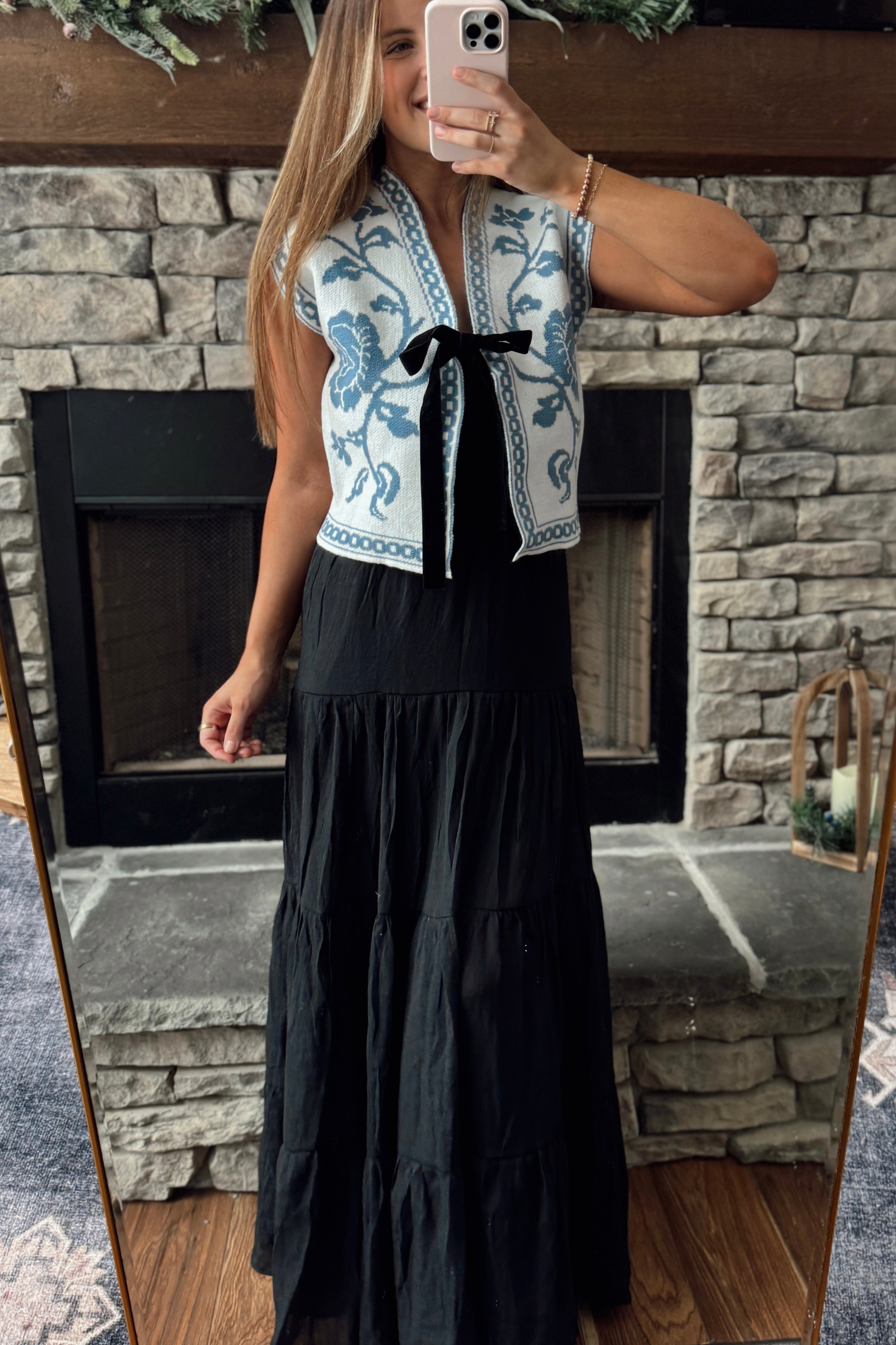 Jackie Powder Blue Rose Print Sweater Vest with Velvet Front Tie
