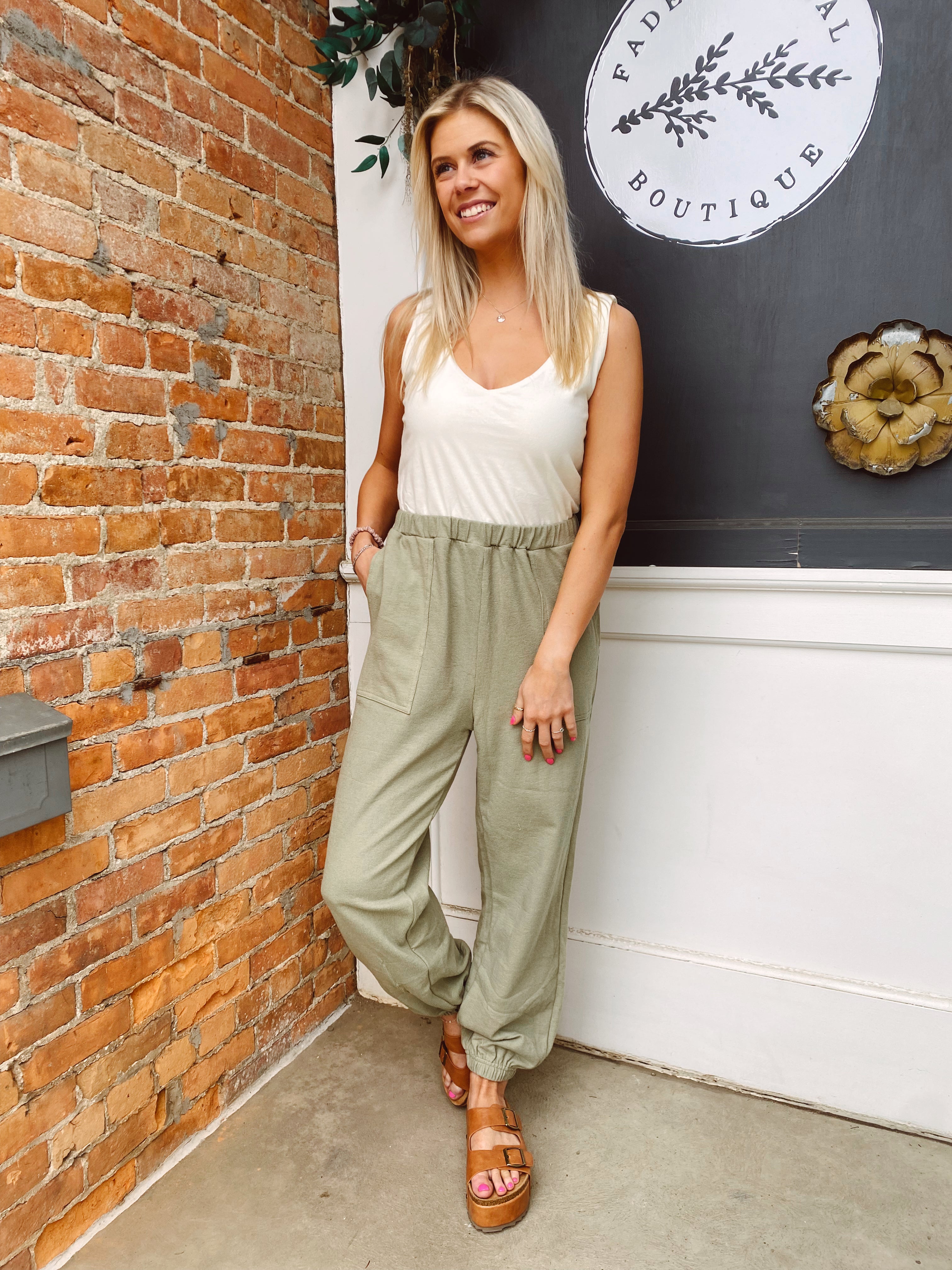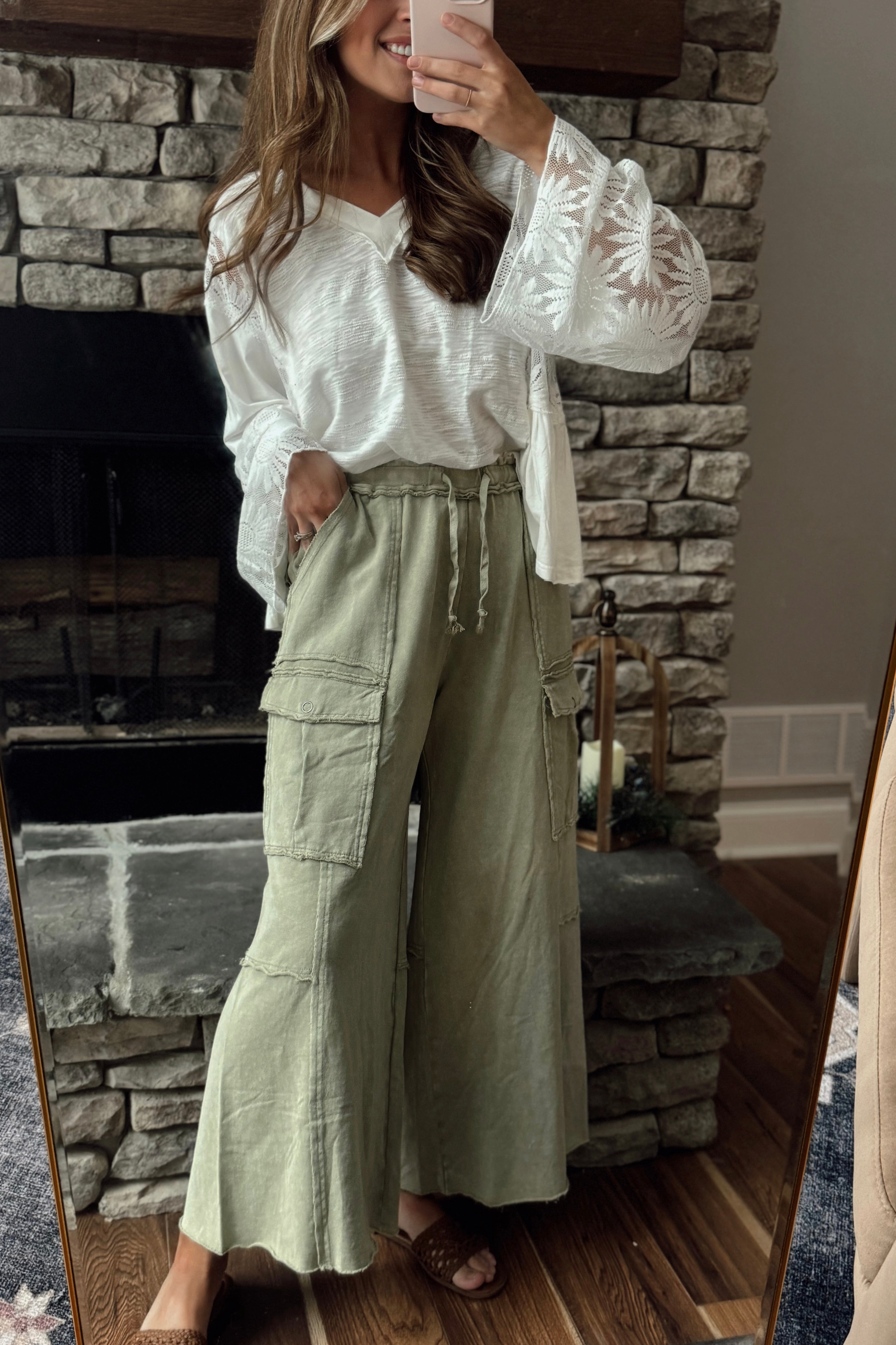 Jaded Faded Olive Mineral-Washed Wide Leg Cargo Pants