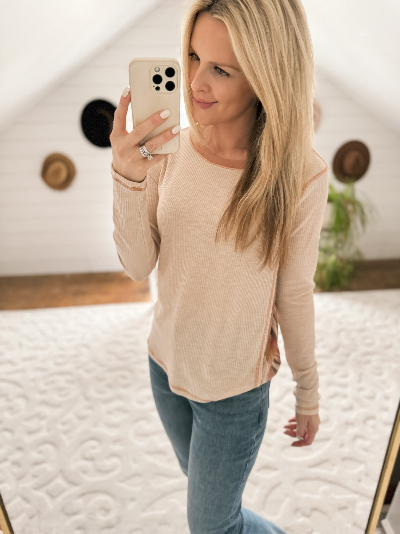 Janie Natural Aztec Peekaboo Rib Longsleeve