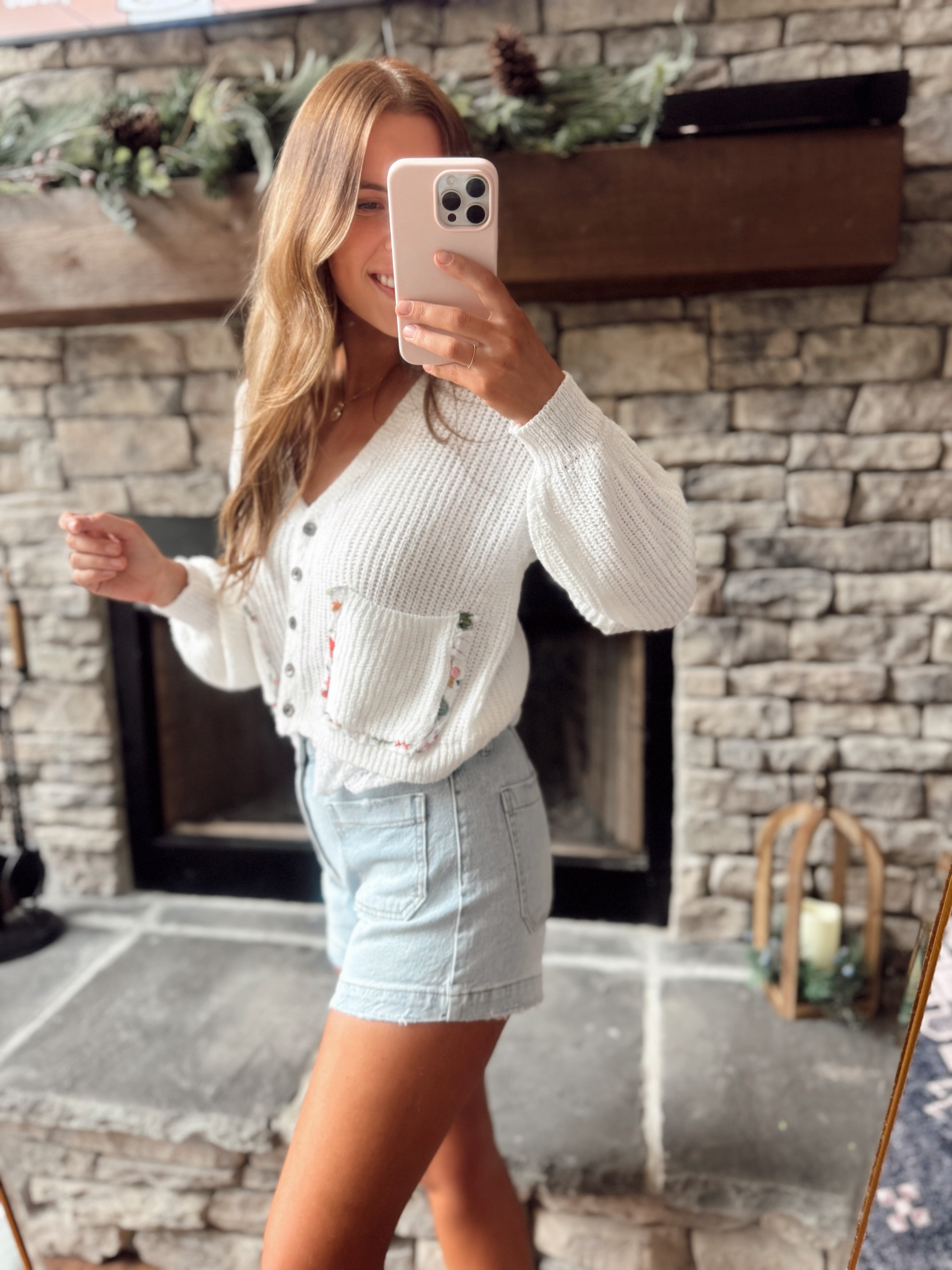 Karter M.Navy Crochet Button Up Sweater Top