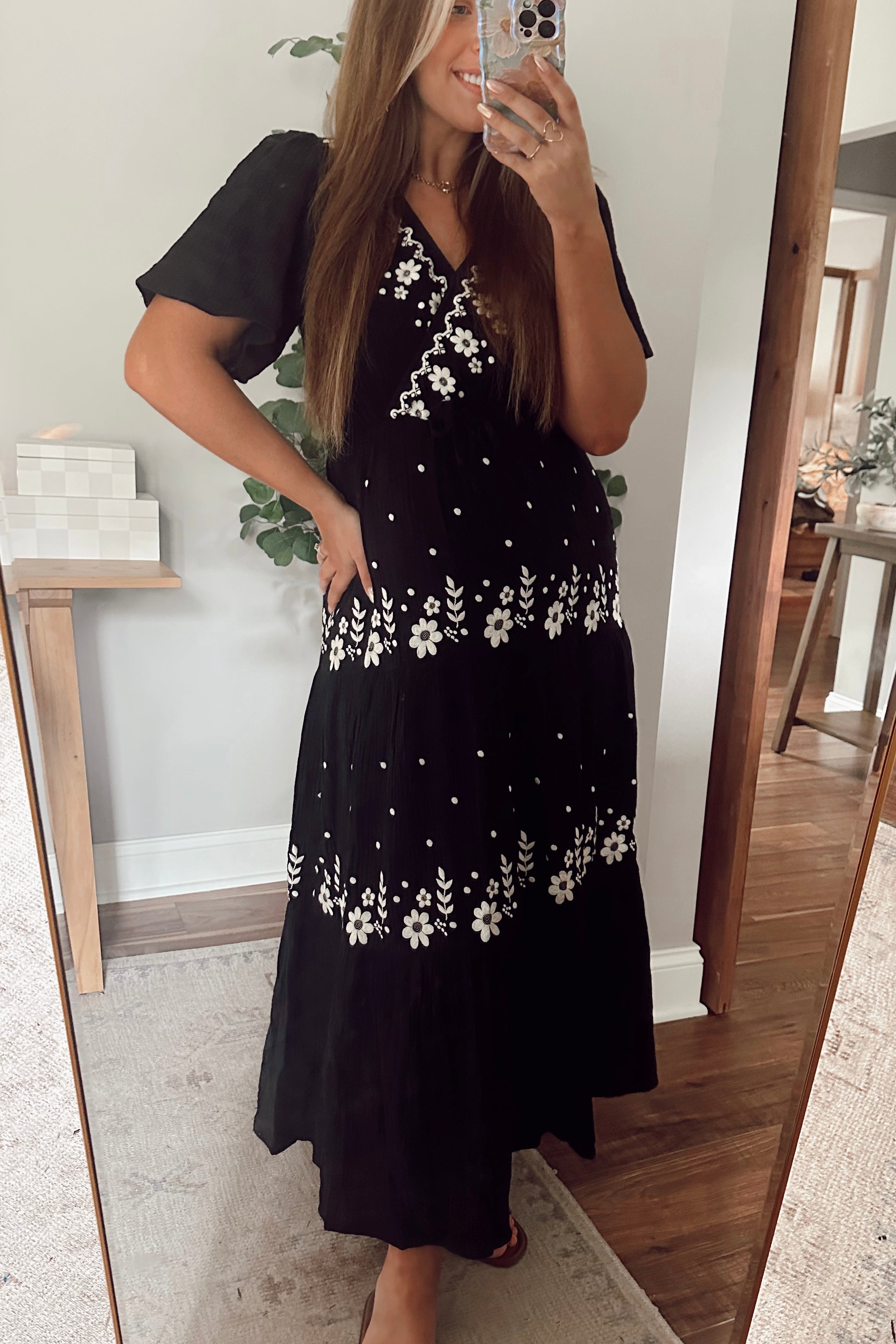 Kaia Black Embroidered Cotton Gauze Maxi
