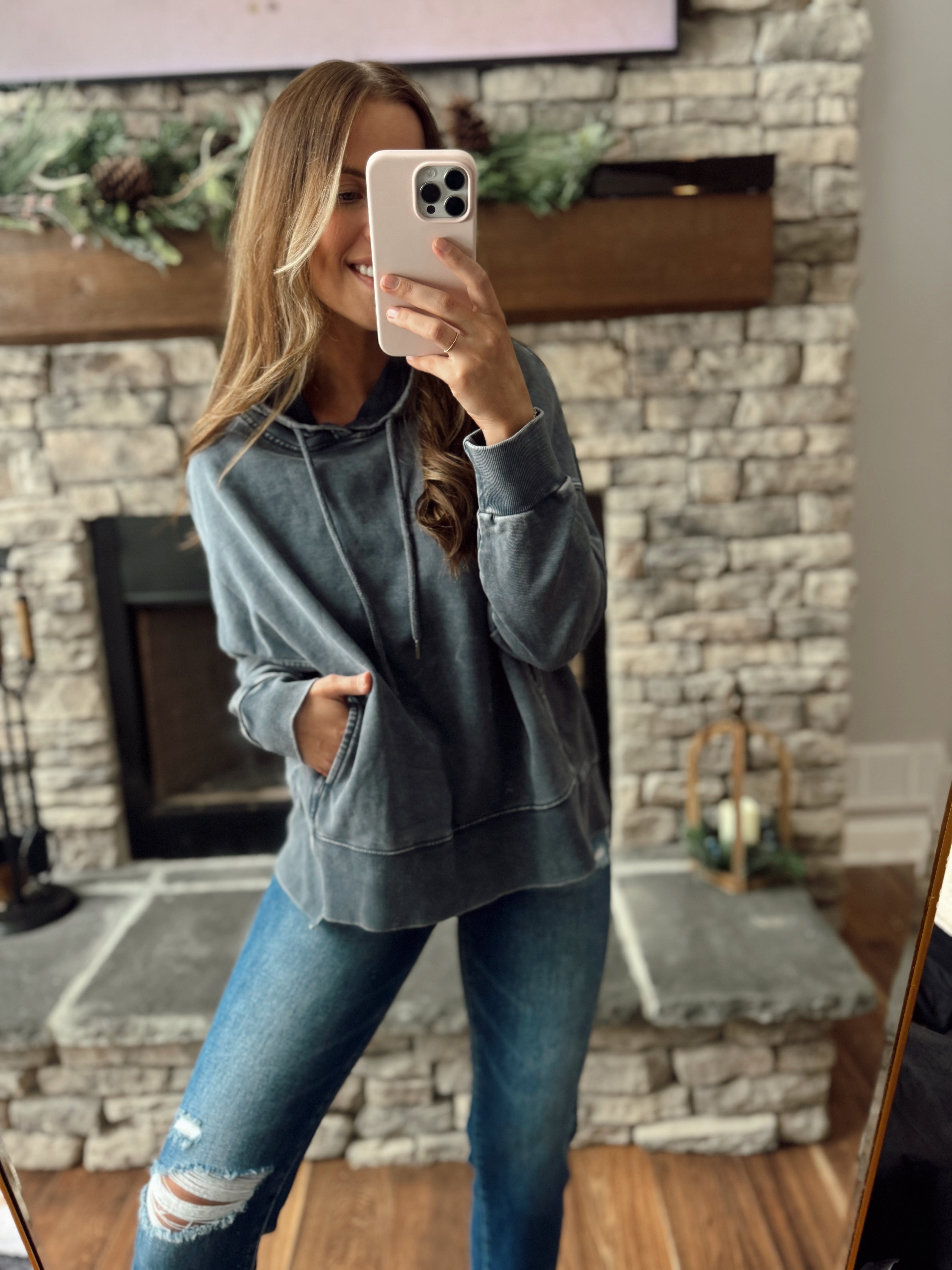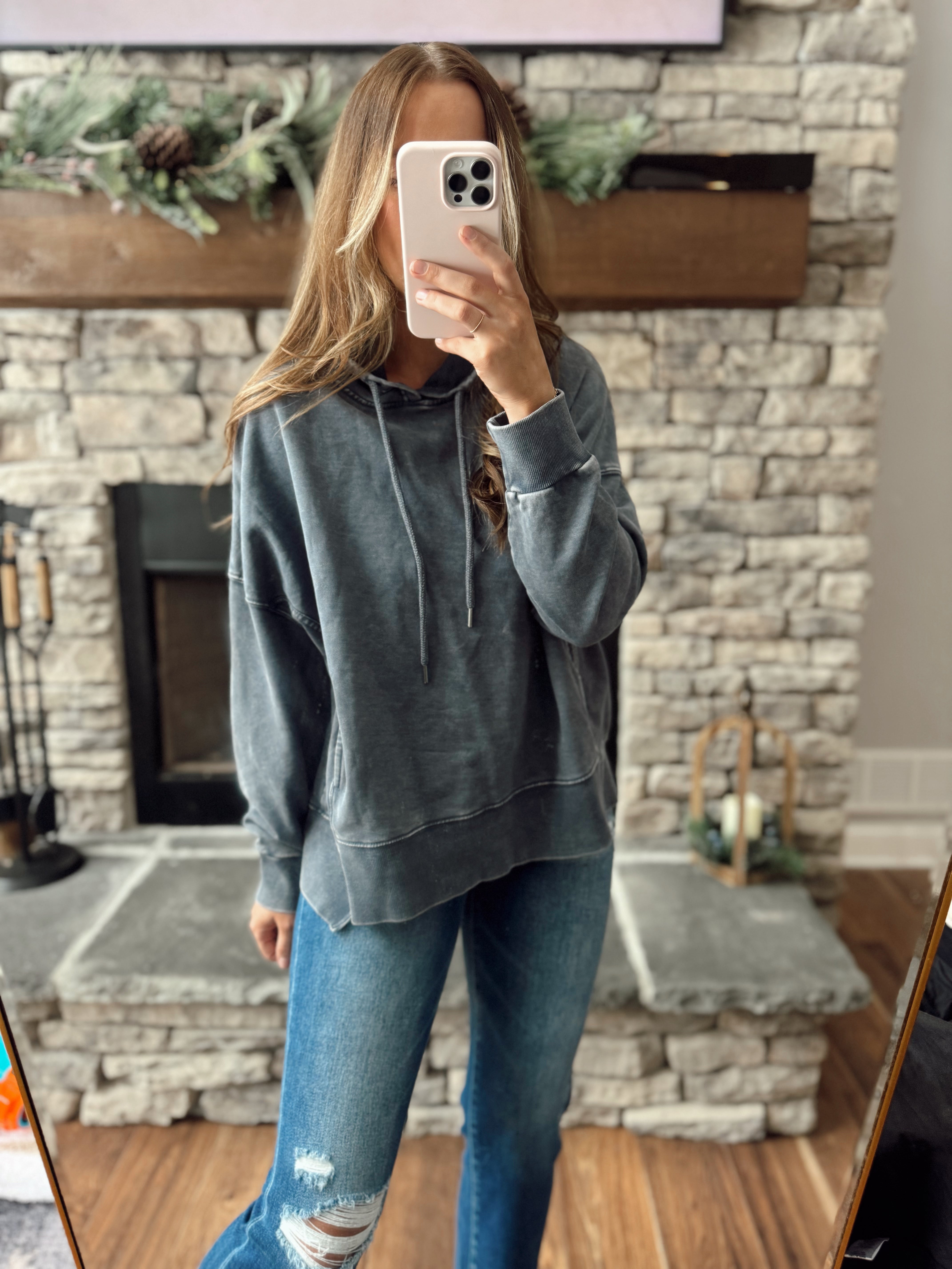 Ky Dark Blue Mineral-Washed Oversized Hoodie