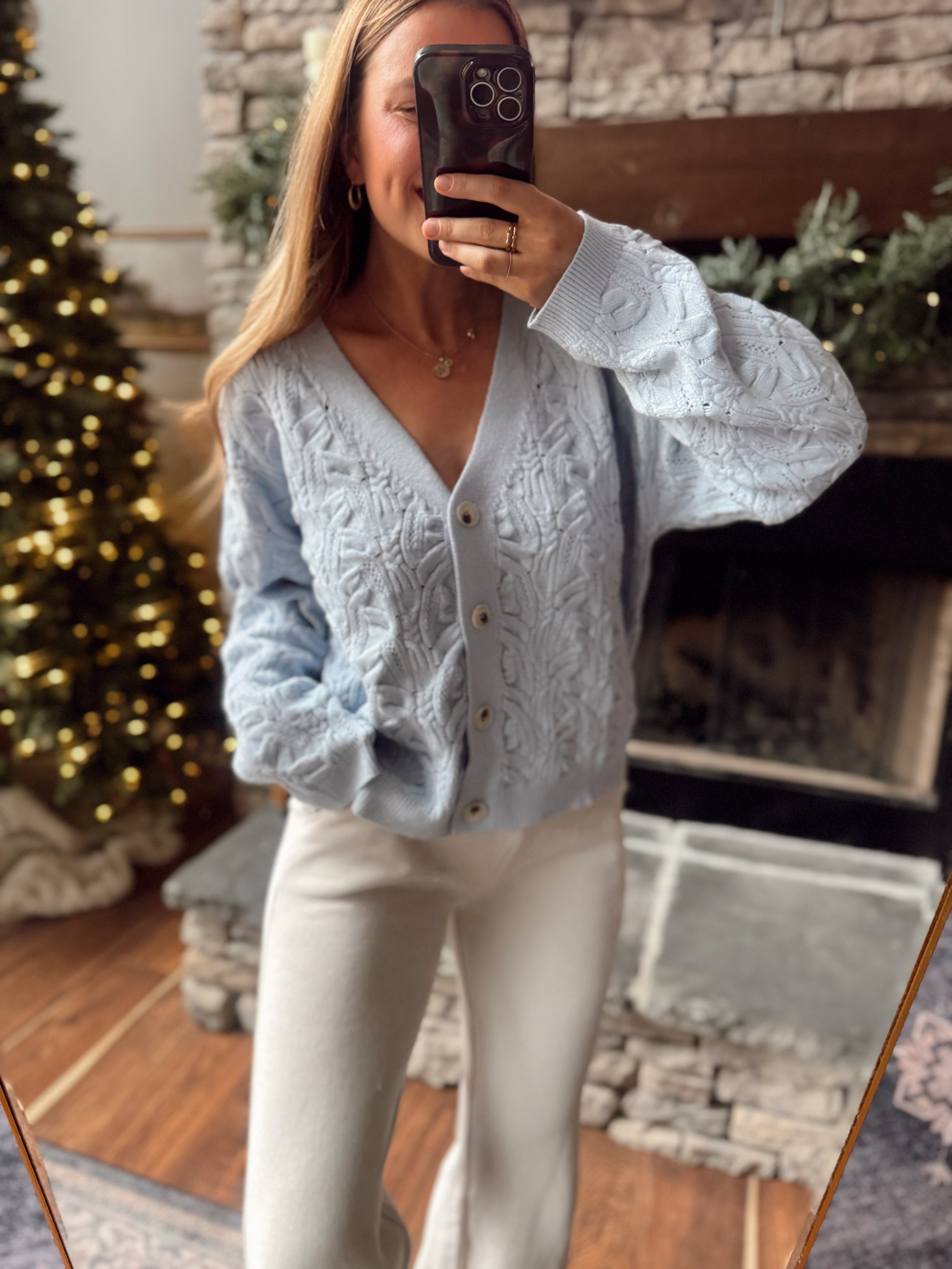 Lavender Textured Cable Knit Cardigan
