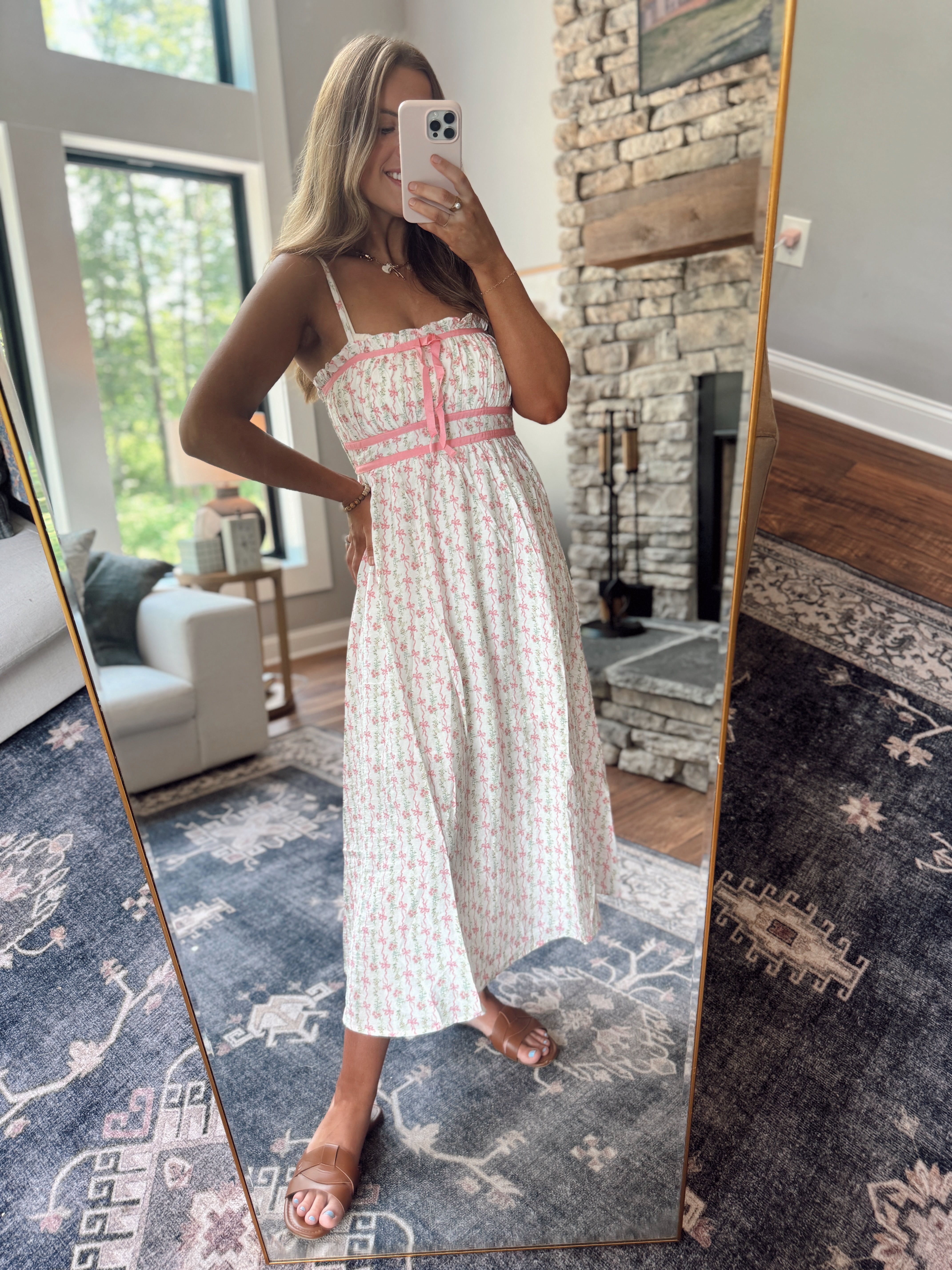 Leann Pink Floral Bow Pattern Midi