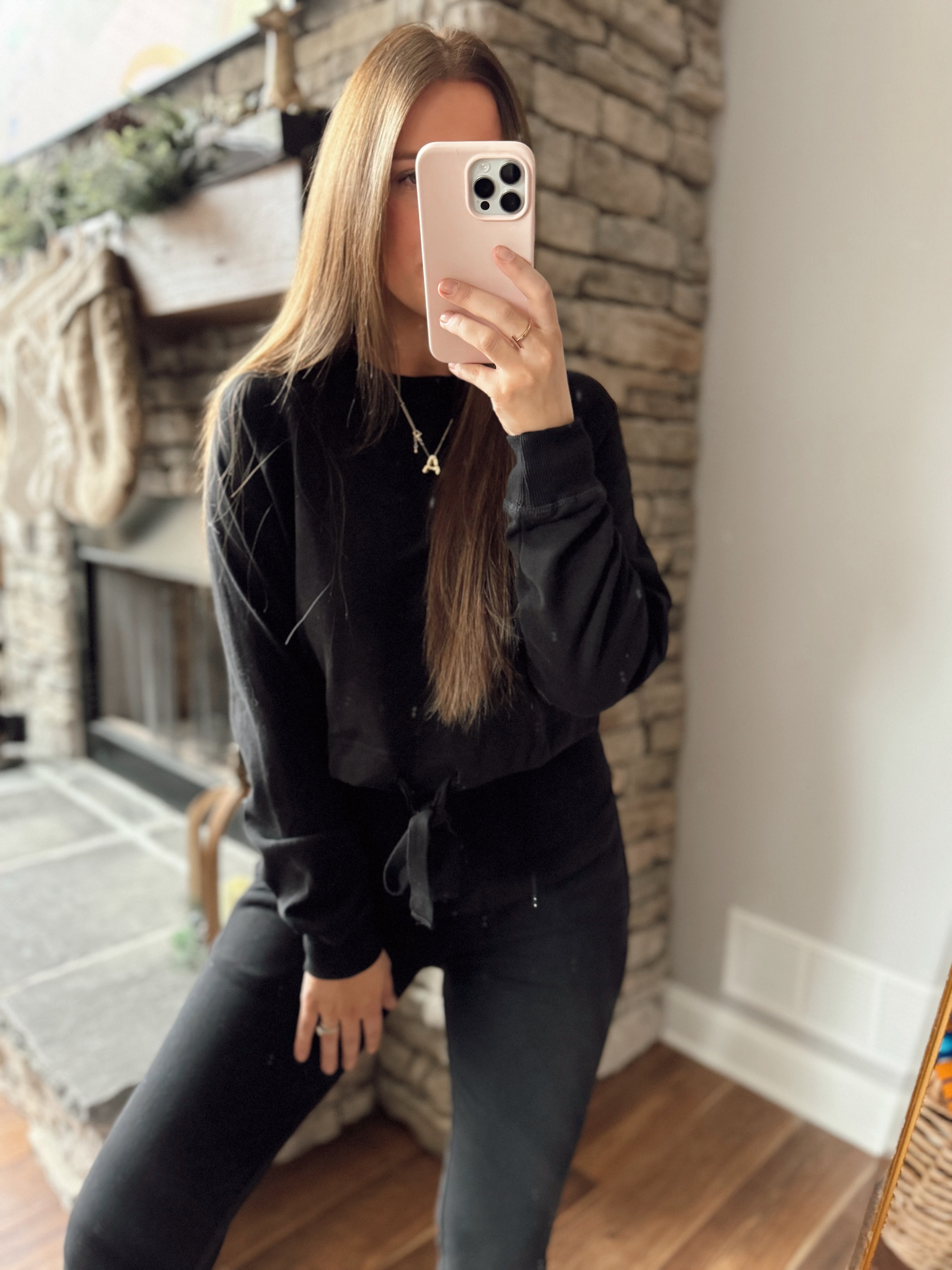 Layla Black Brushed Waist Tie Crew