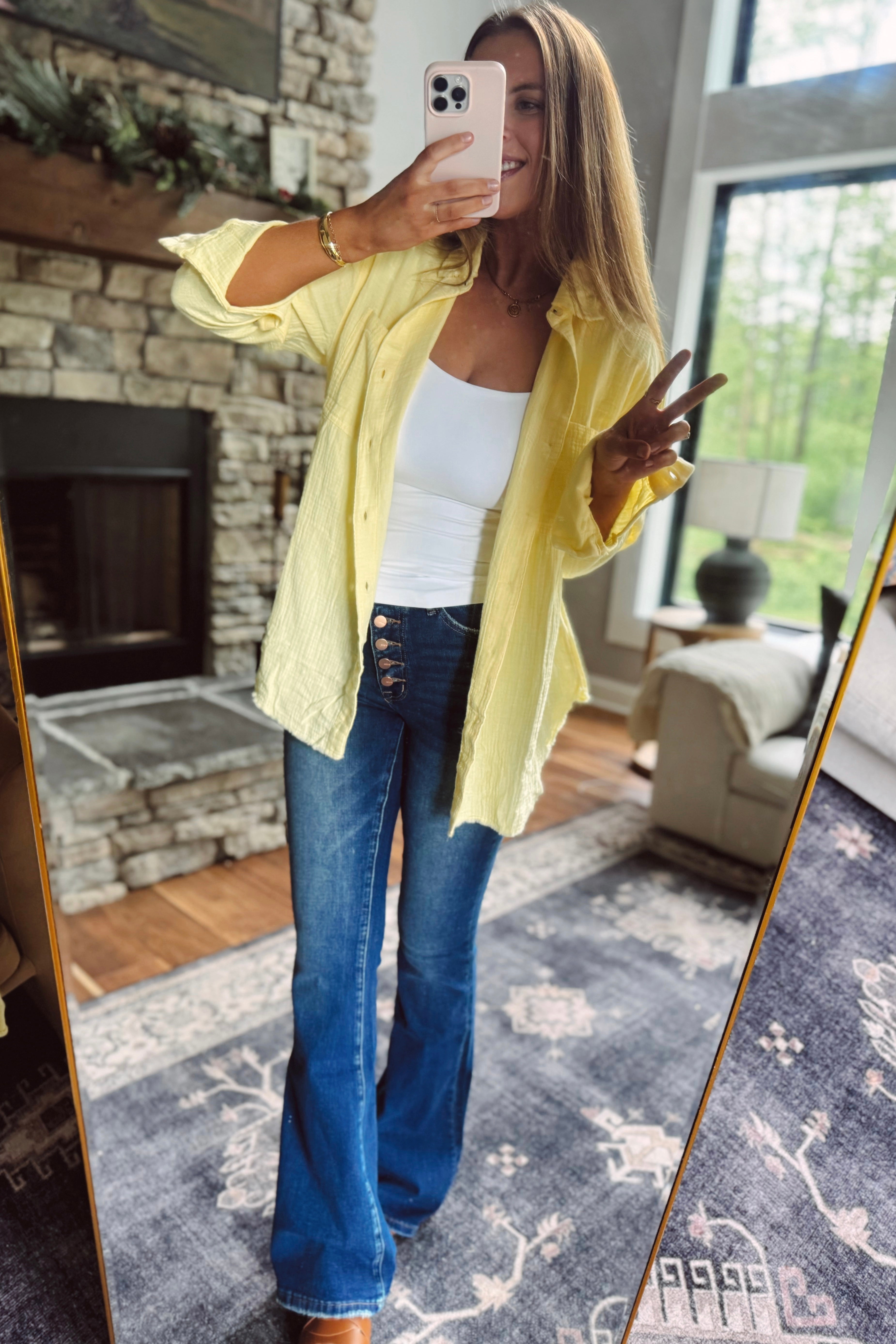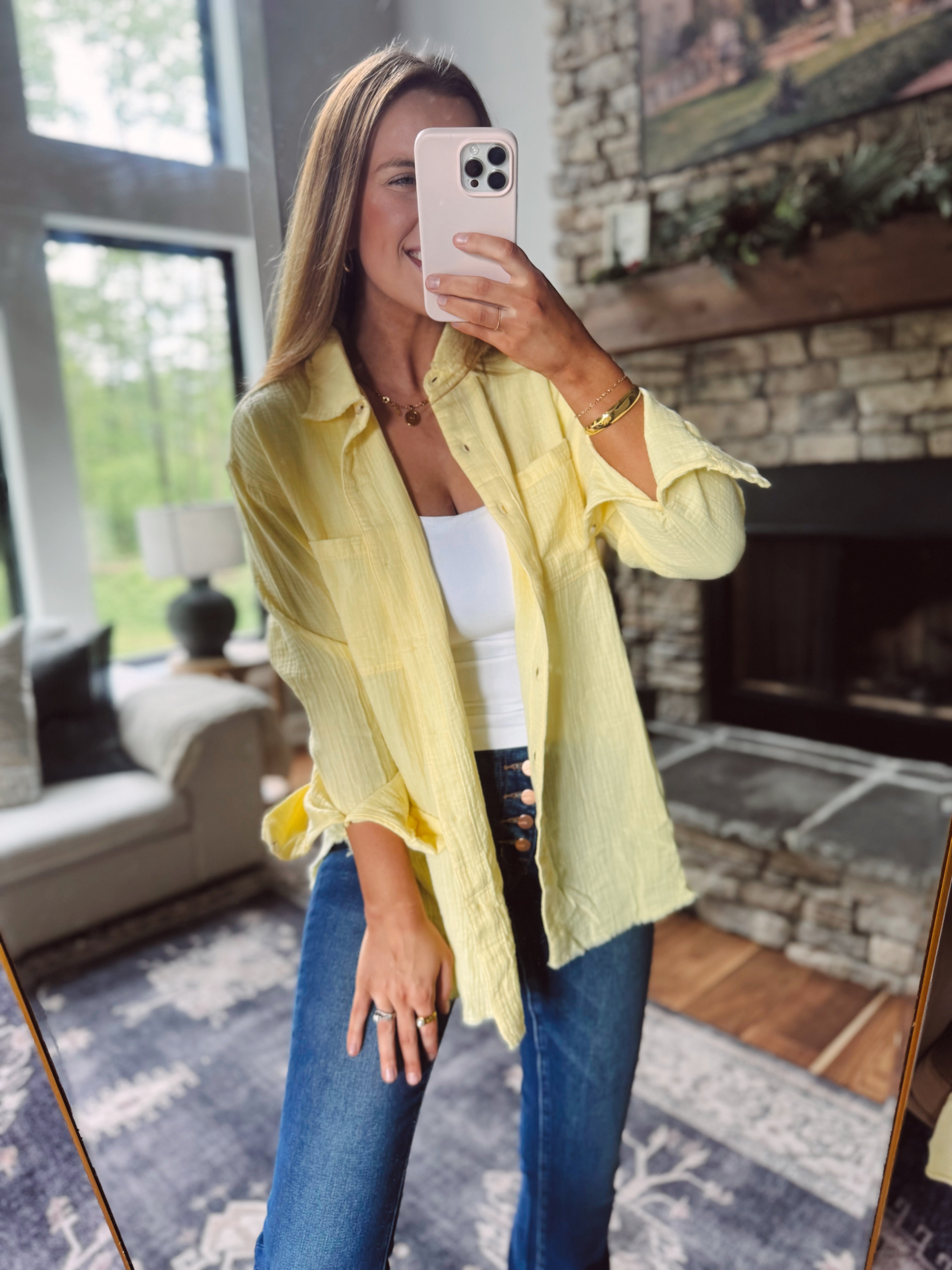 Lemon Aira Gauze Button Down Shirt
