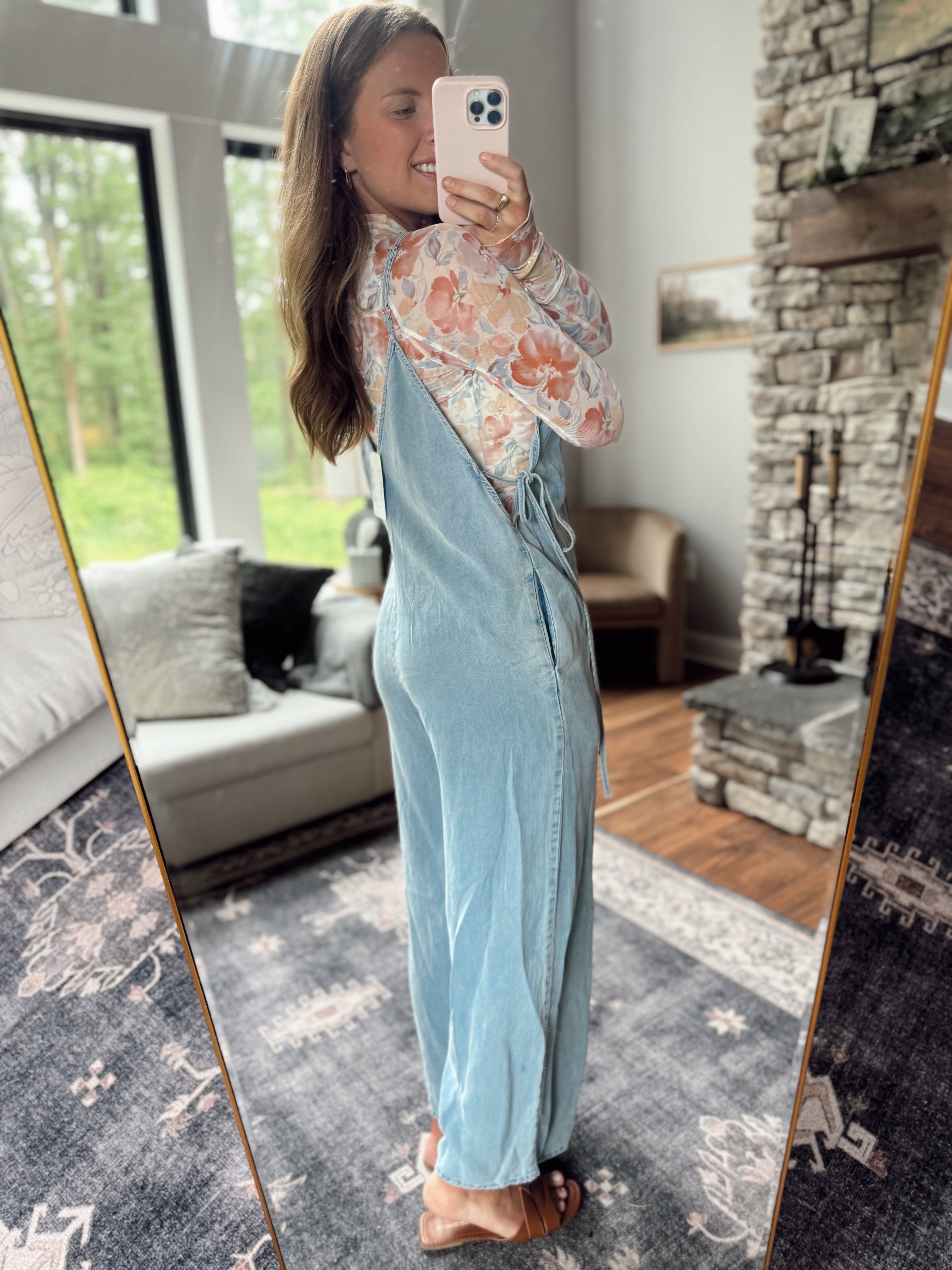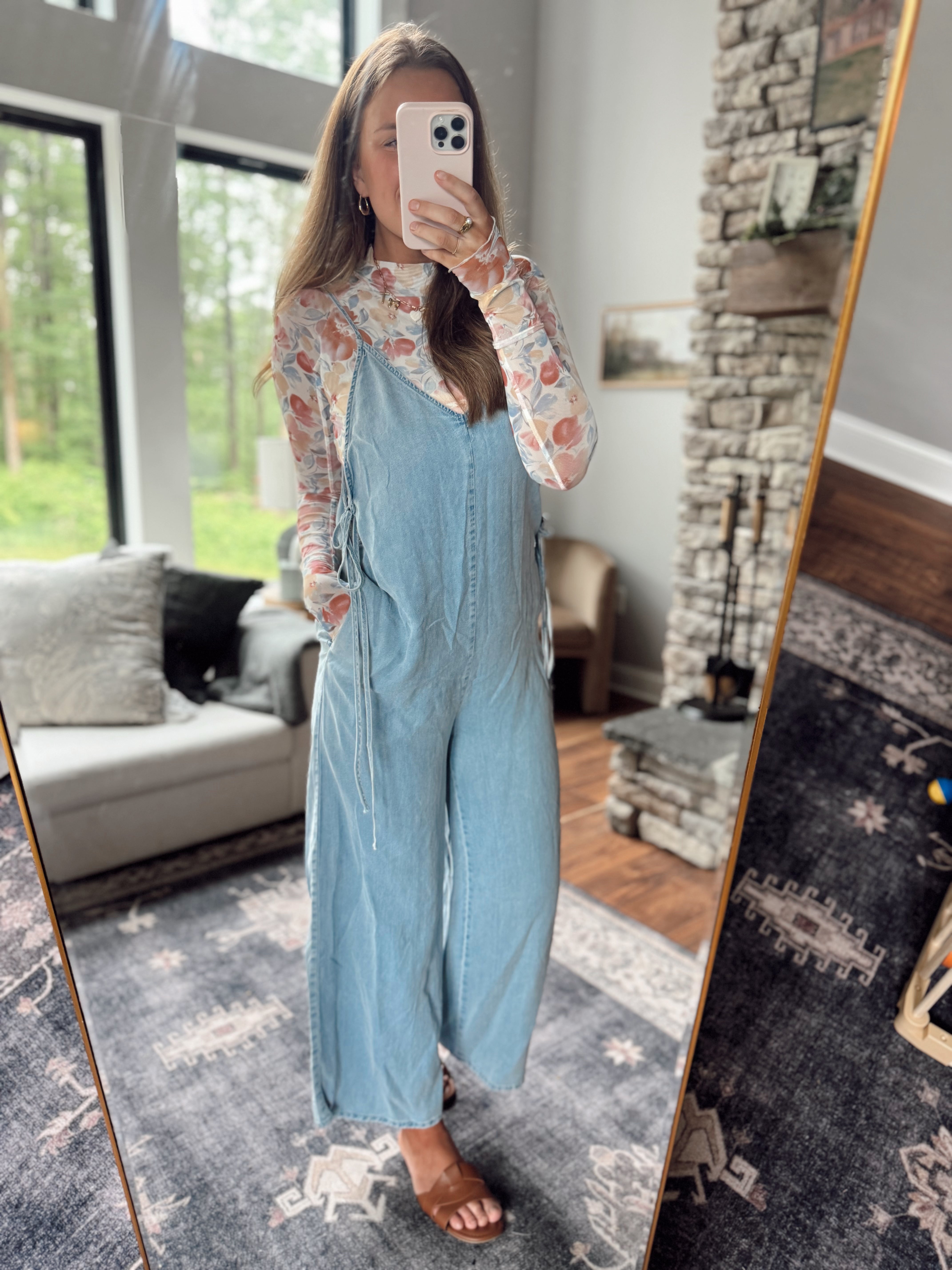 Light Denim Wide Leg Tencel Jumpsuit