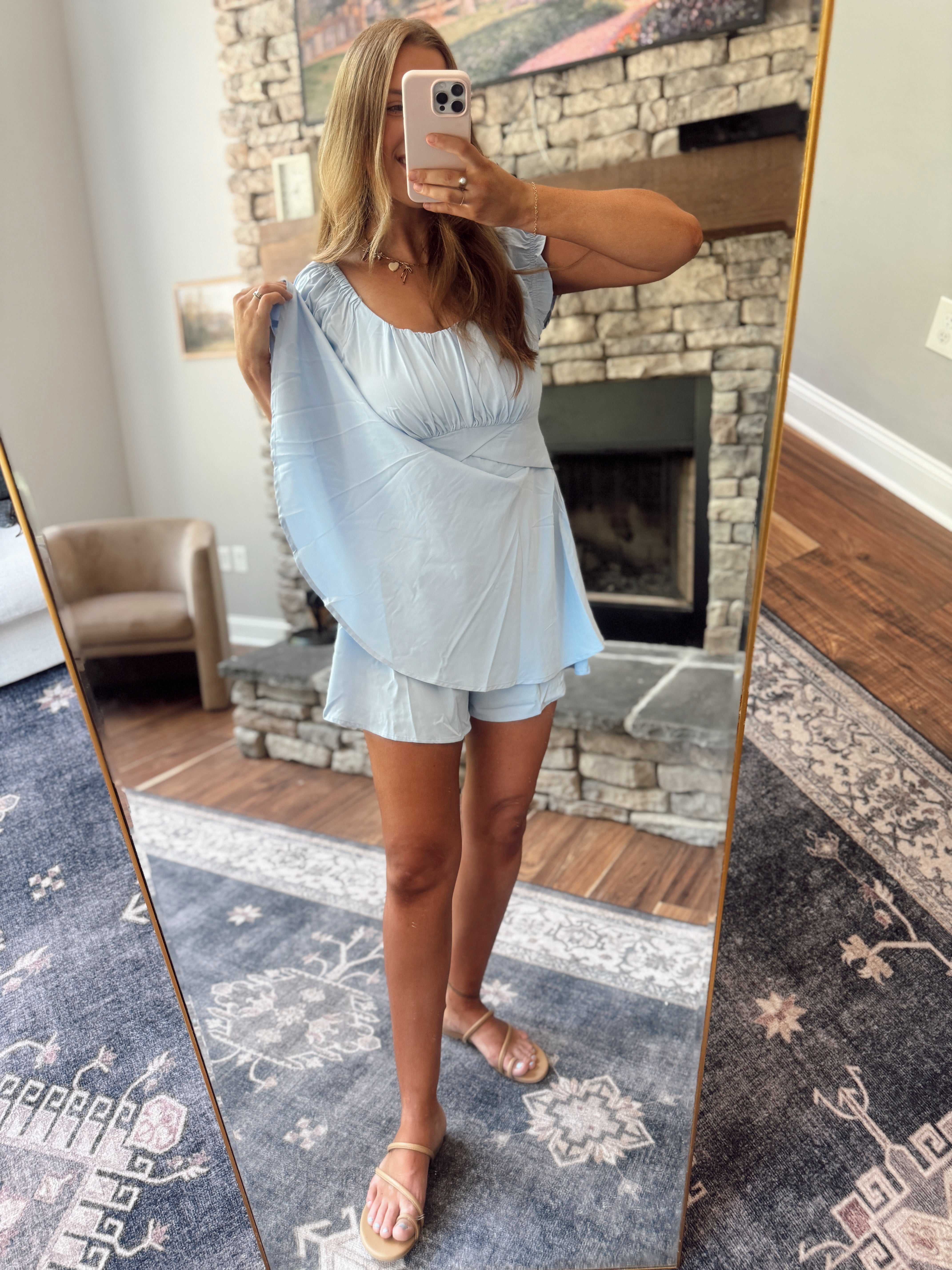 Light Blue Pintuck Peplum Top