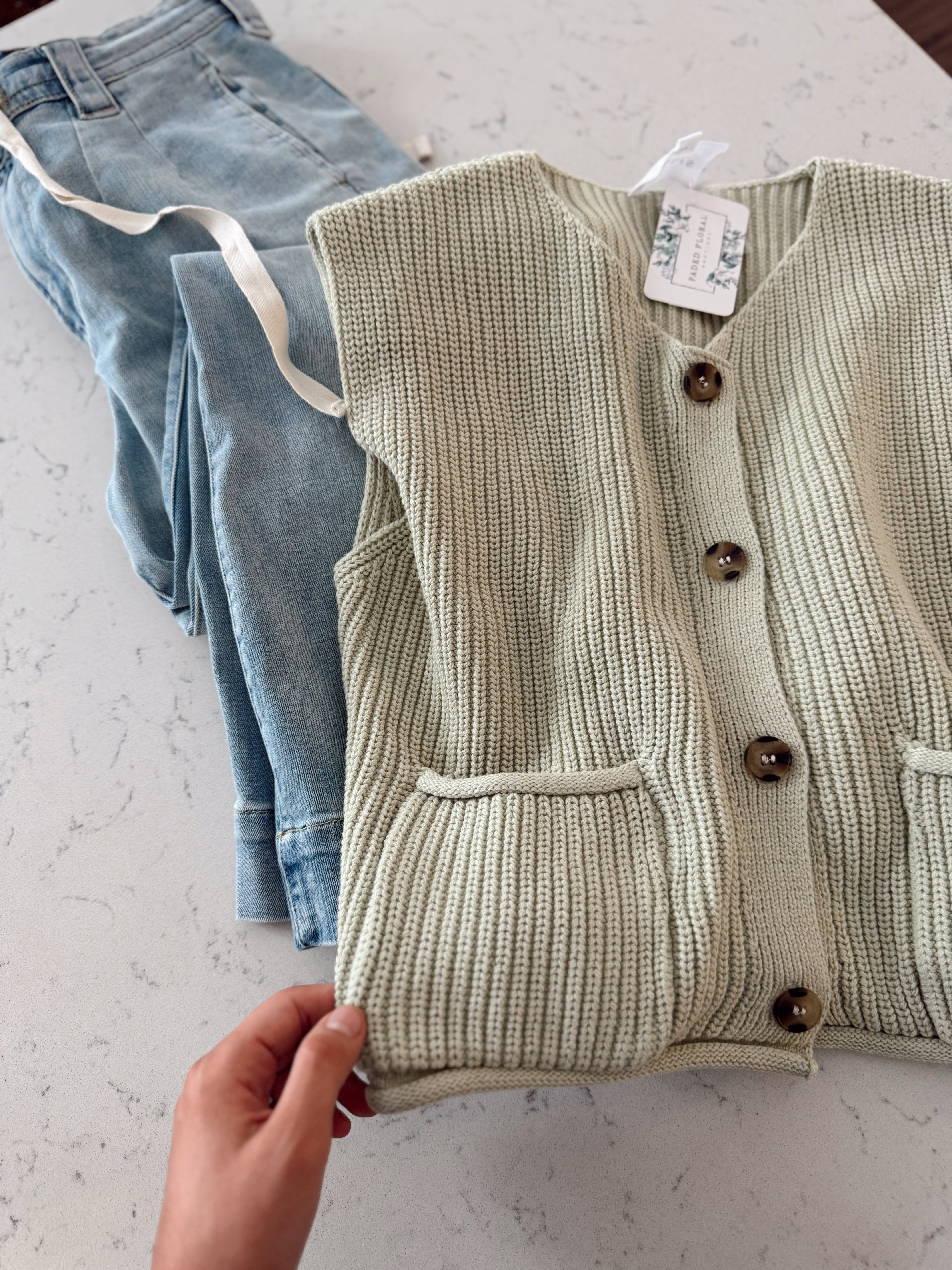 Light Green Pocket Pal Button Down Sweater Vest