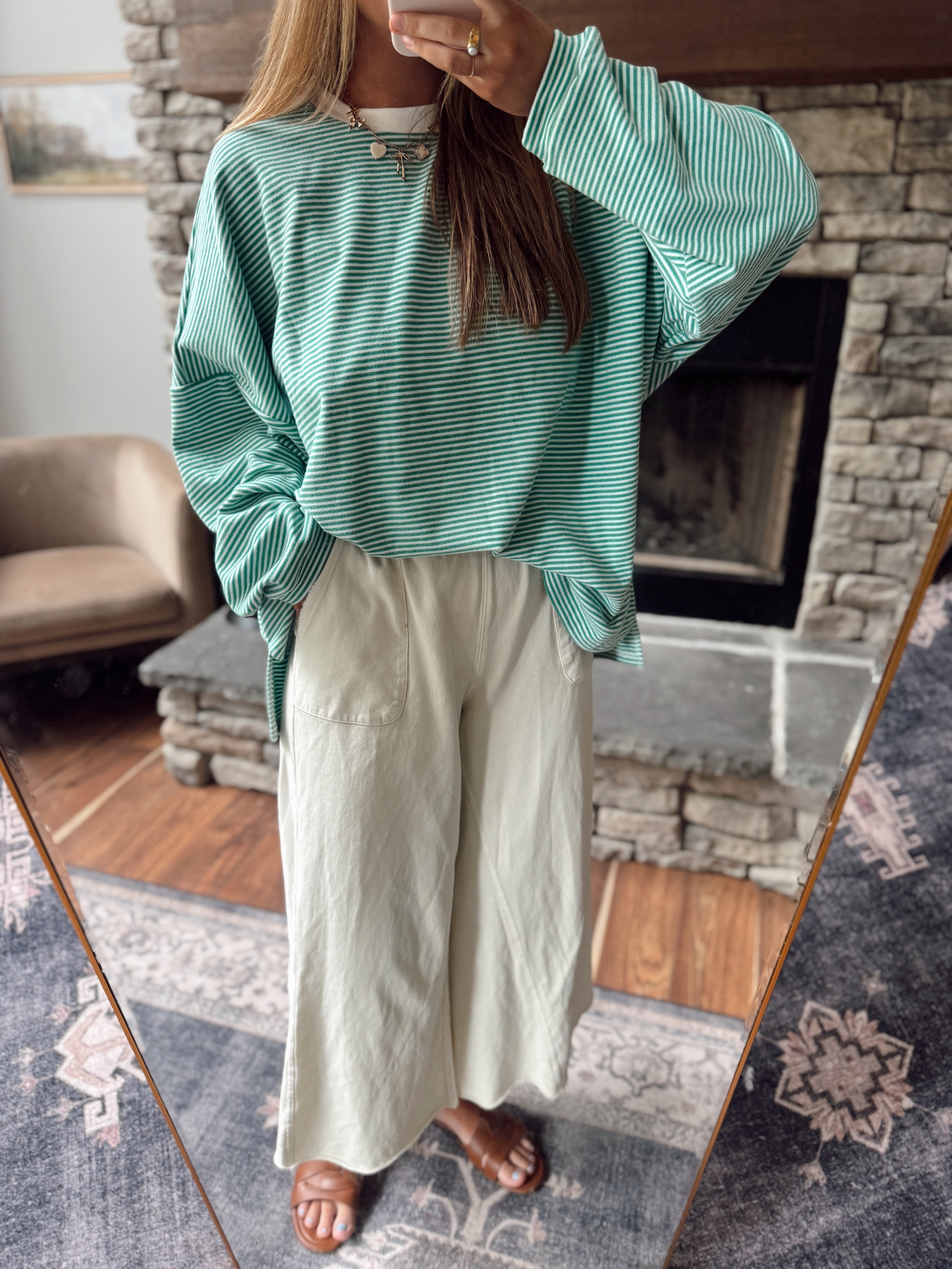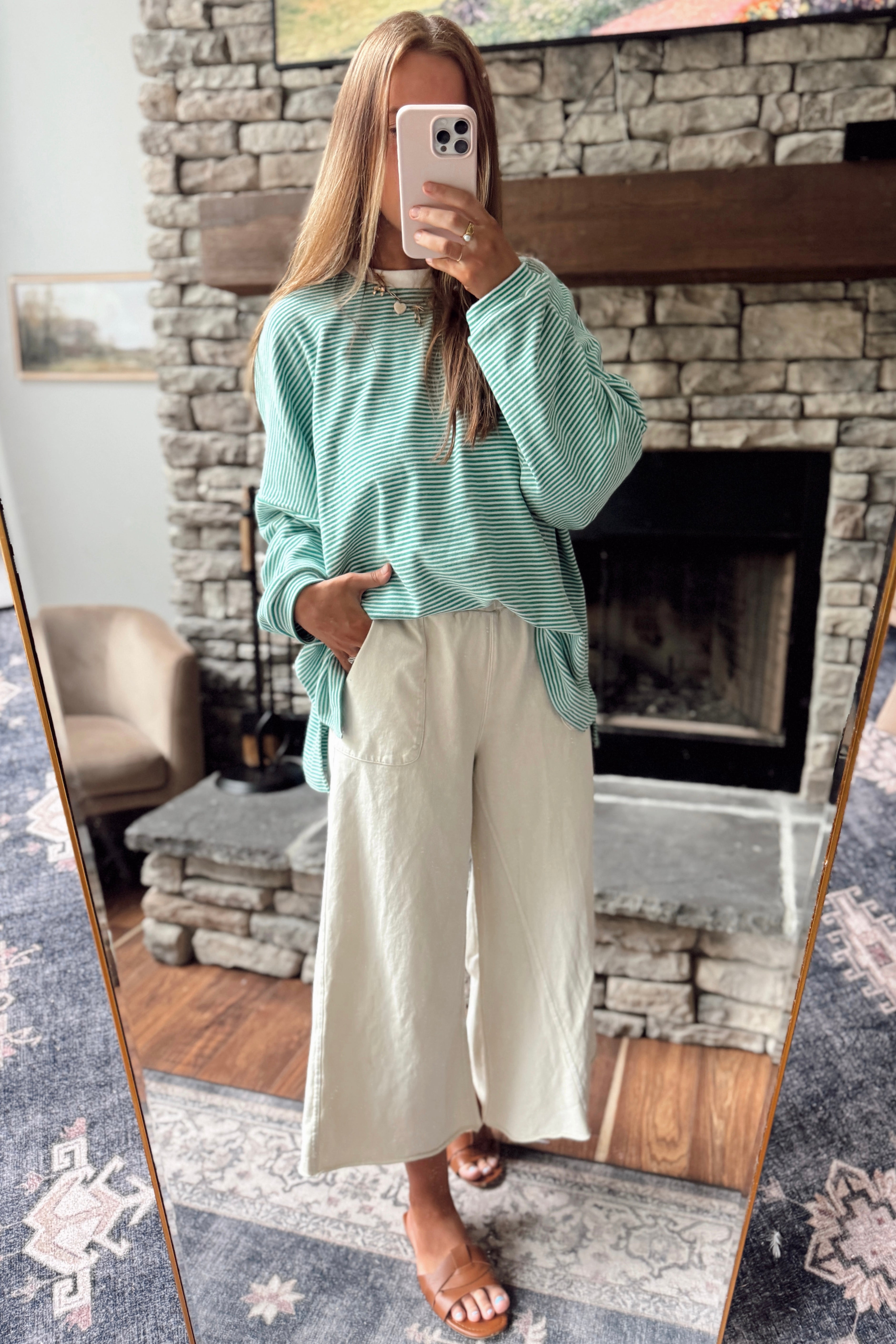 Line of Sight Lt. Mocha Stripe Wide-leg Pants