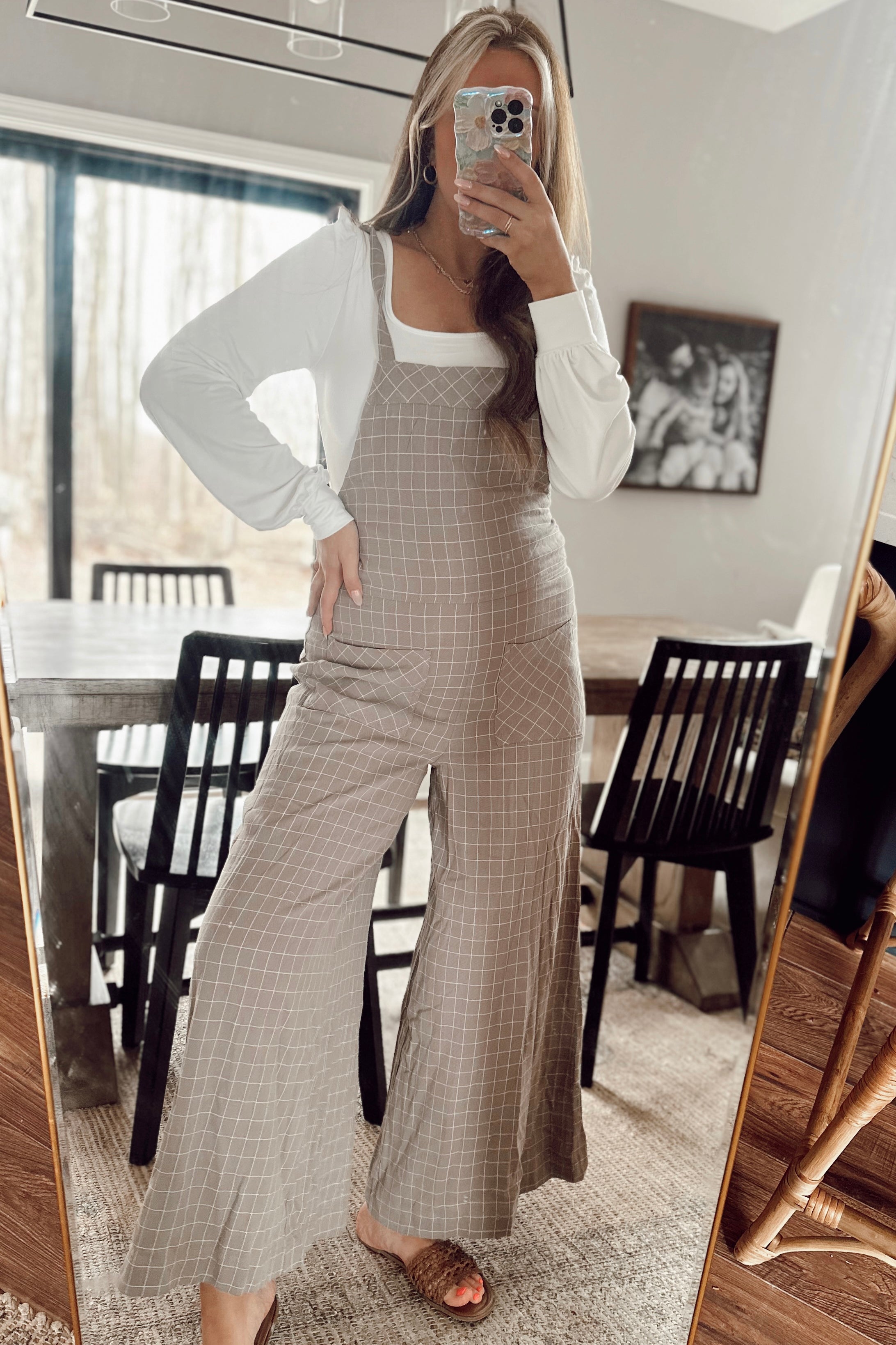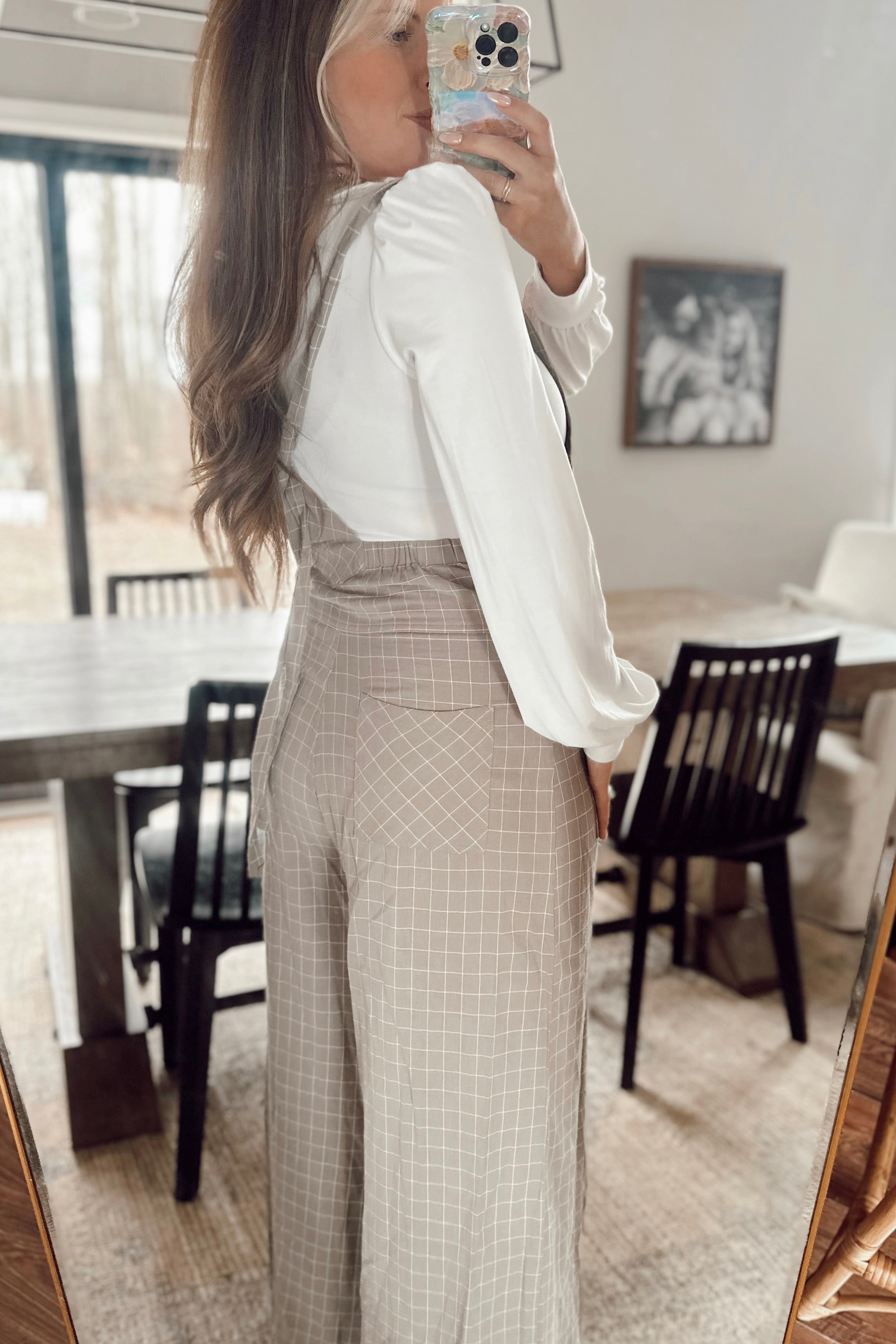 Lillian Mushroom Check Wide-Leg Jumpsuit