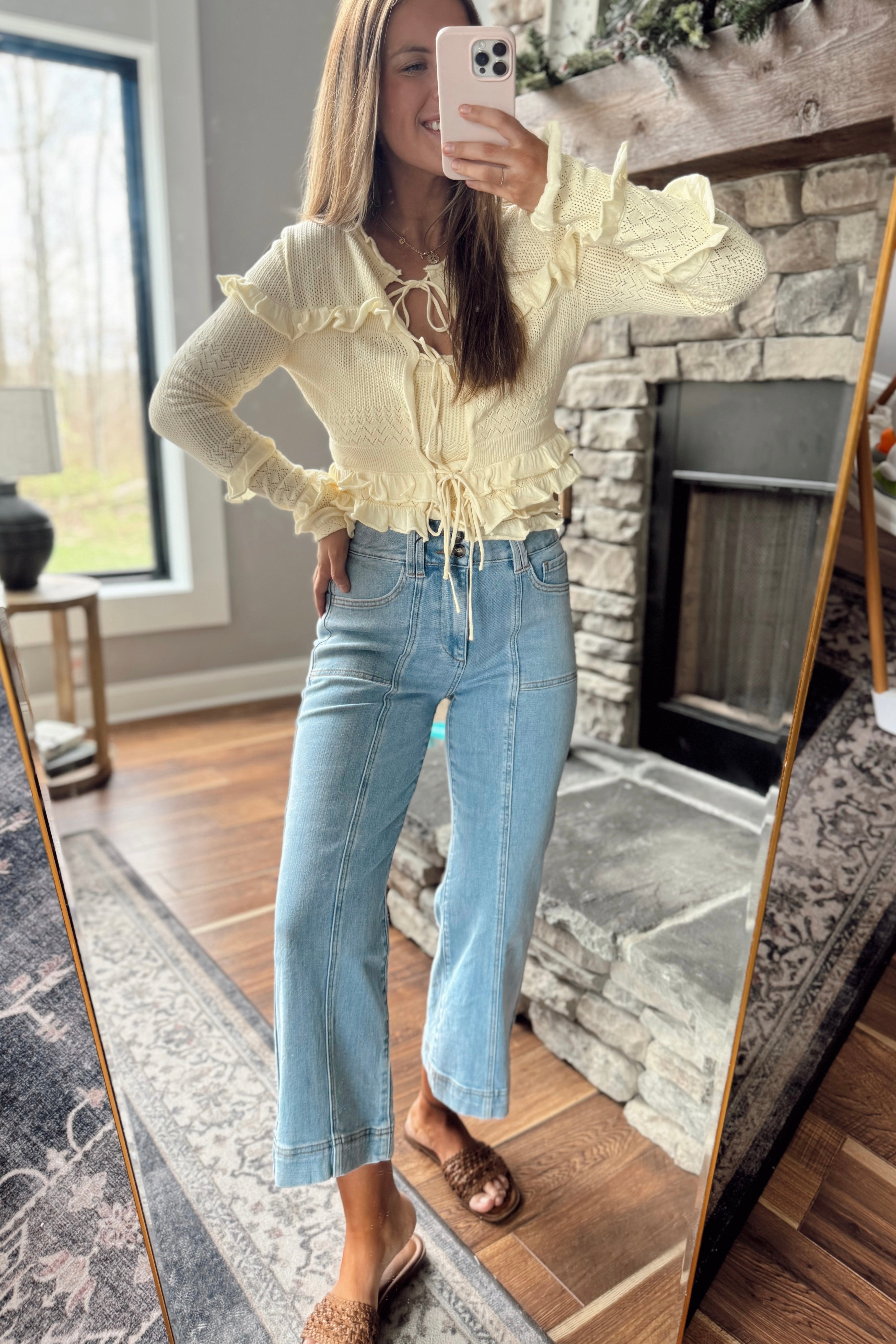 Mica Light Super HR Wide Crop Seam Detailing Denim