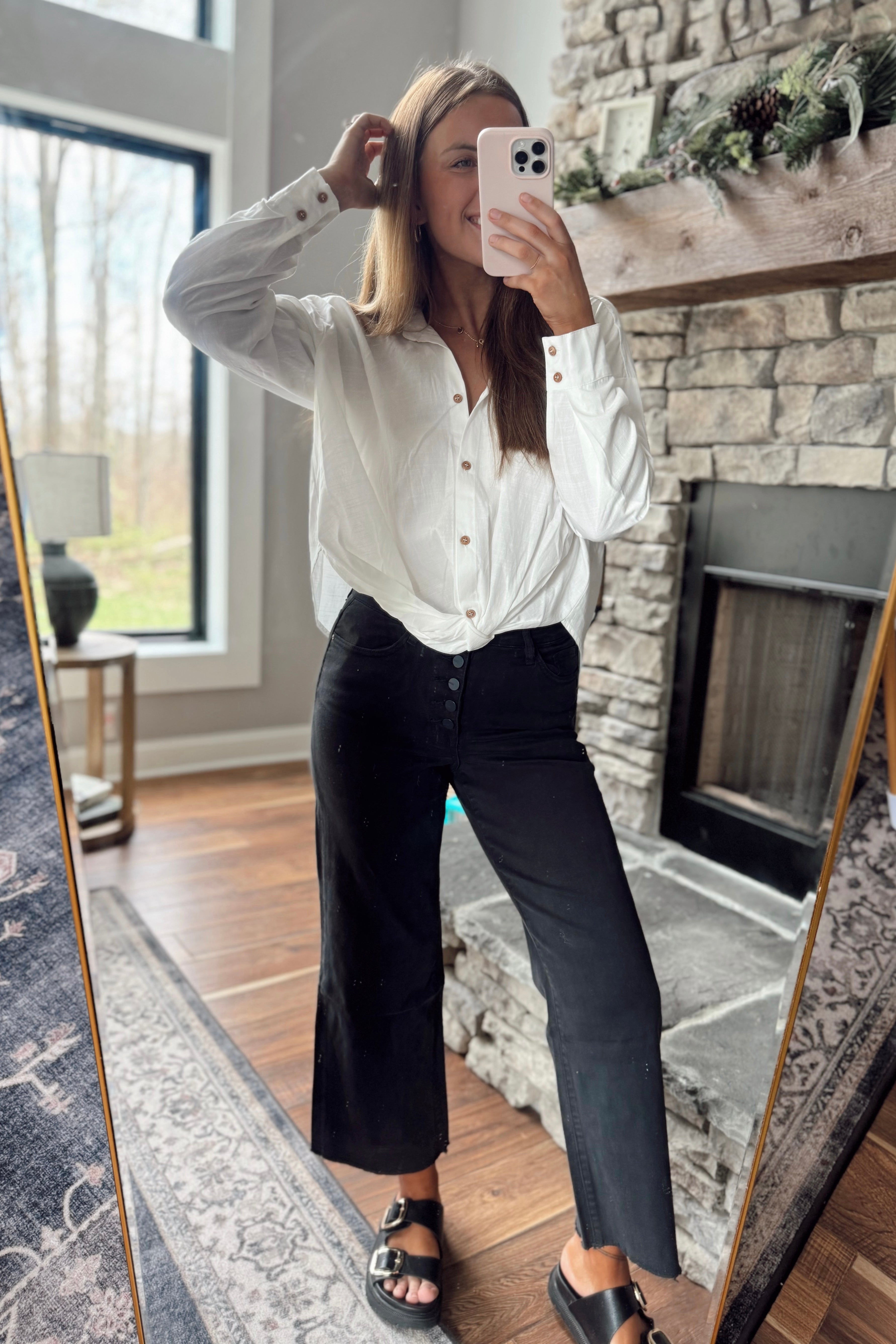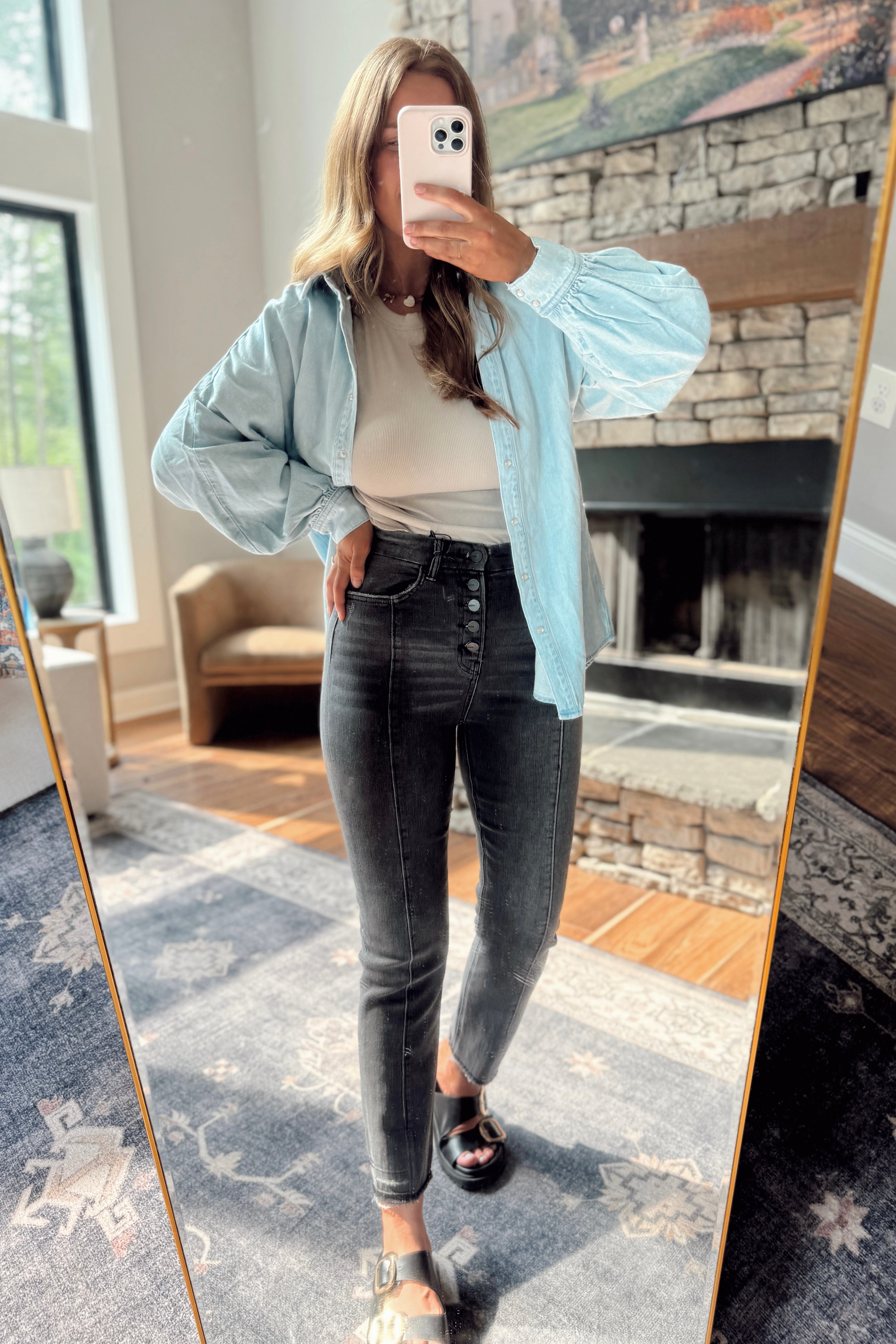 Mica Black Super HR Slim Crop Button-Fly Denim