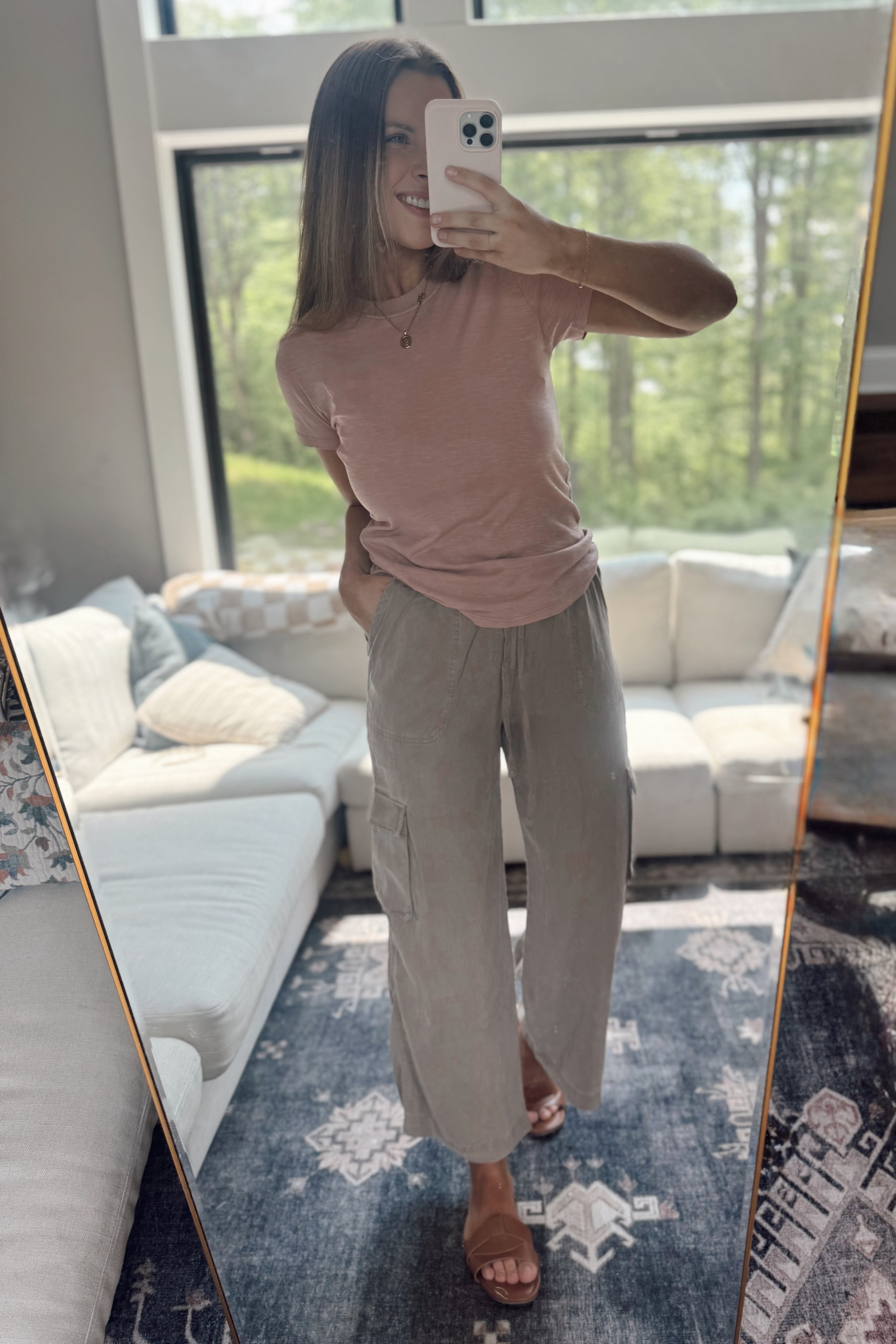 Mocha Cargo Craze Tencel Wide Leg Pants