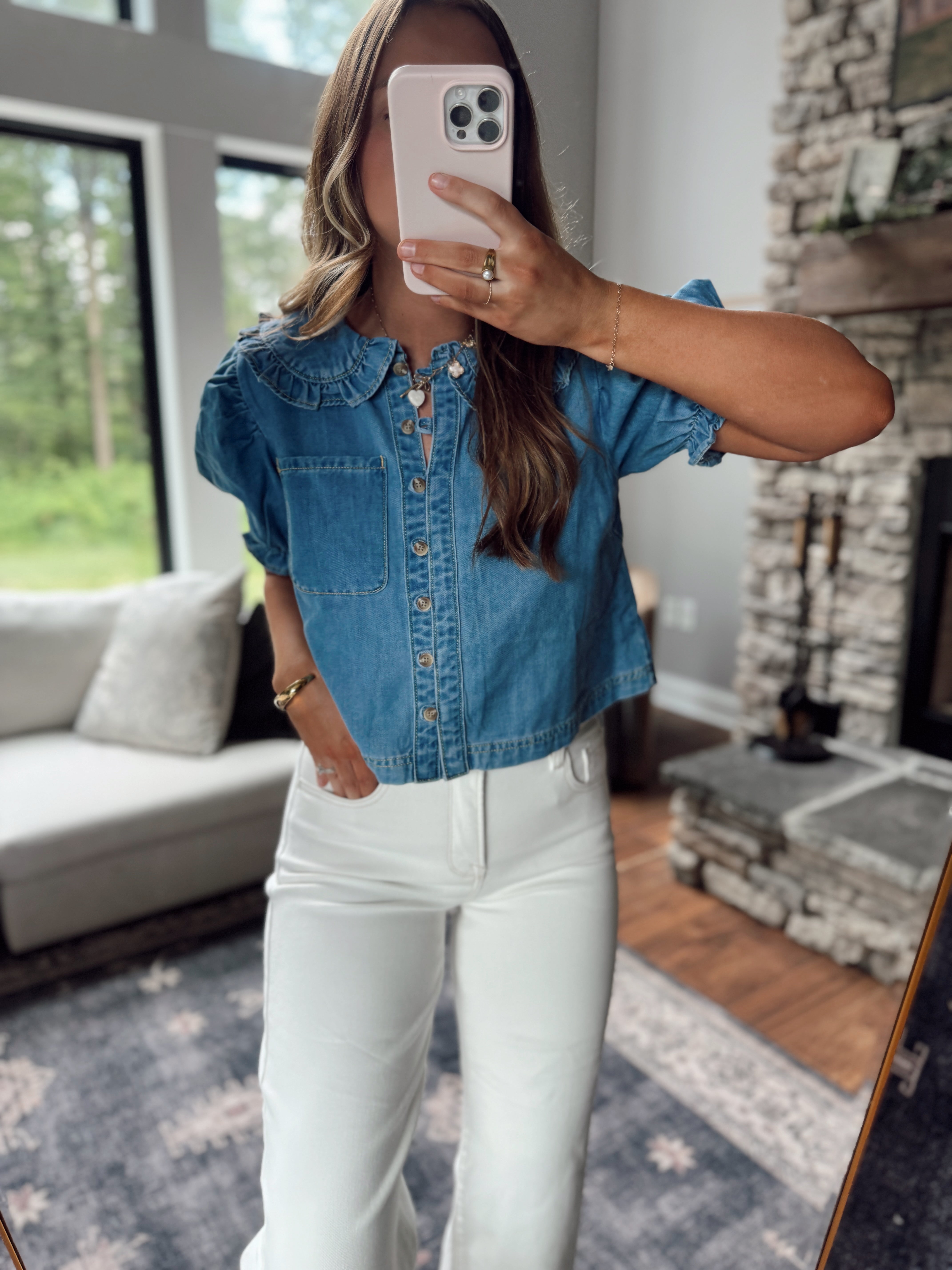 Monroe Collared Medium Denim Blouse
