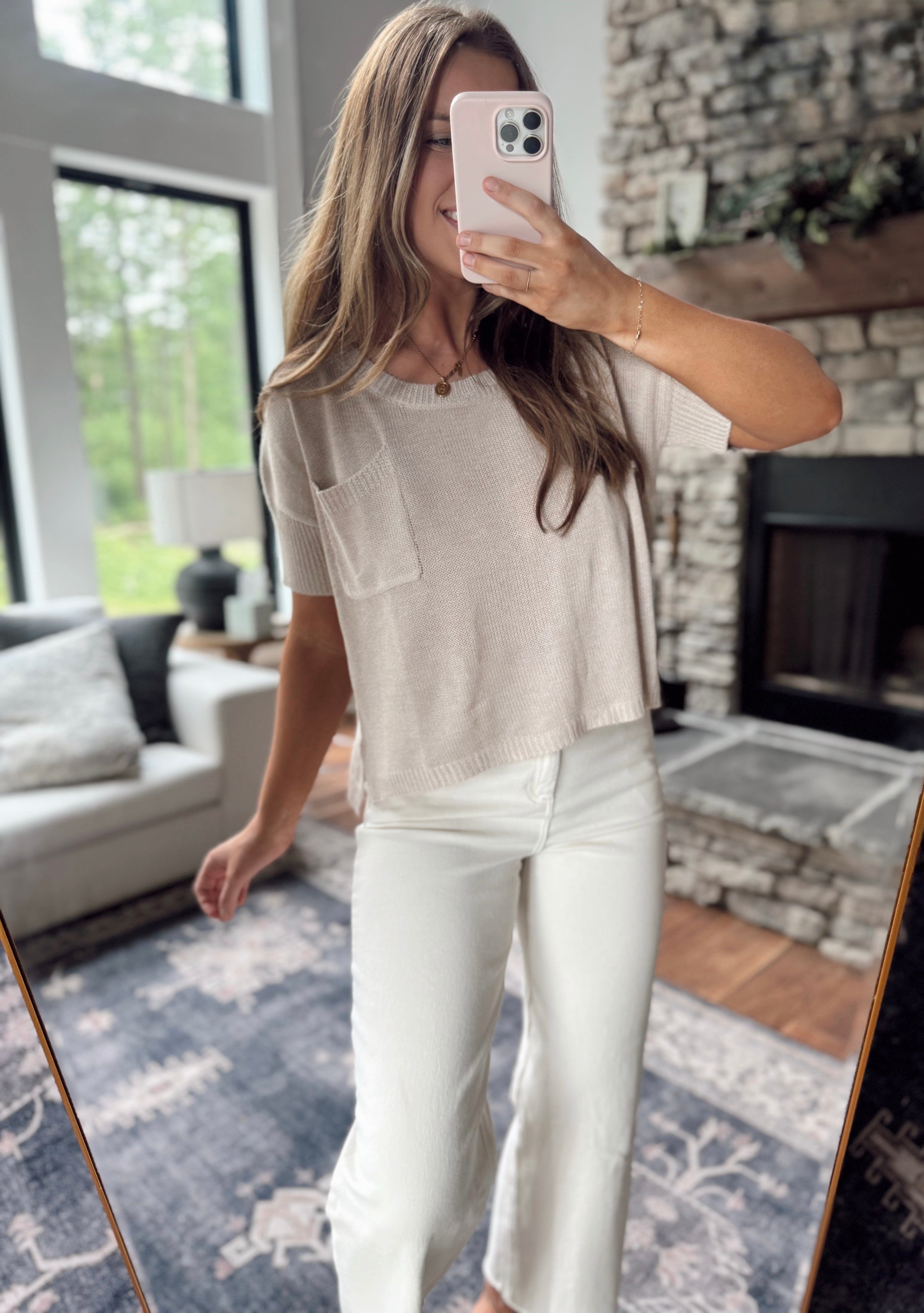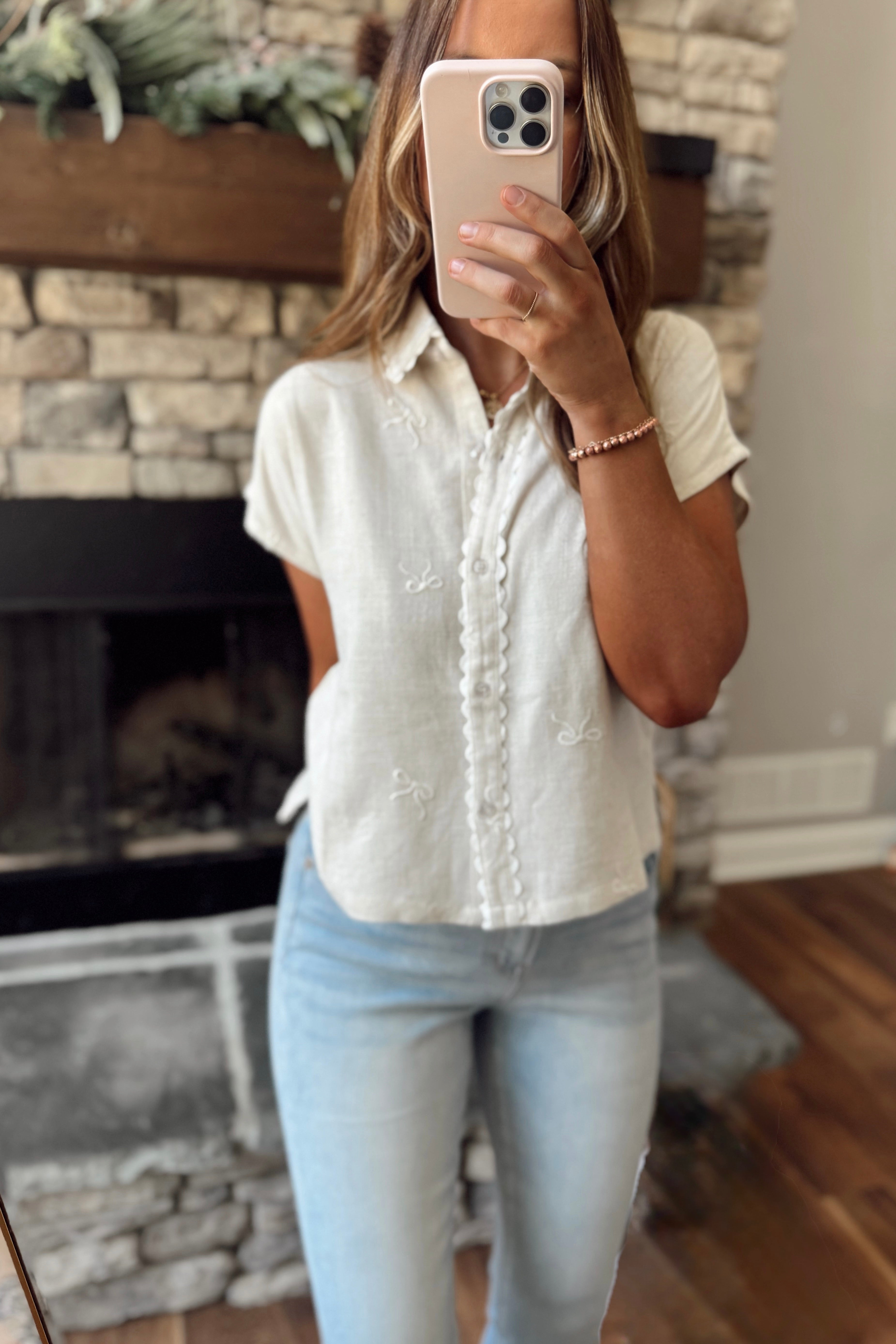 Naomi Cream Floral Lace Trim V-Neck Tee