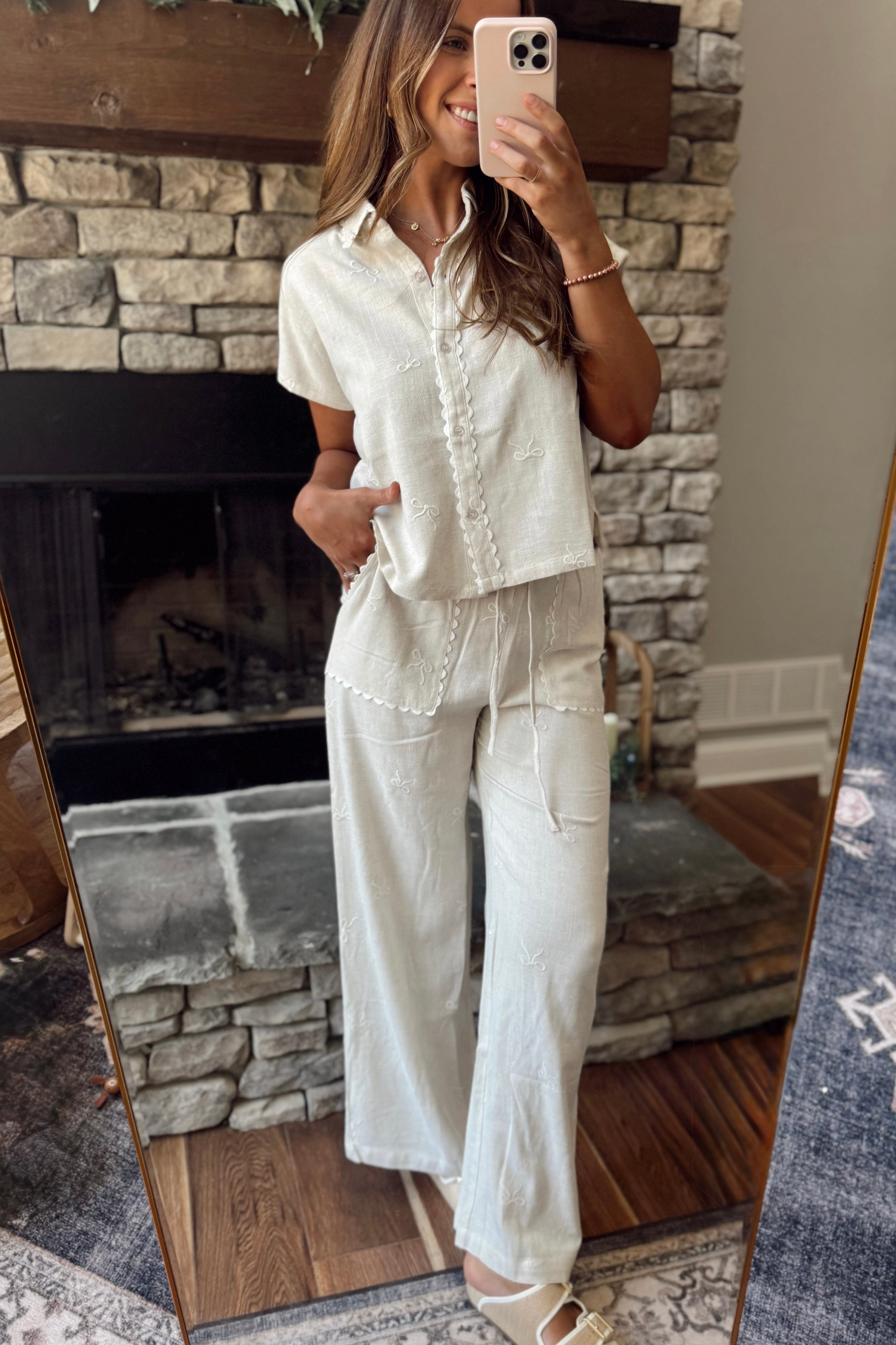 Natural Bow Bliss Soft Linen Palazzo Pants