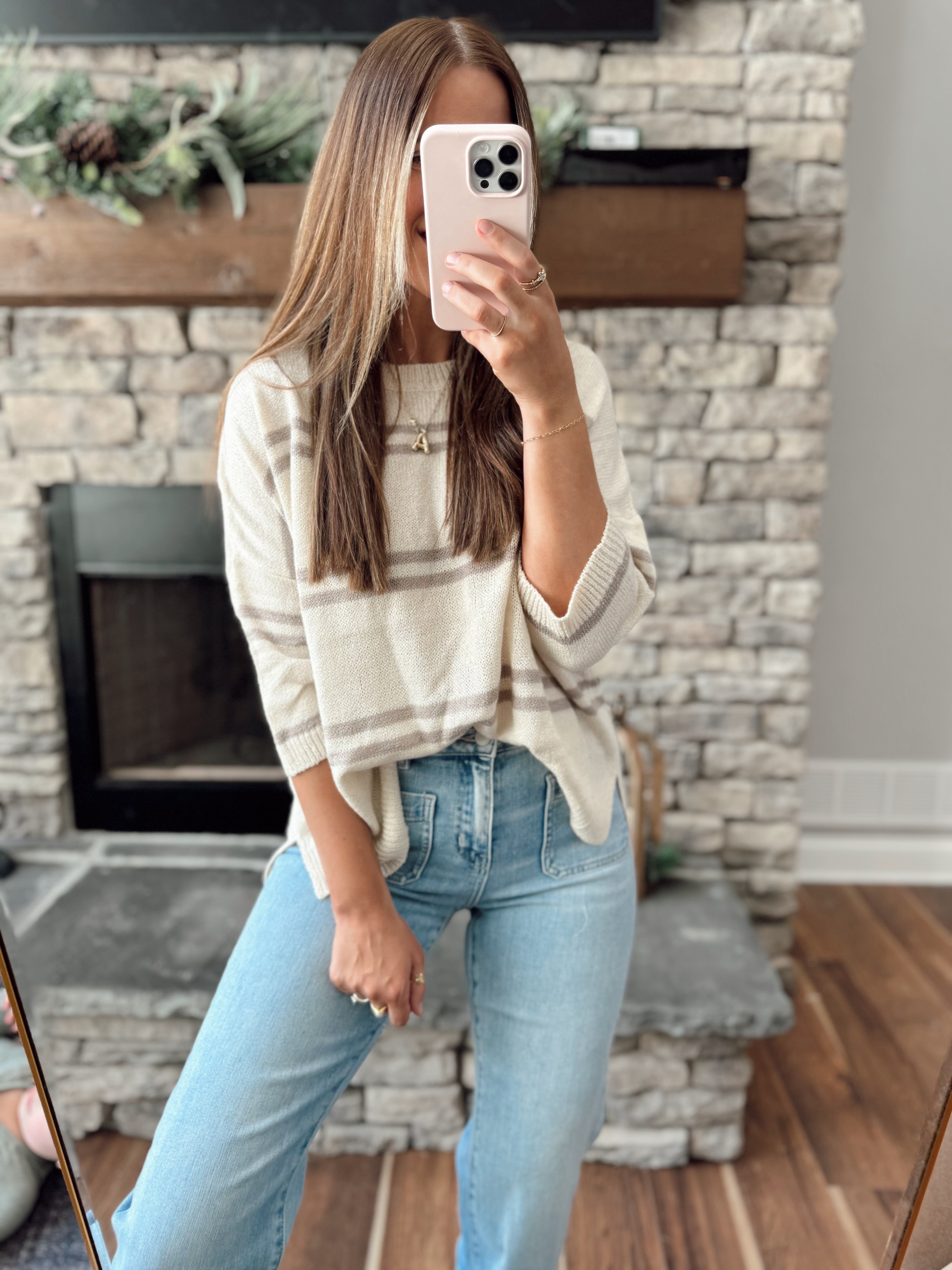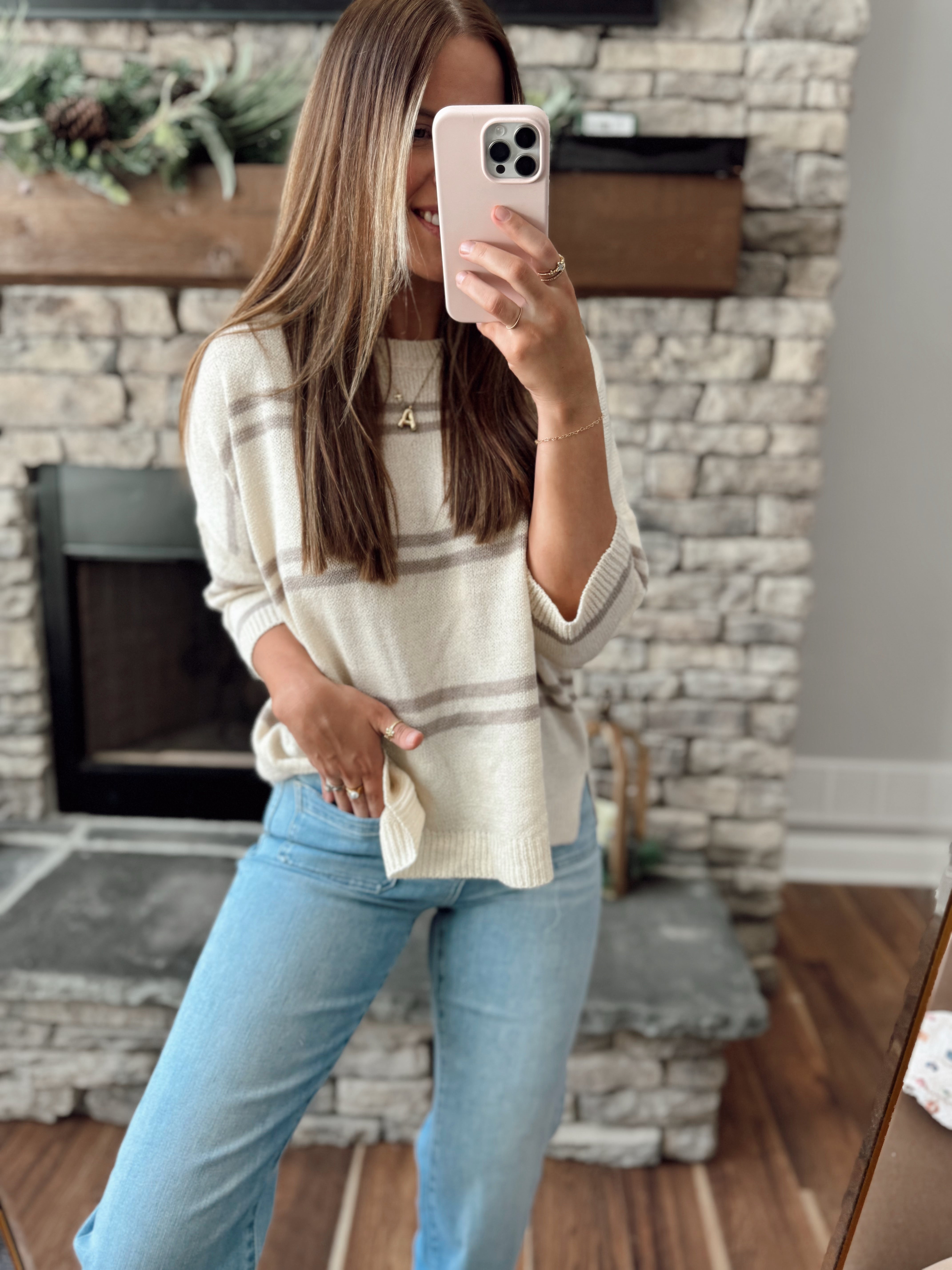 Nancy Sand Multi V Neck Striped Knit Sweater