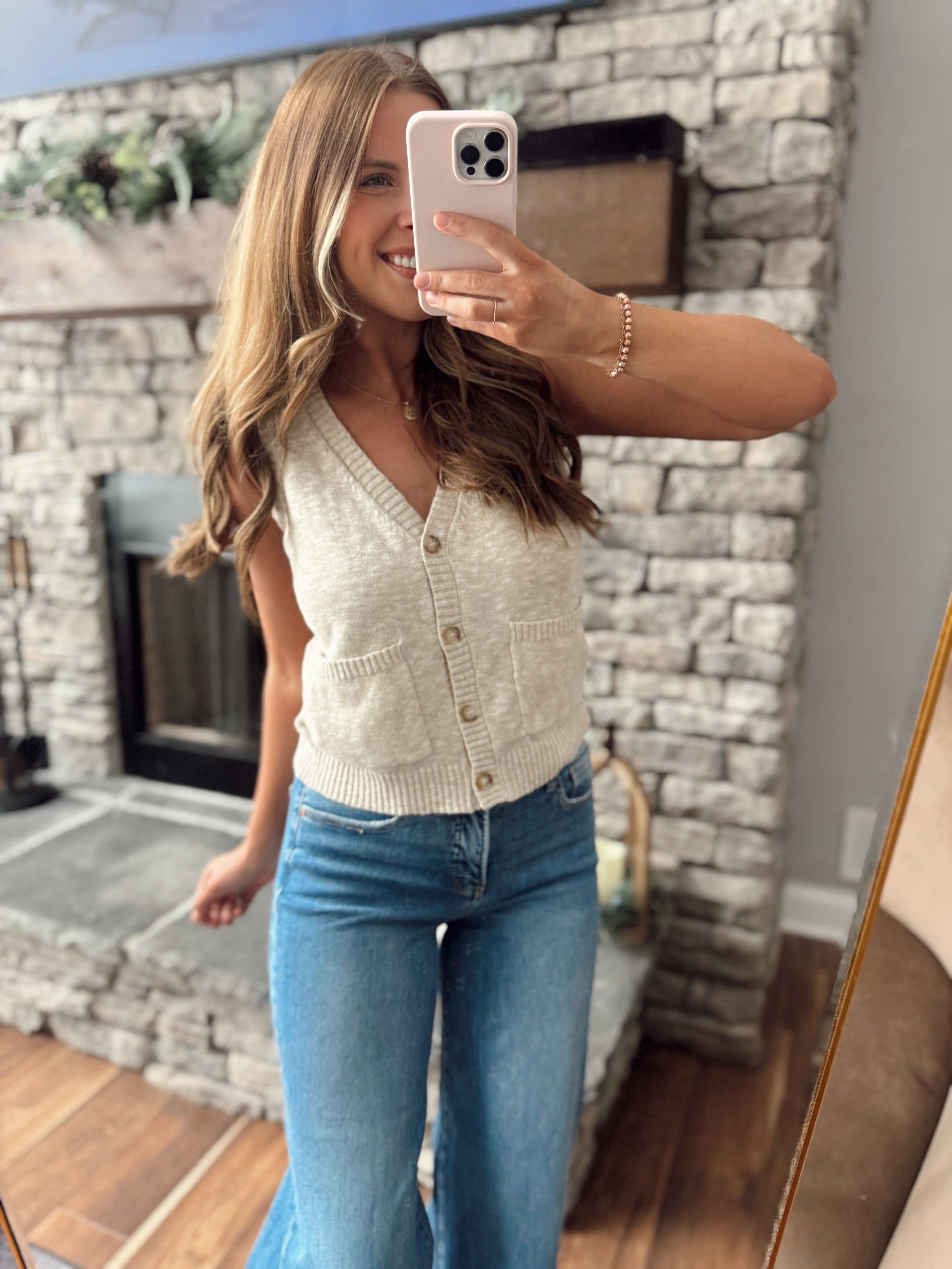 Natural V-Neck Button Down Sweater Vest