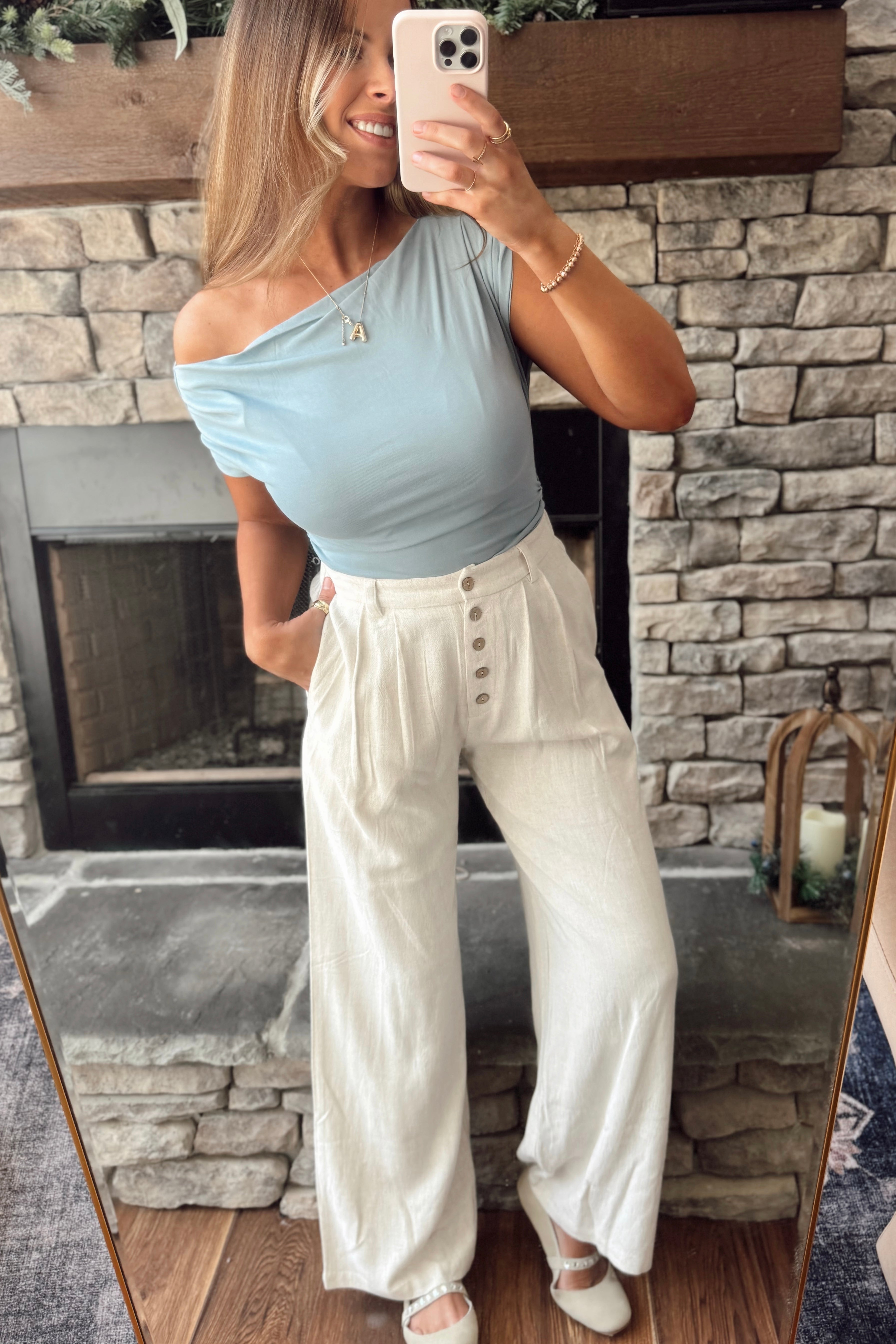 Natural Linen HR Elastic Back Pant with Buttons
