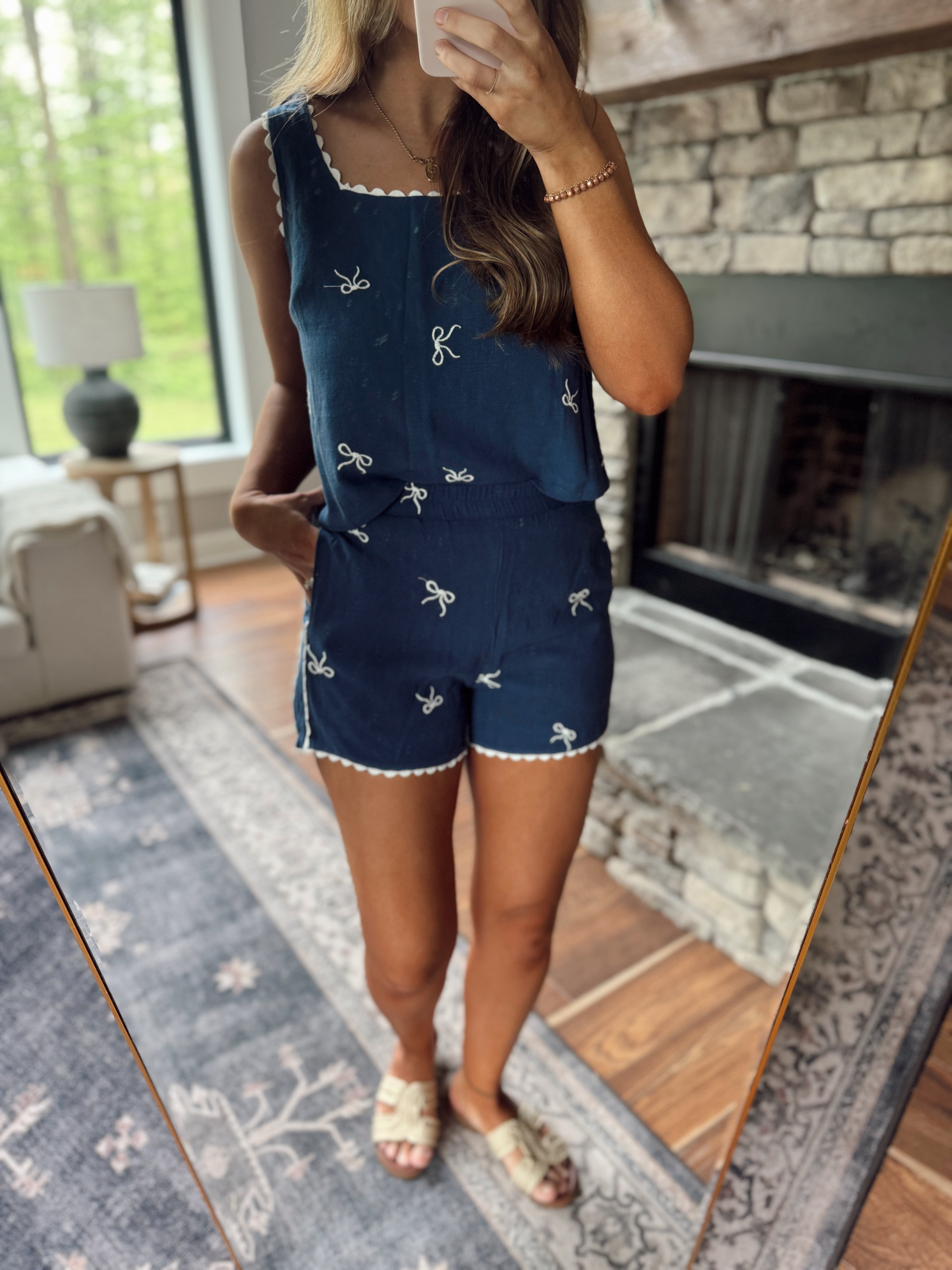 Navy Trendy Babe Linen Square Neck Button Down Sleeveless Top