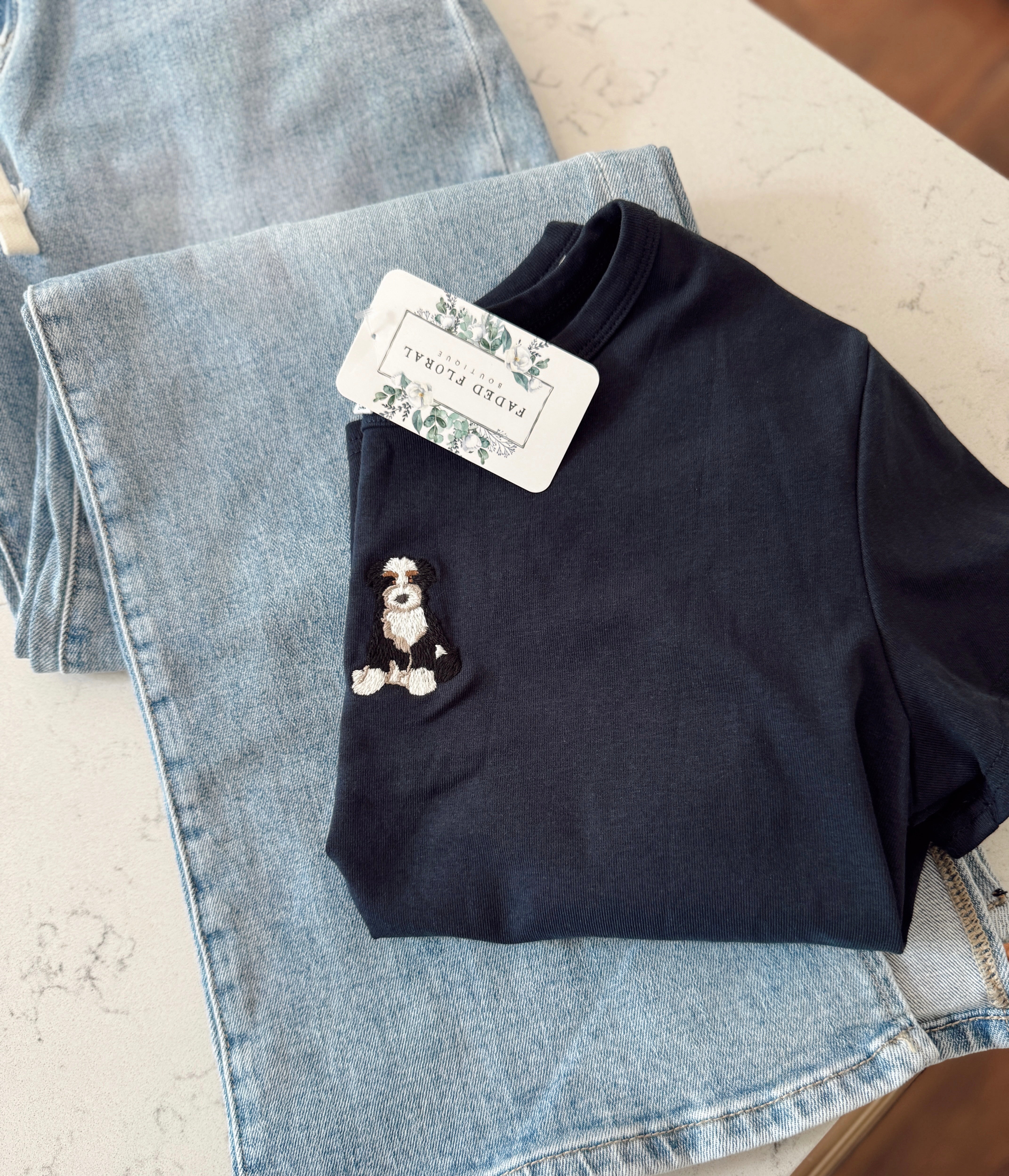 Navy Teddy Bear Embroidered Round Neck Baby Tee