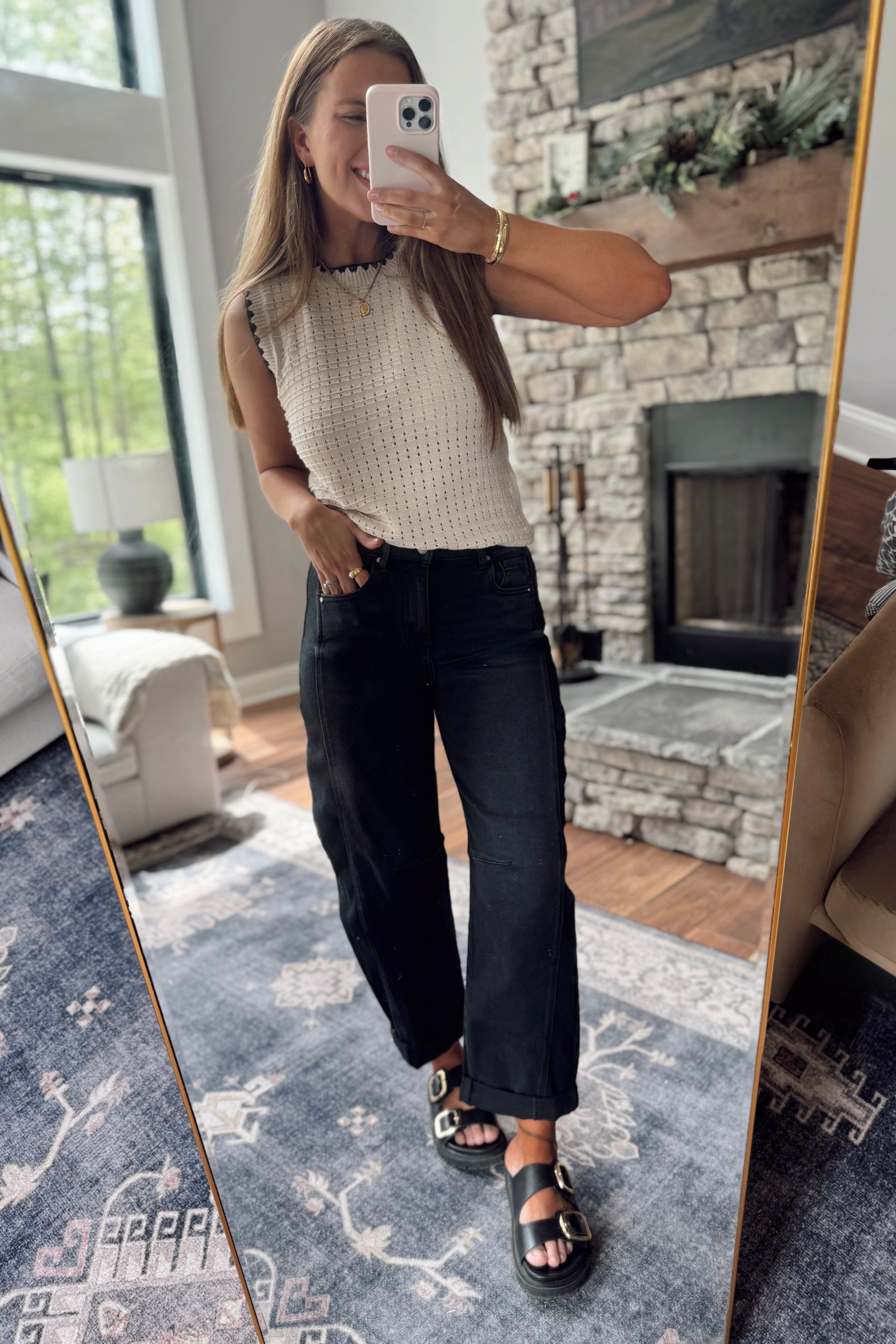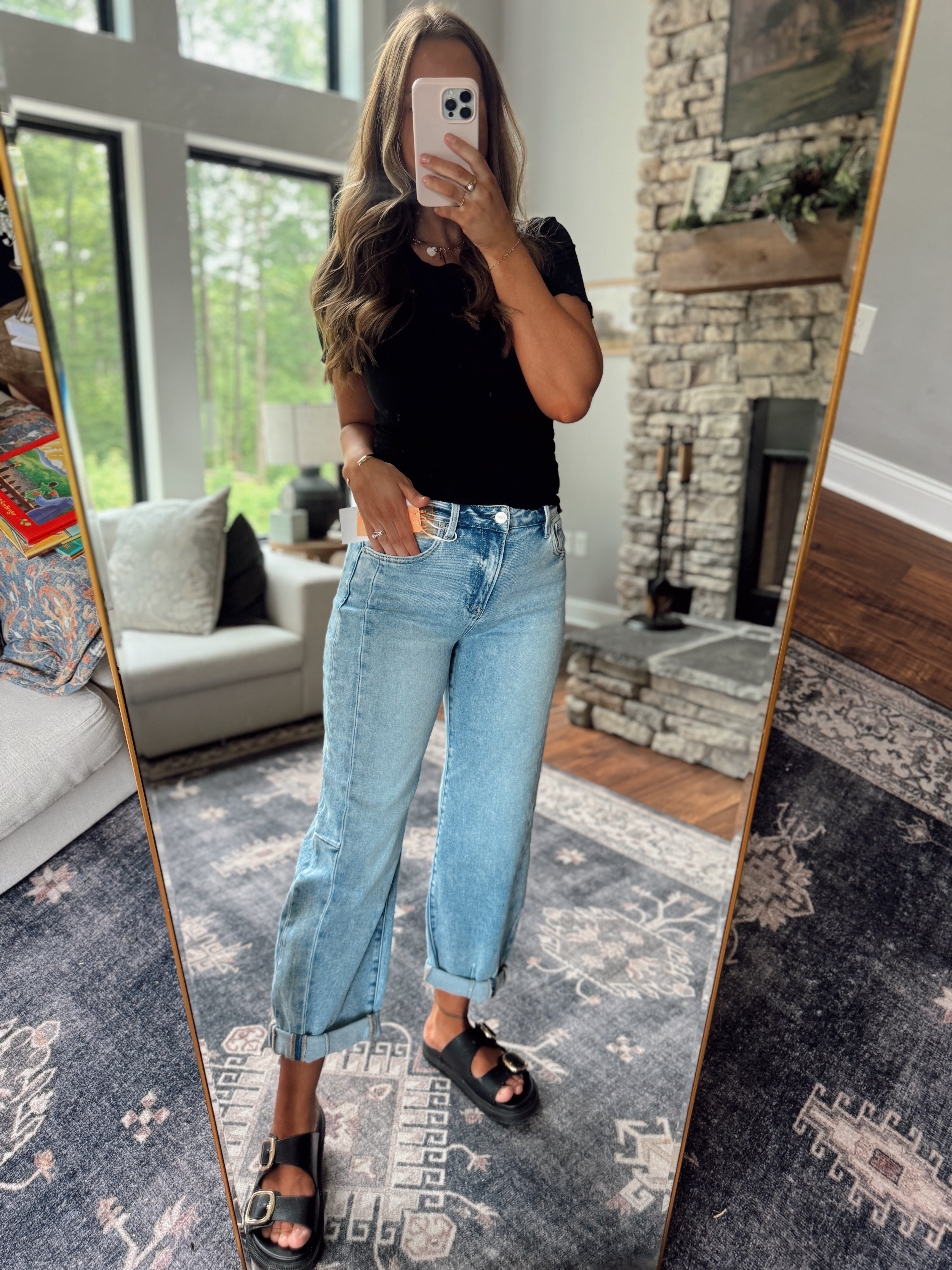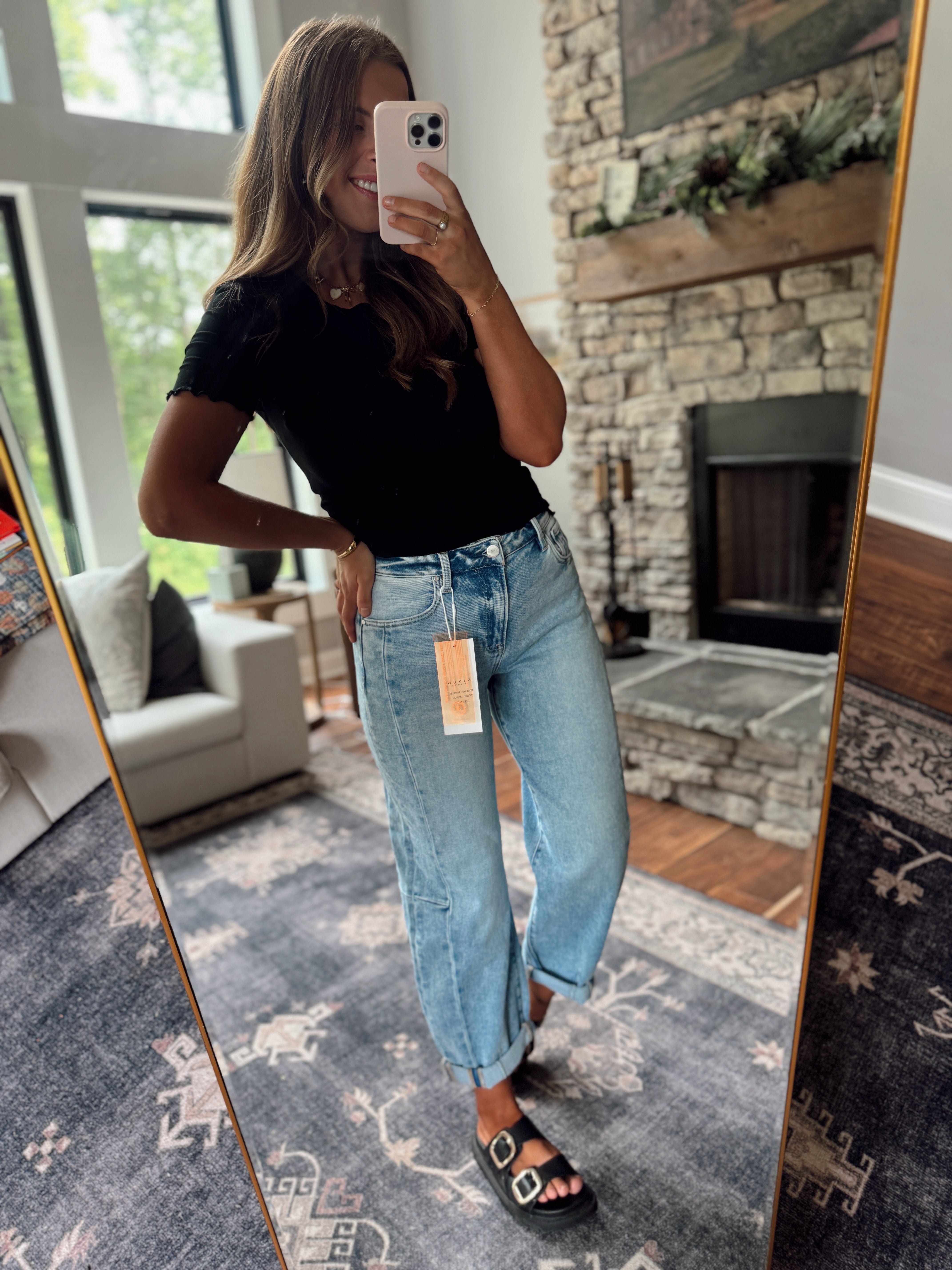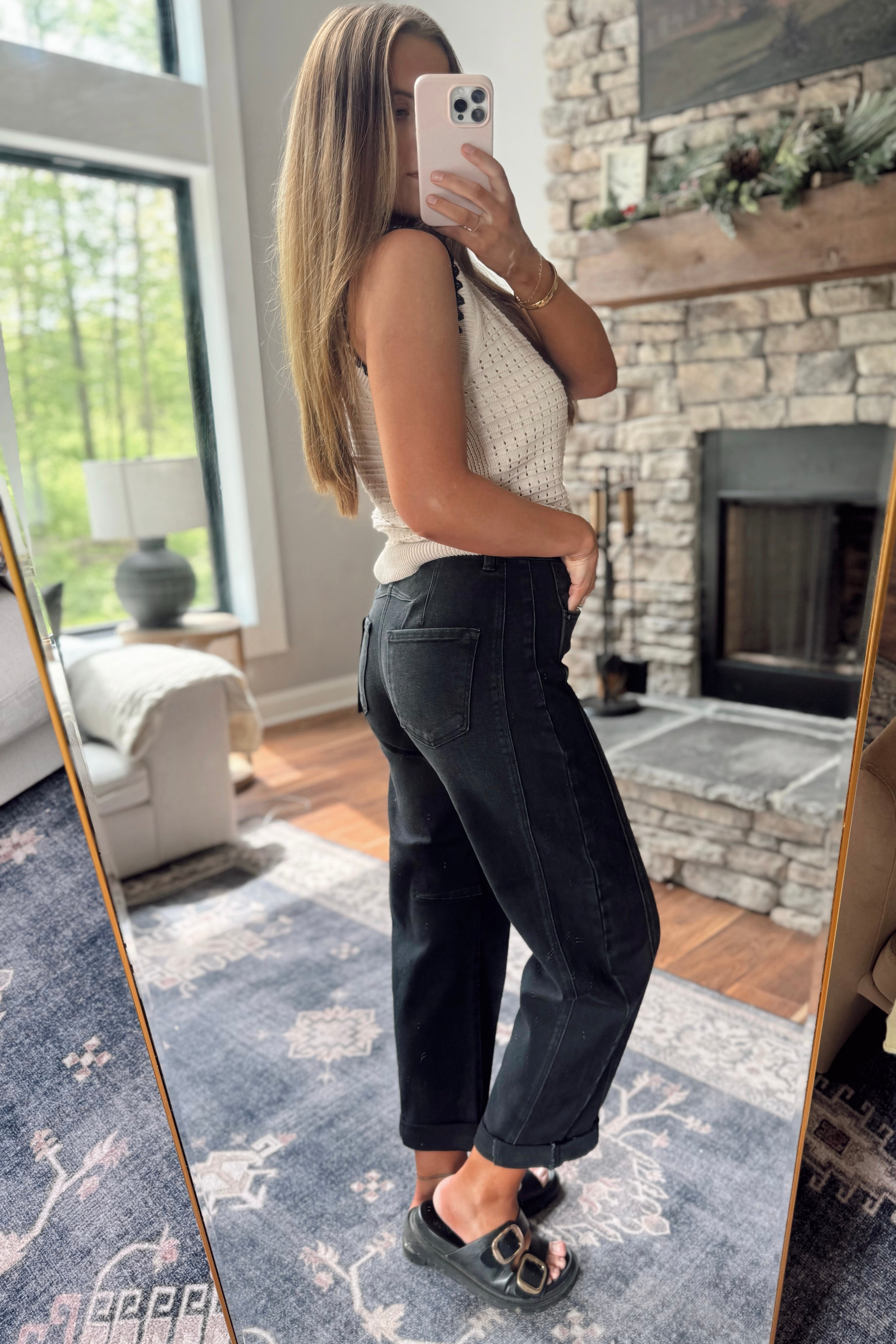 Risen Black HR Boyfriend Barrel Cuffed Jeans
