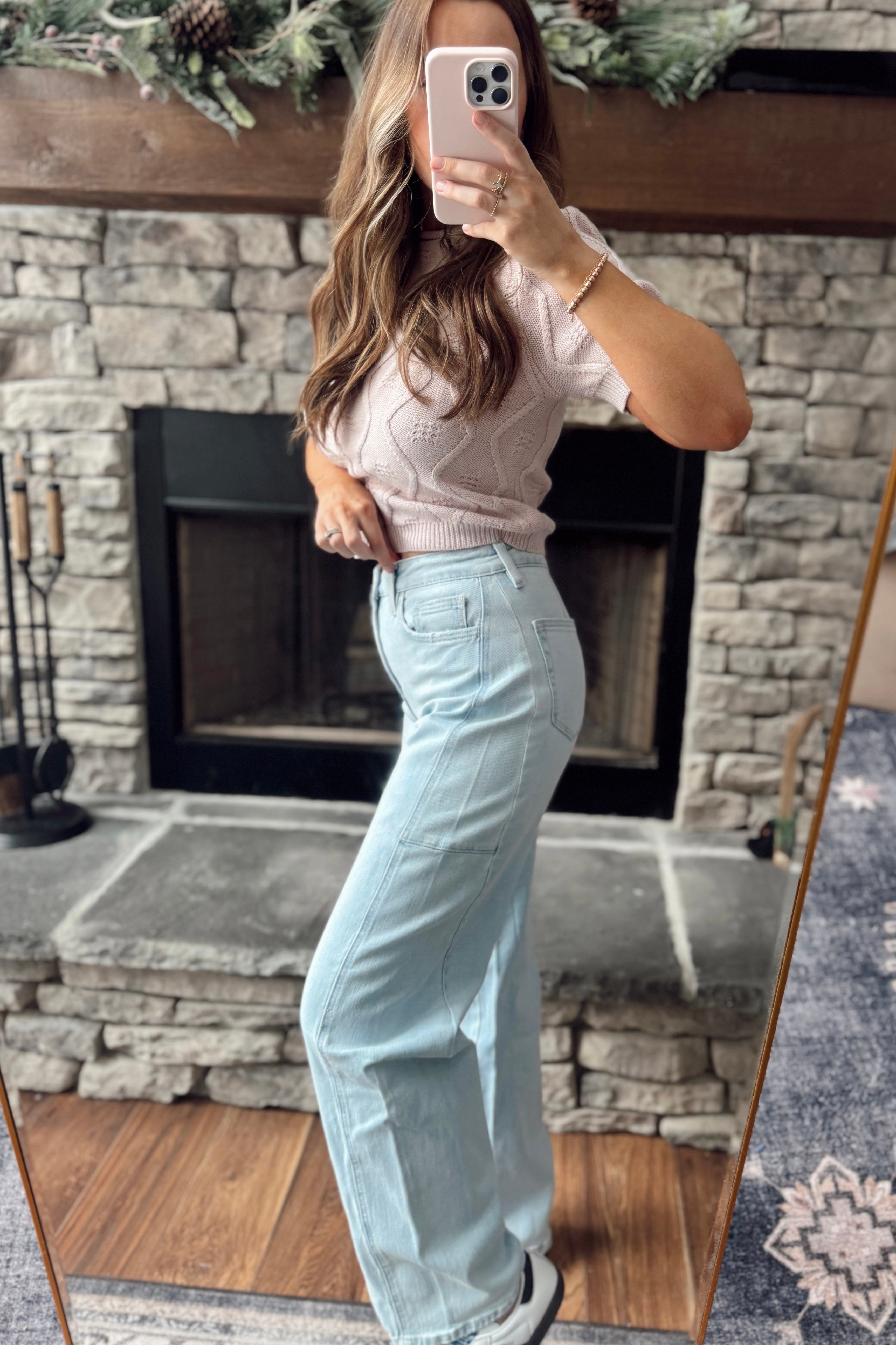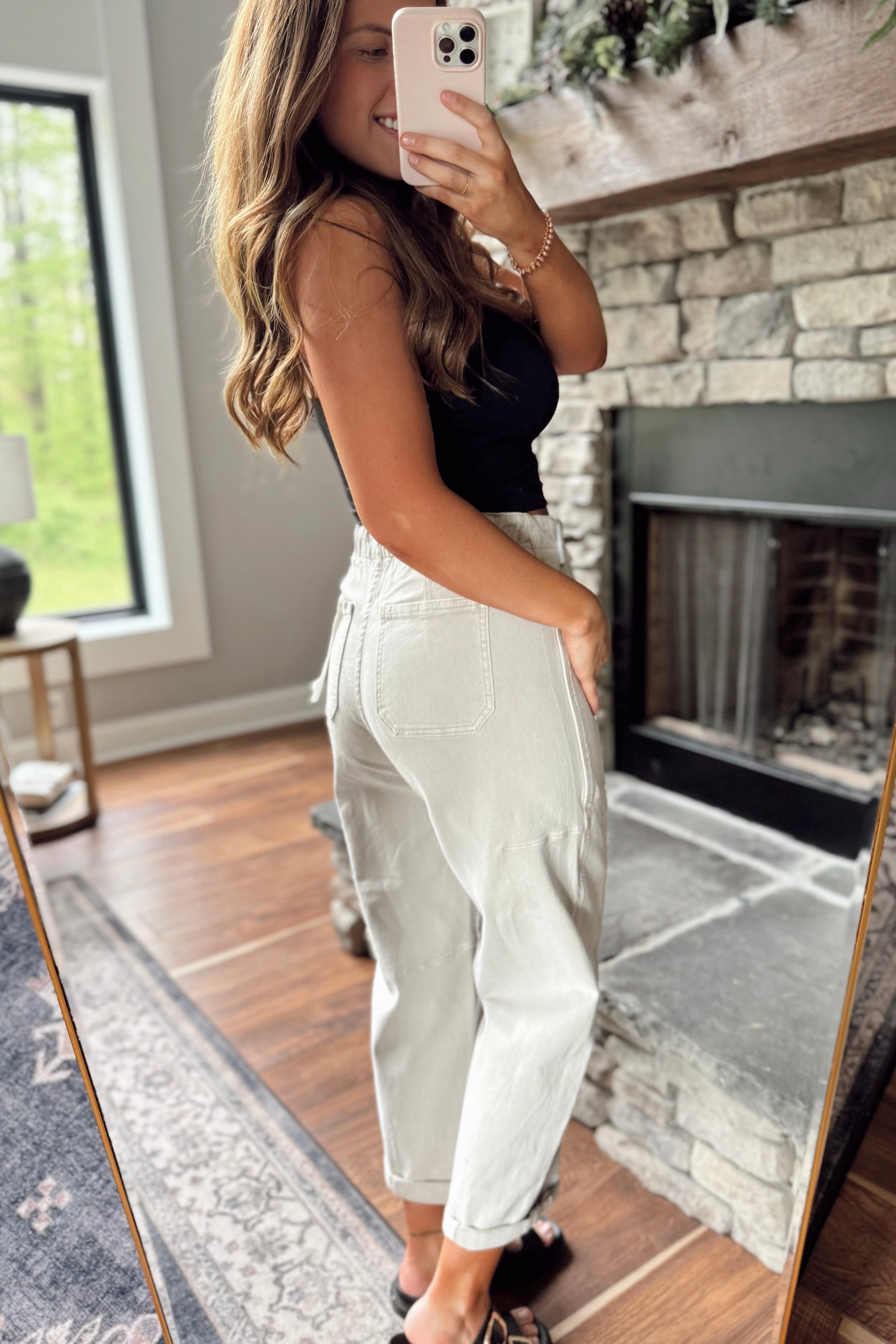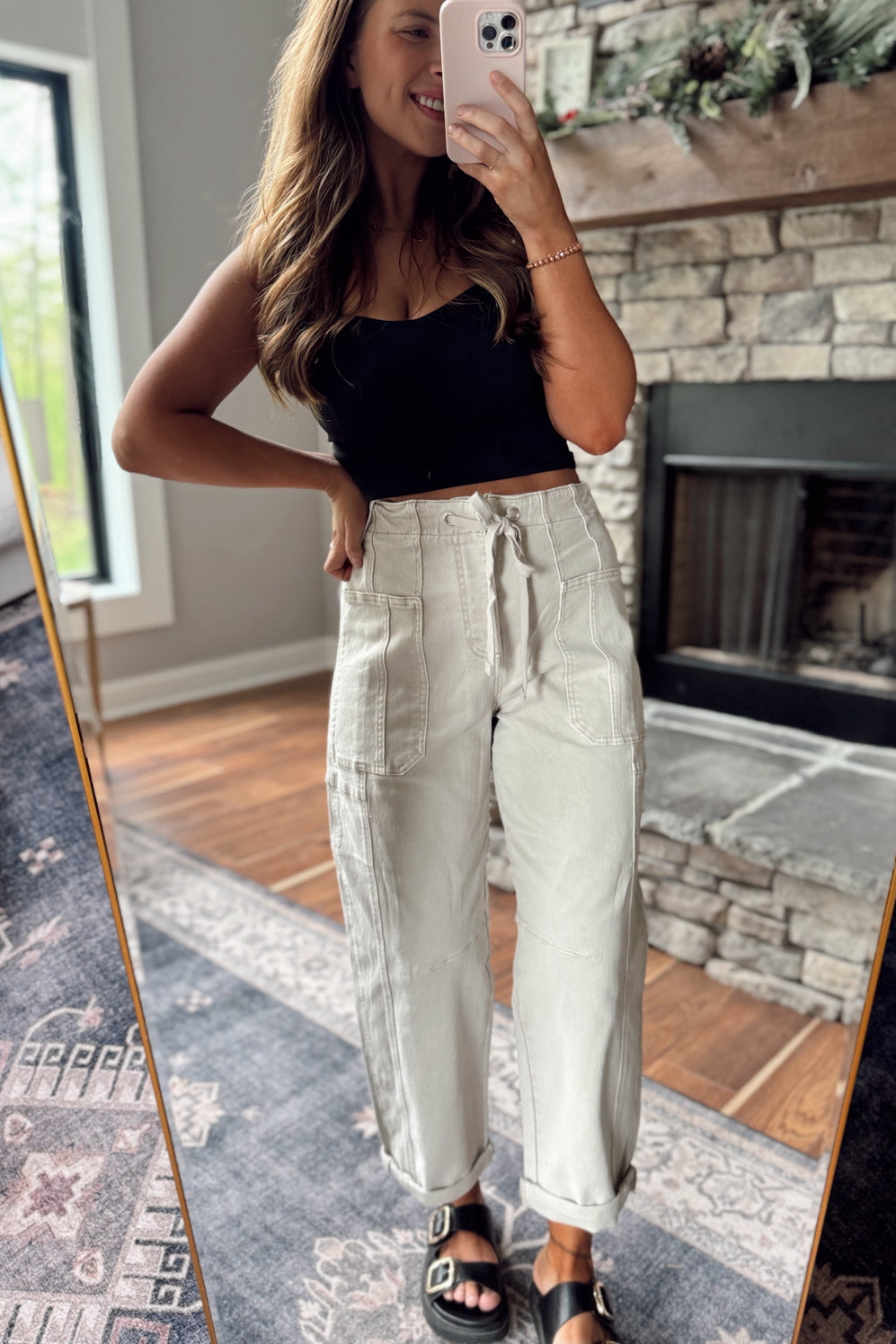 Risen Almond HR Crop Wide Barrel Cargo Pocket Pants