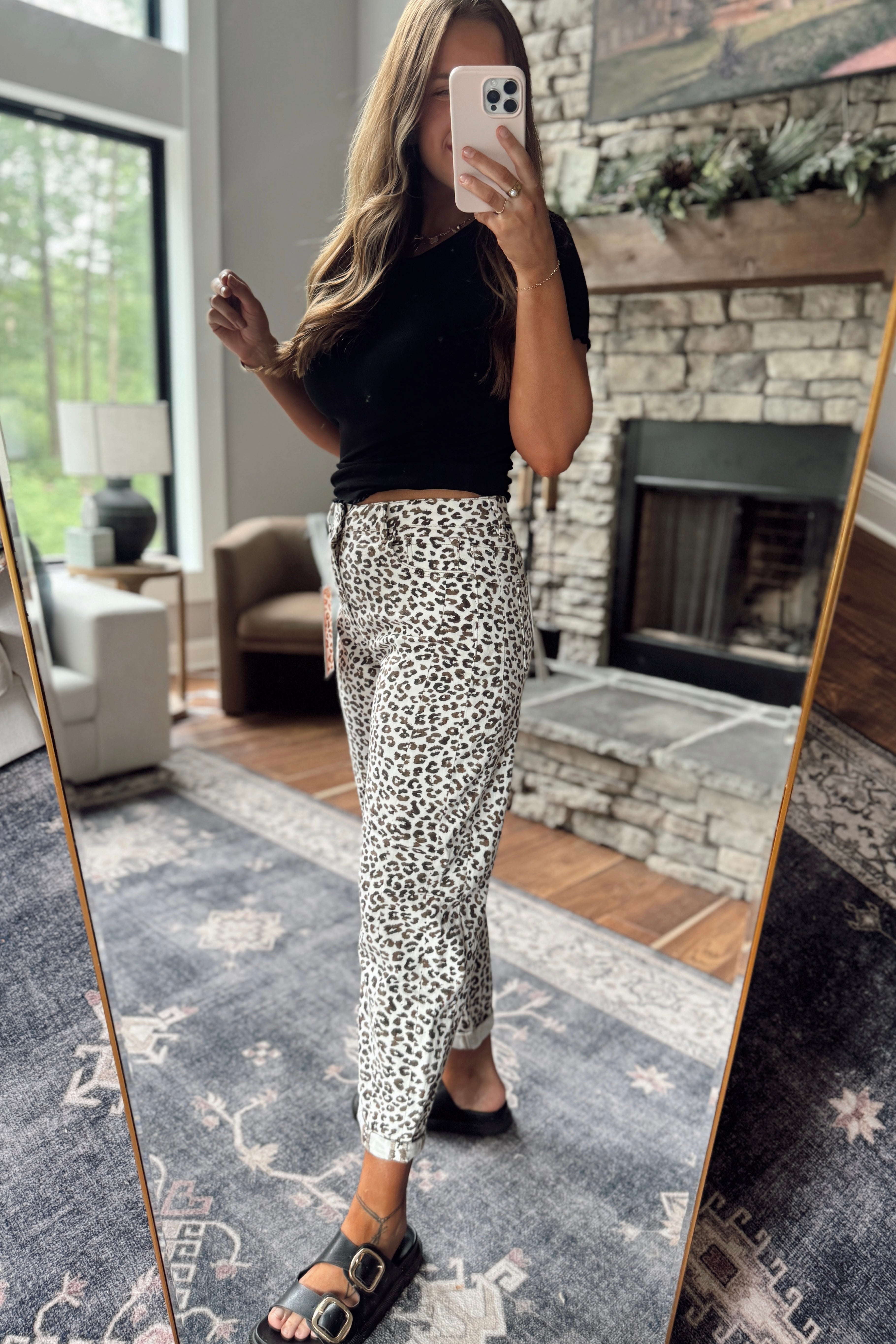 Risen HR Cream Leopard Barrel Crop Cuffed Jeans