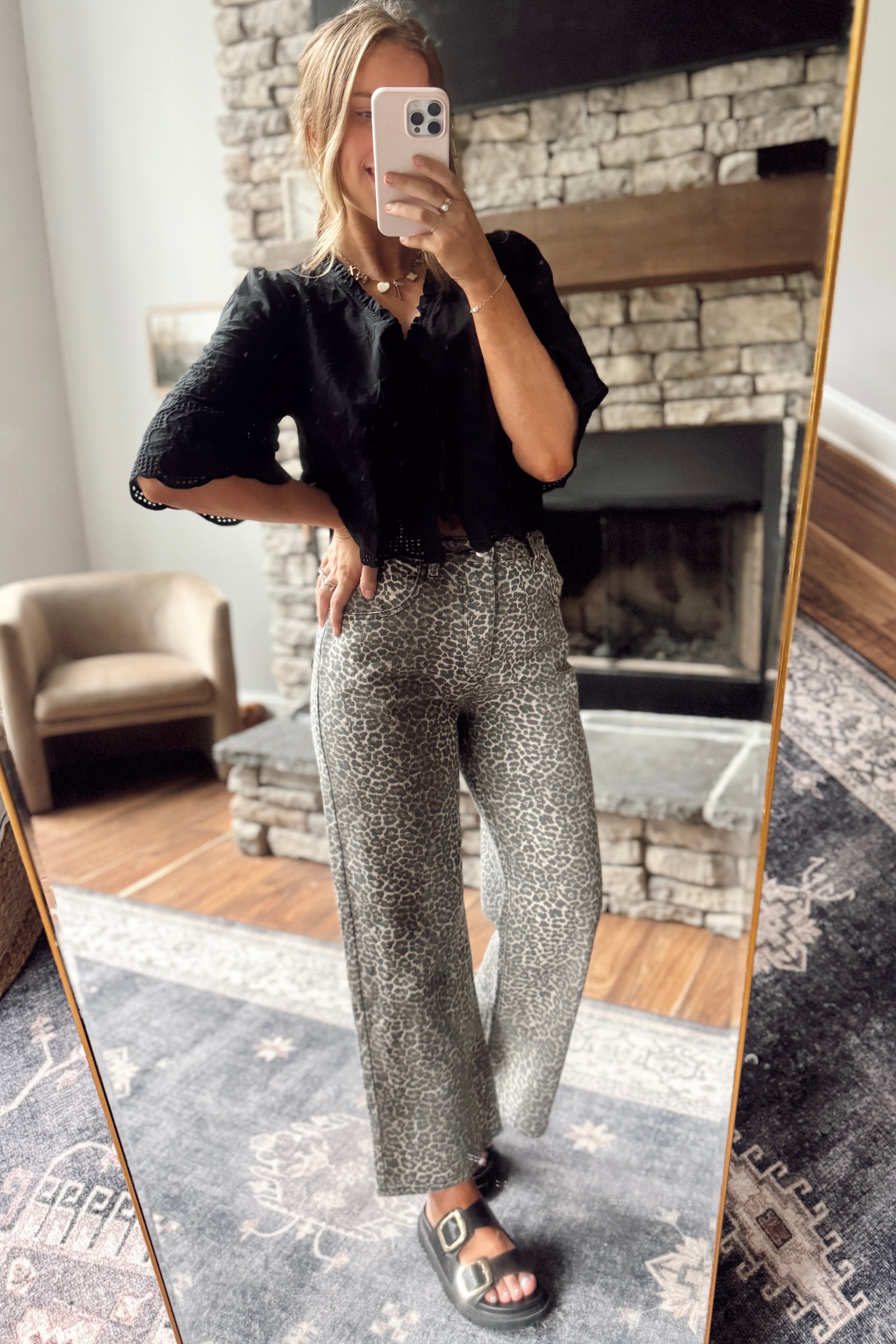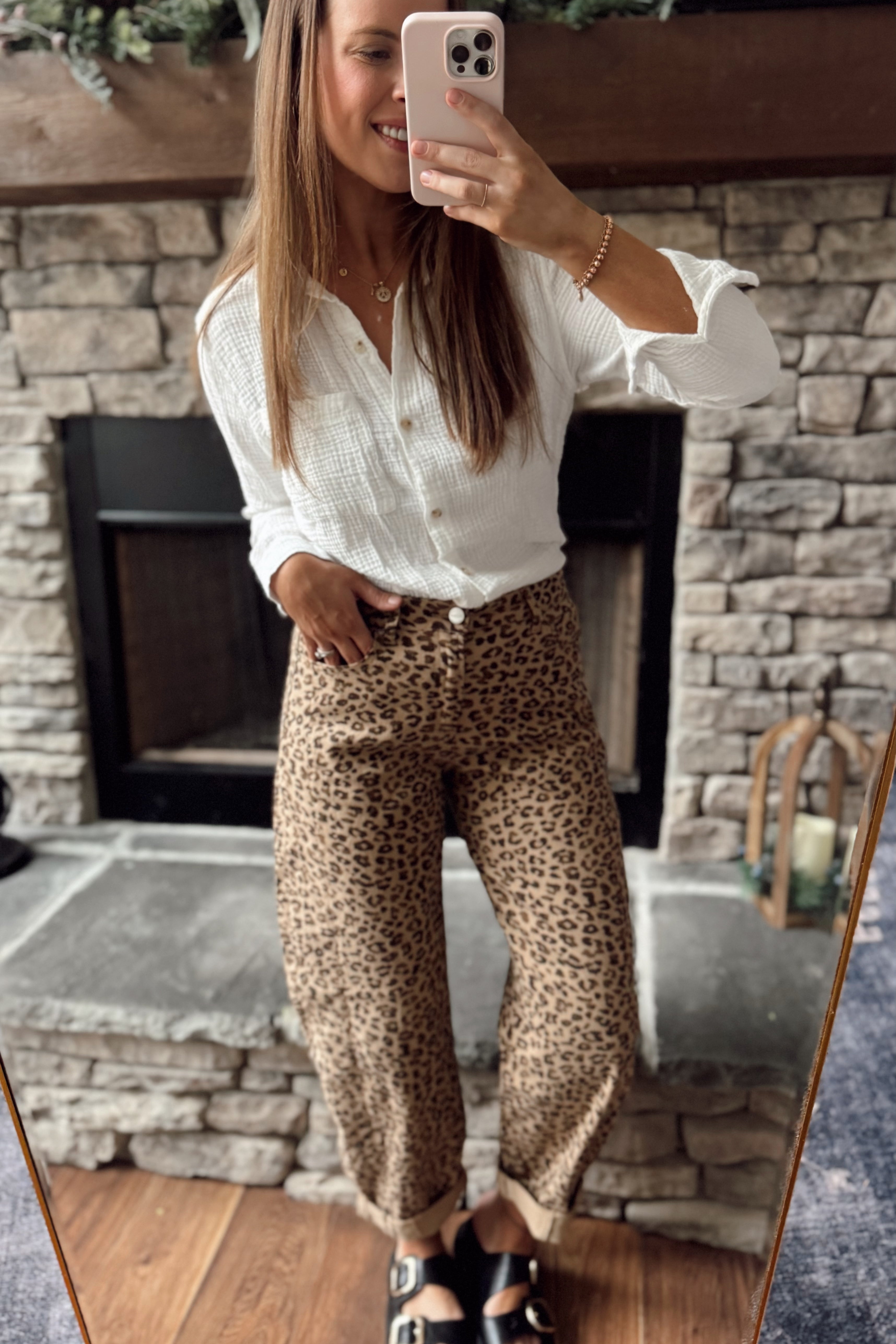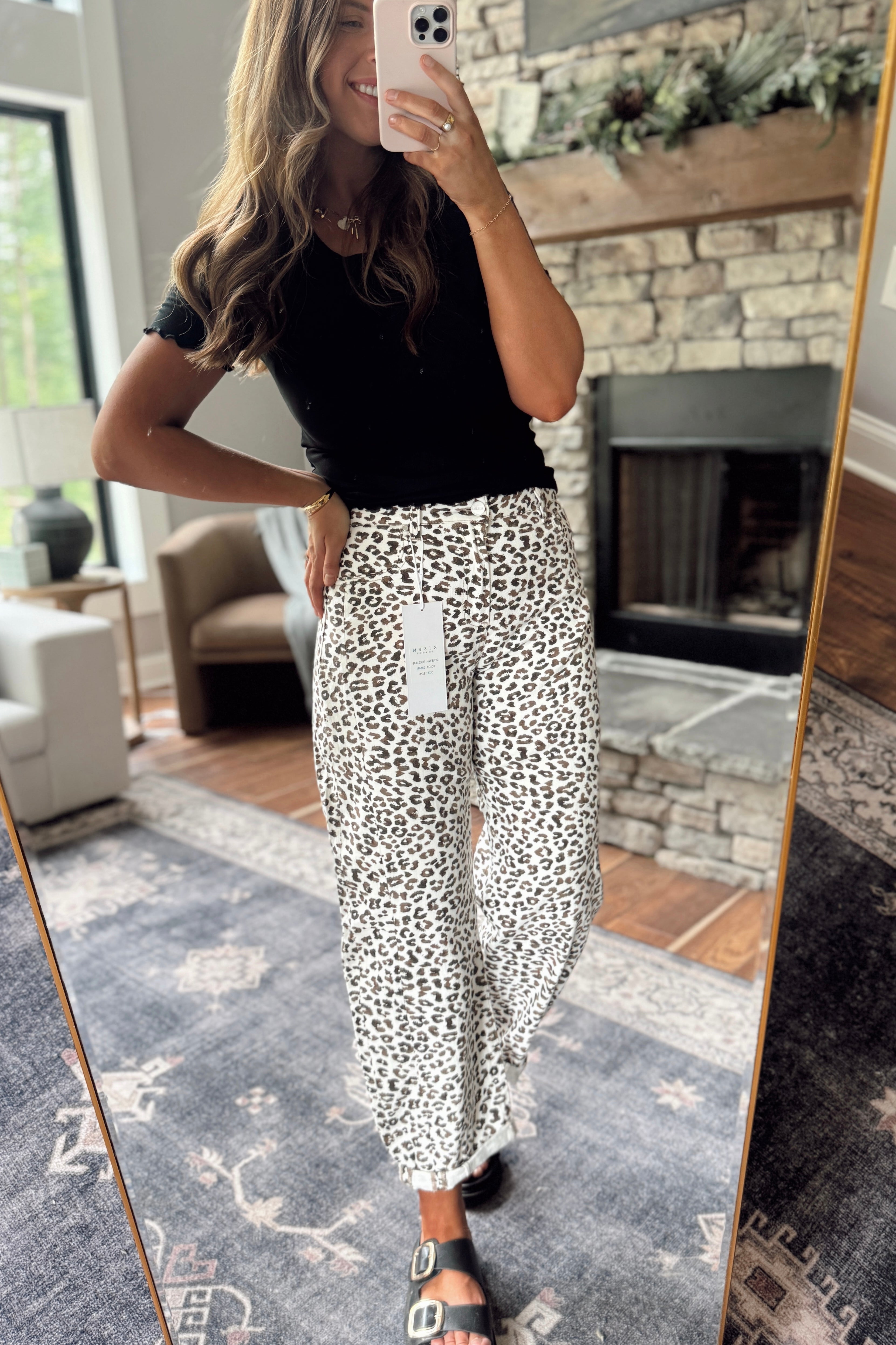 Risen HR Leopard Barrel Crop Cuffed Jeans