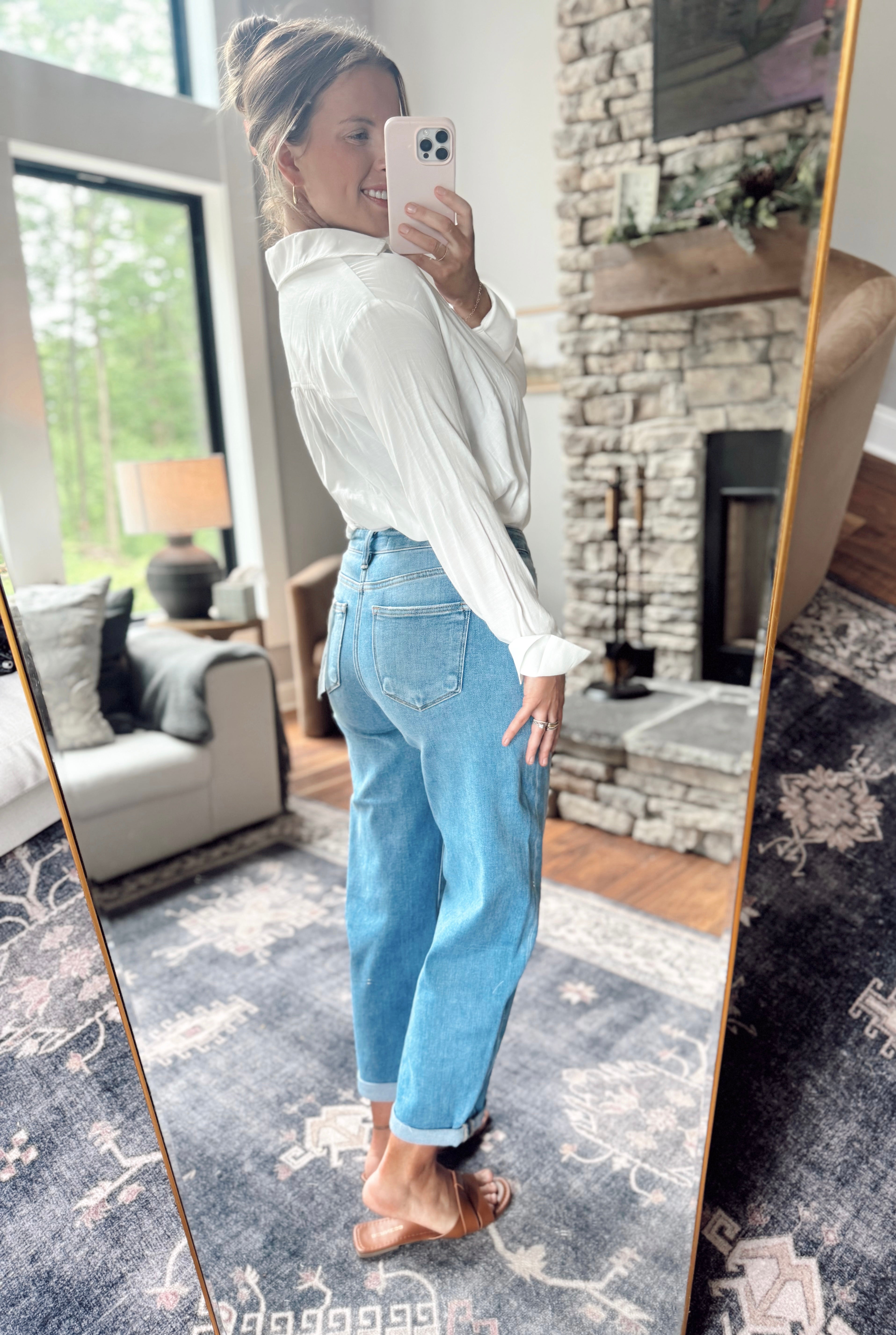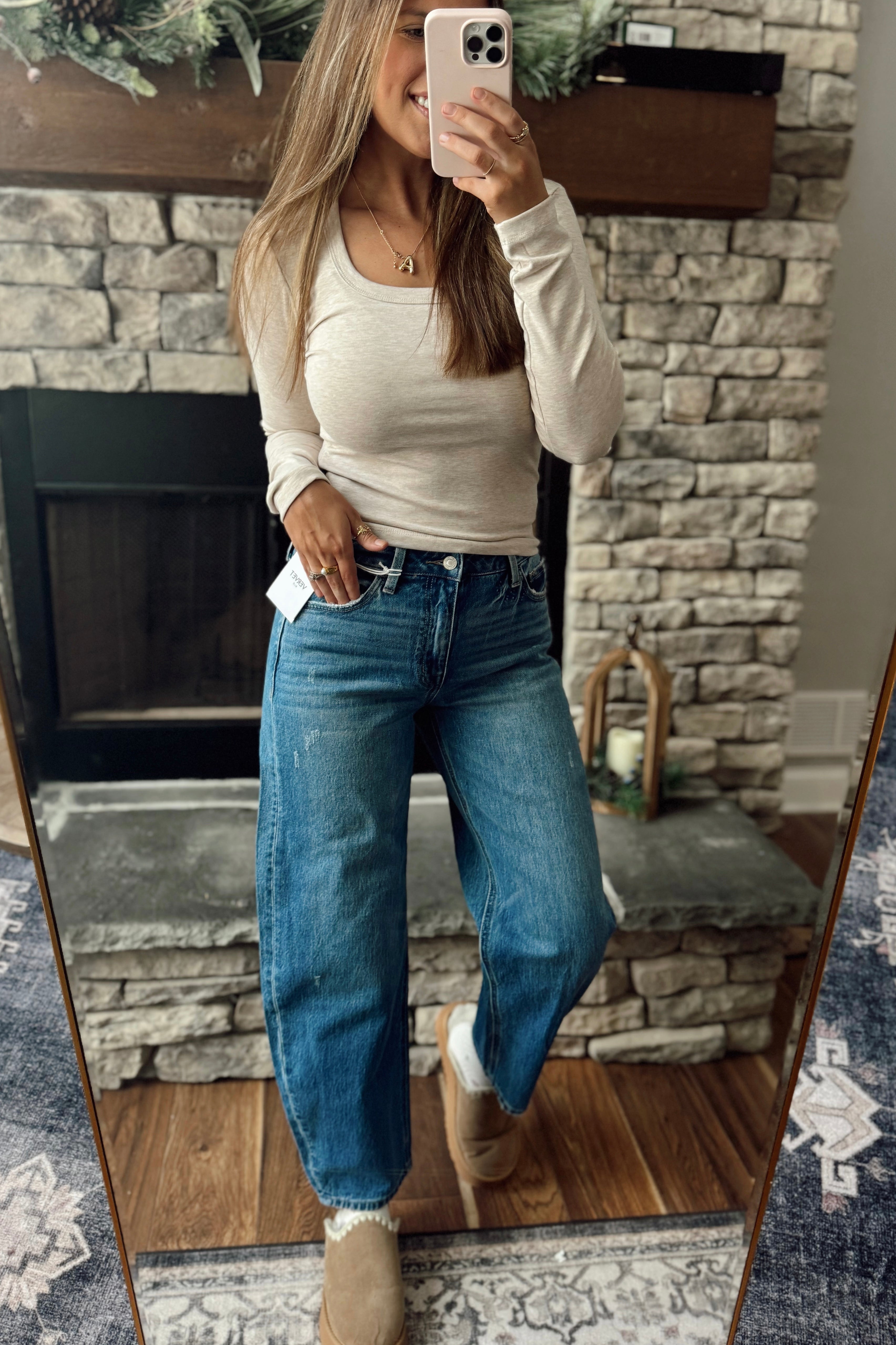 Risen Medium HR Barrel Crop Cuffed Jeans