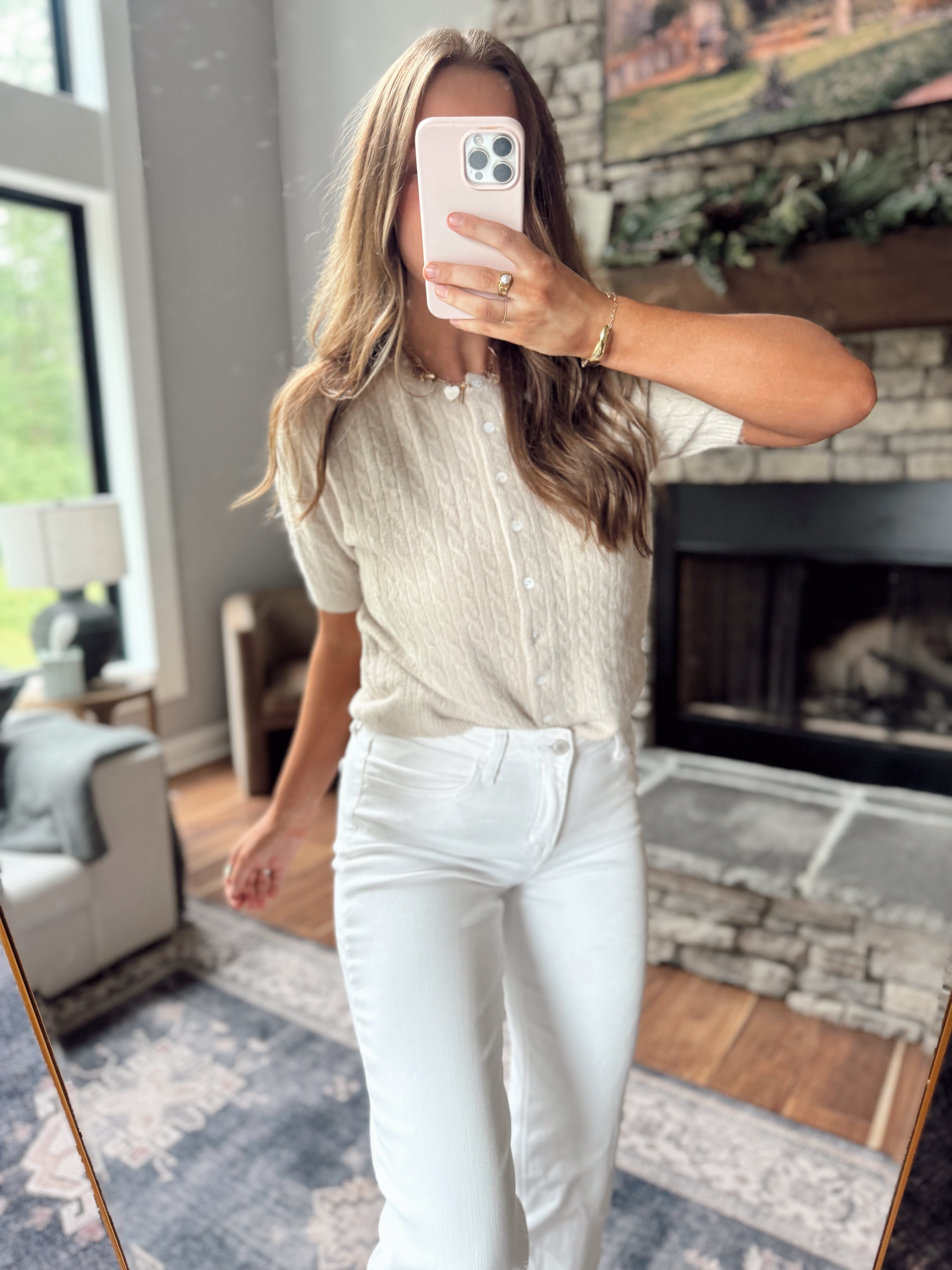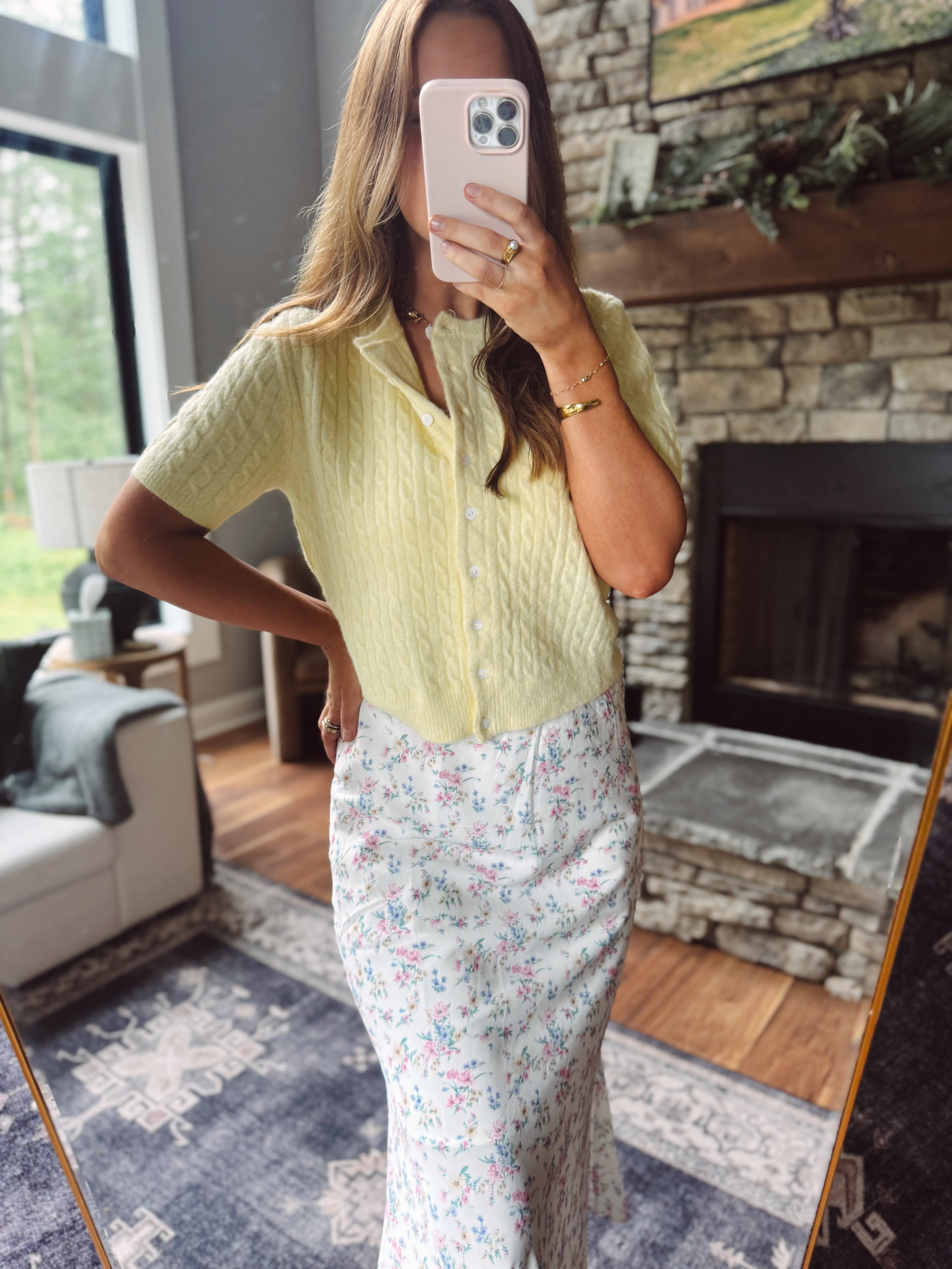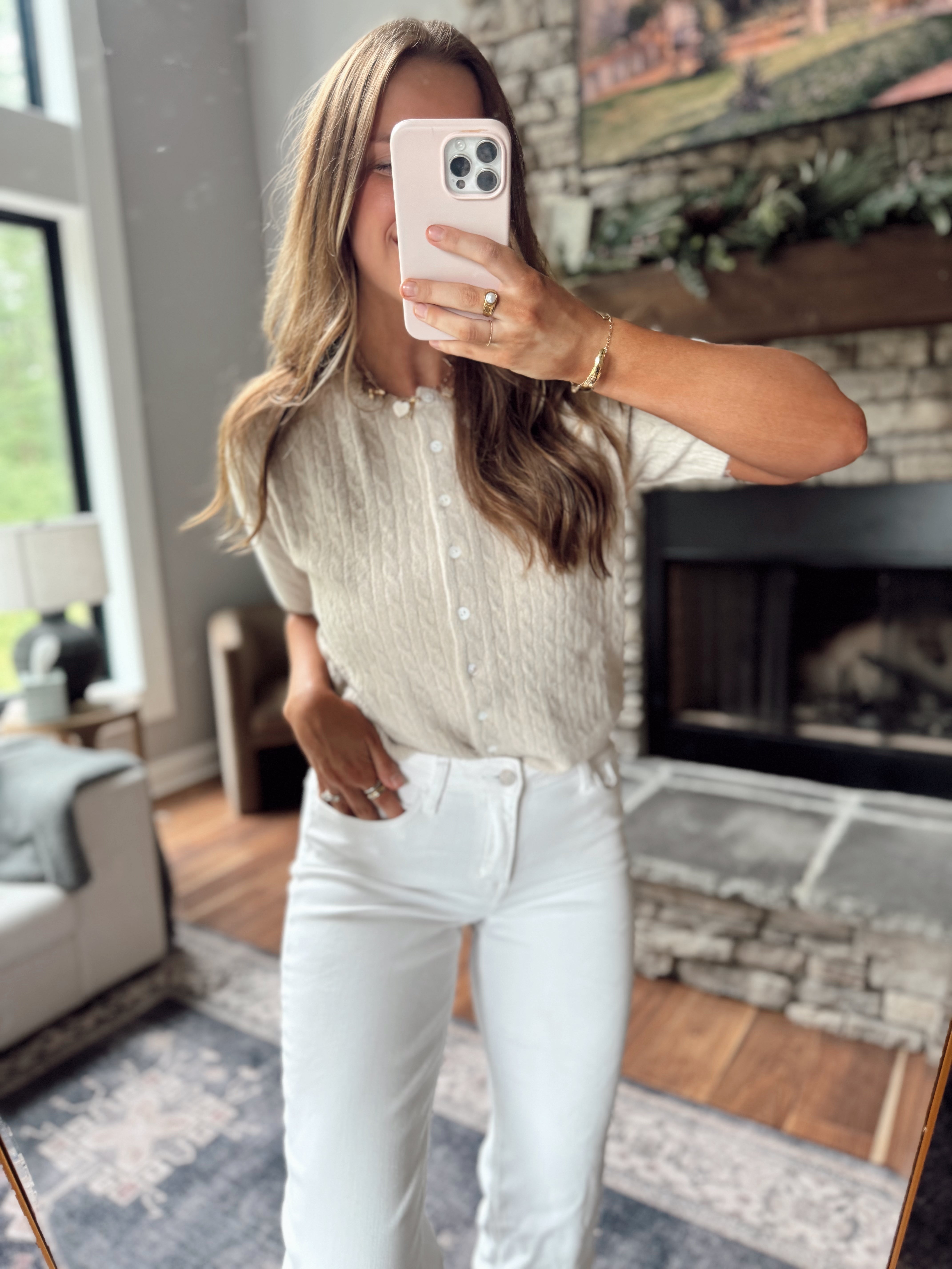 Butter Maple Cable Knit Short Sleeve Cardi