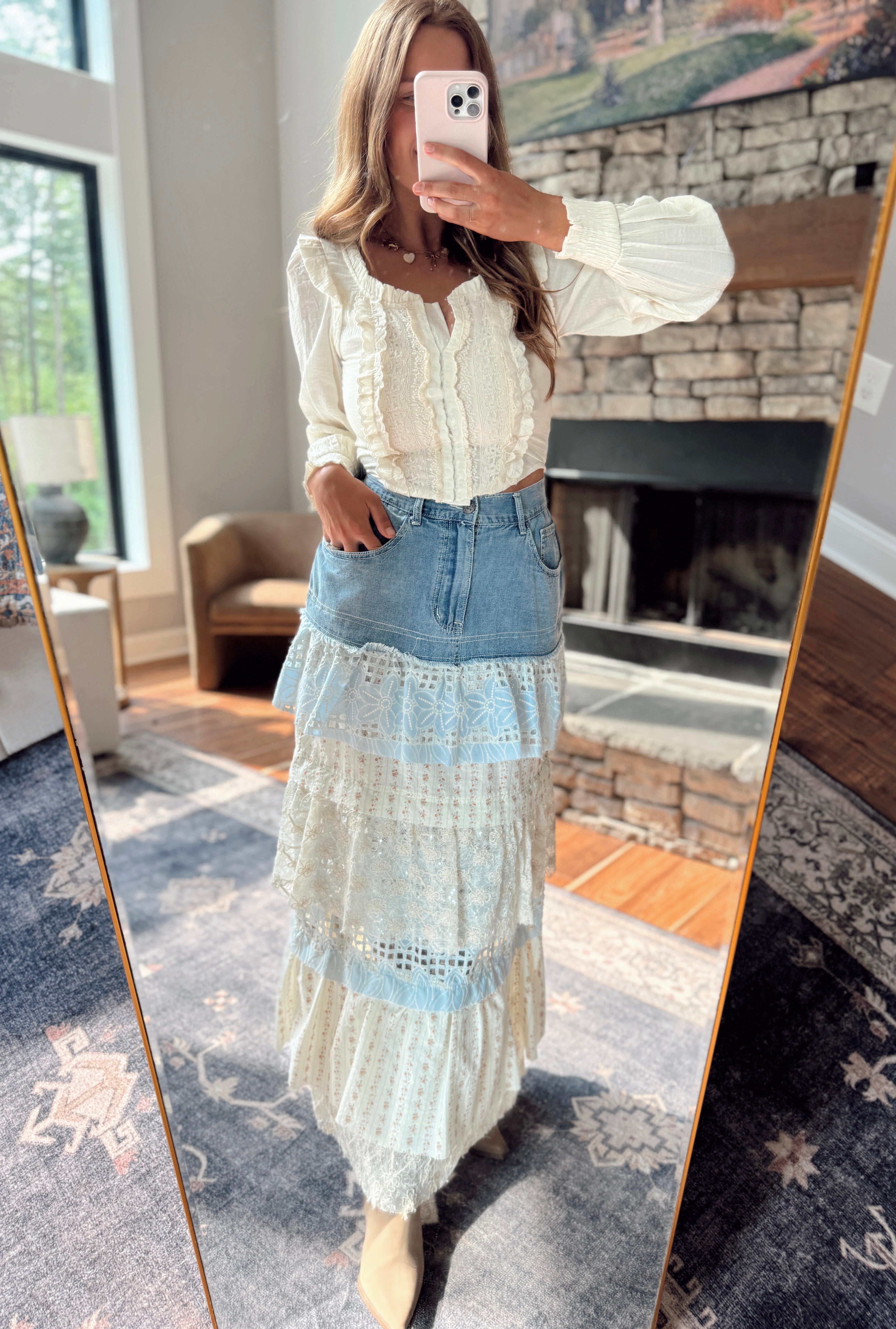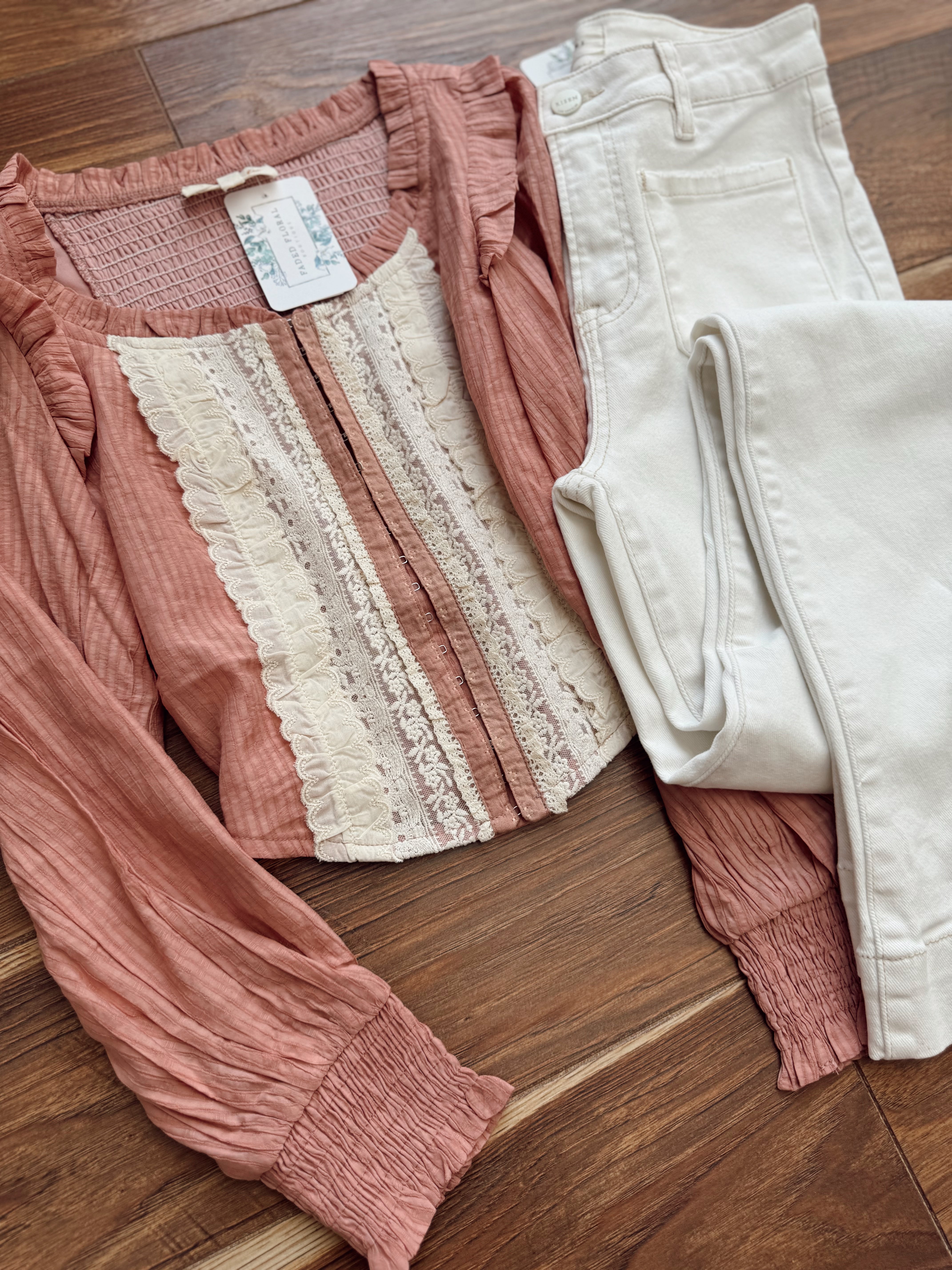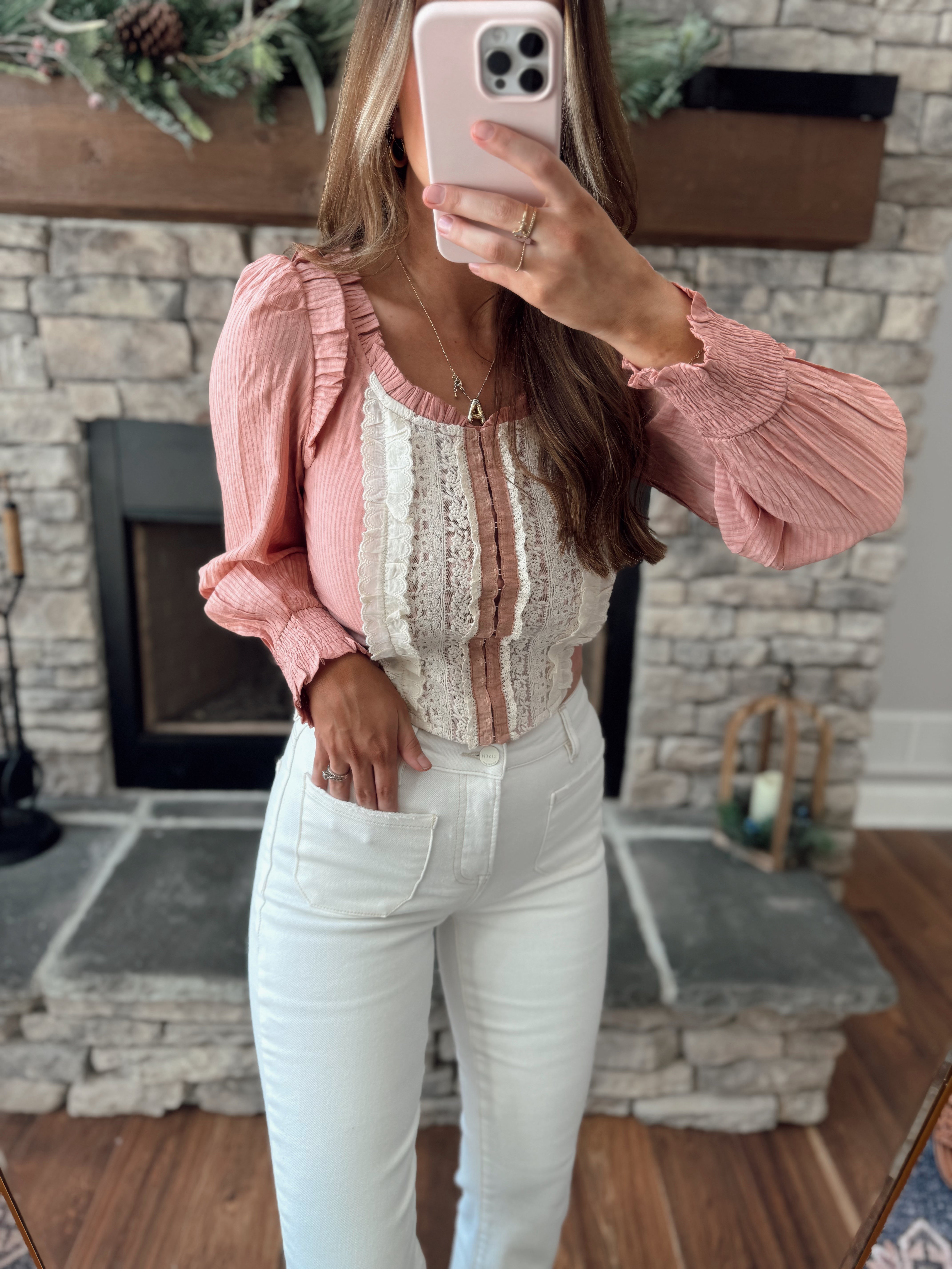 Angelica Blush Ruffled Corset Contrast Blouse