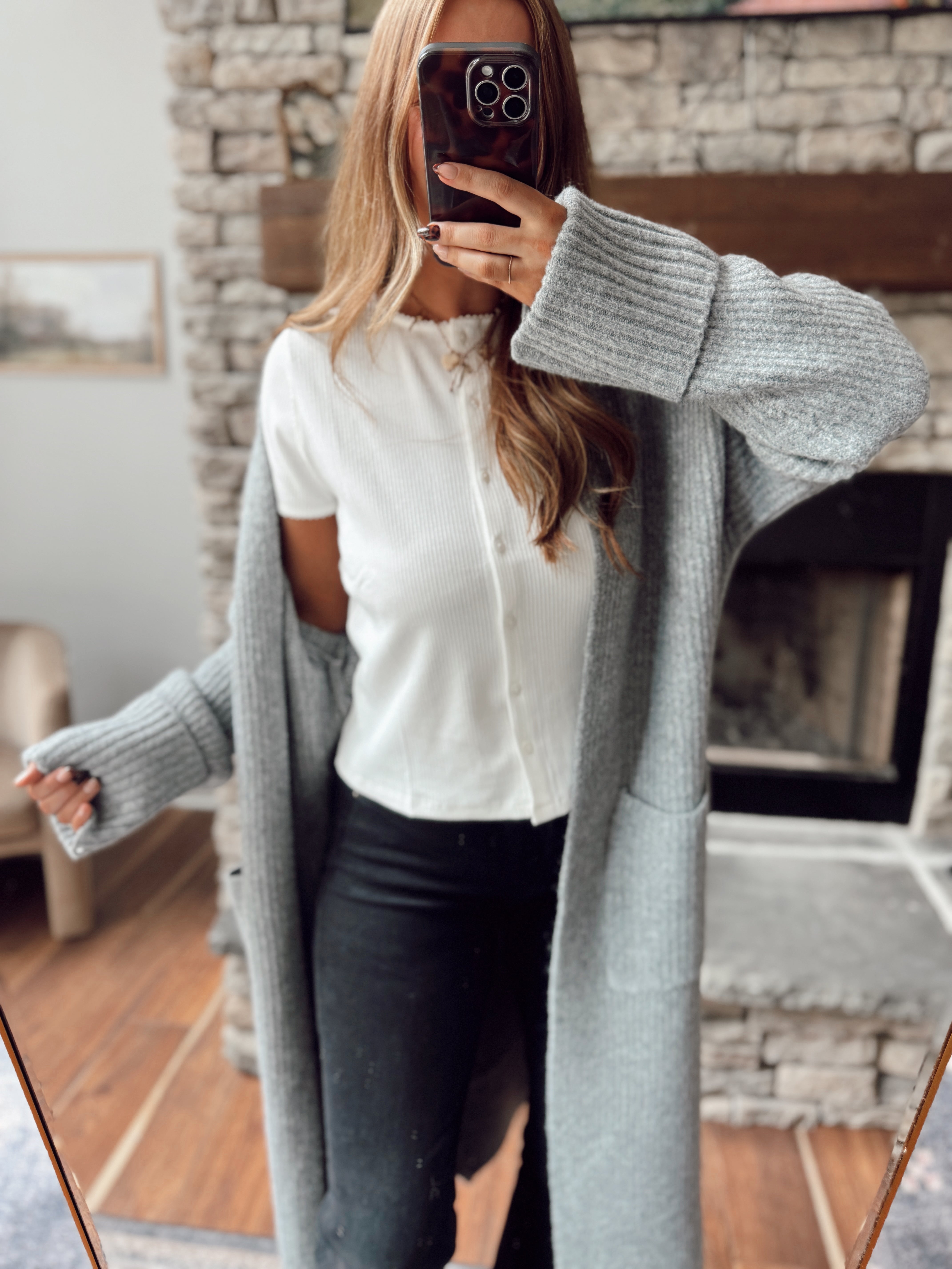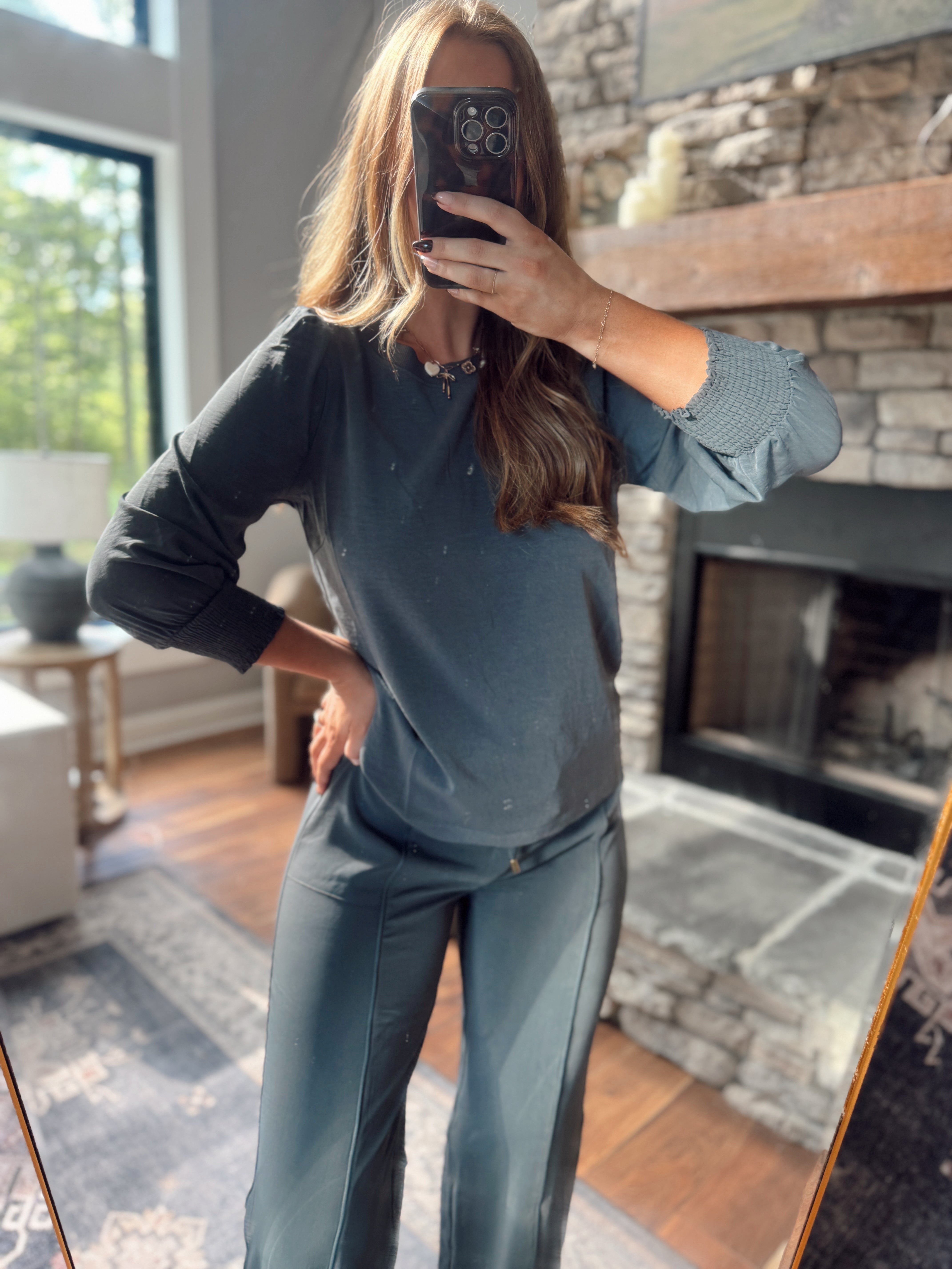 Slate Green Darling Tie Knit Long Sleeve